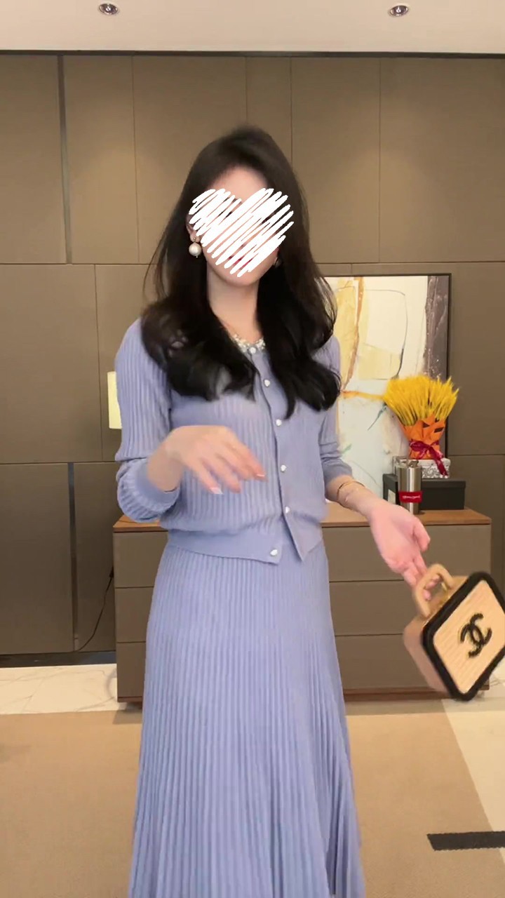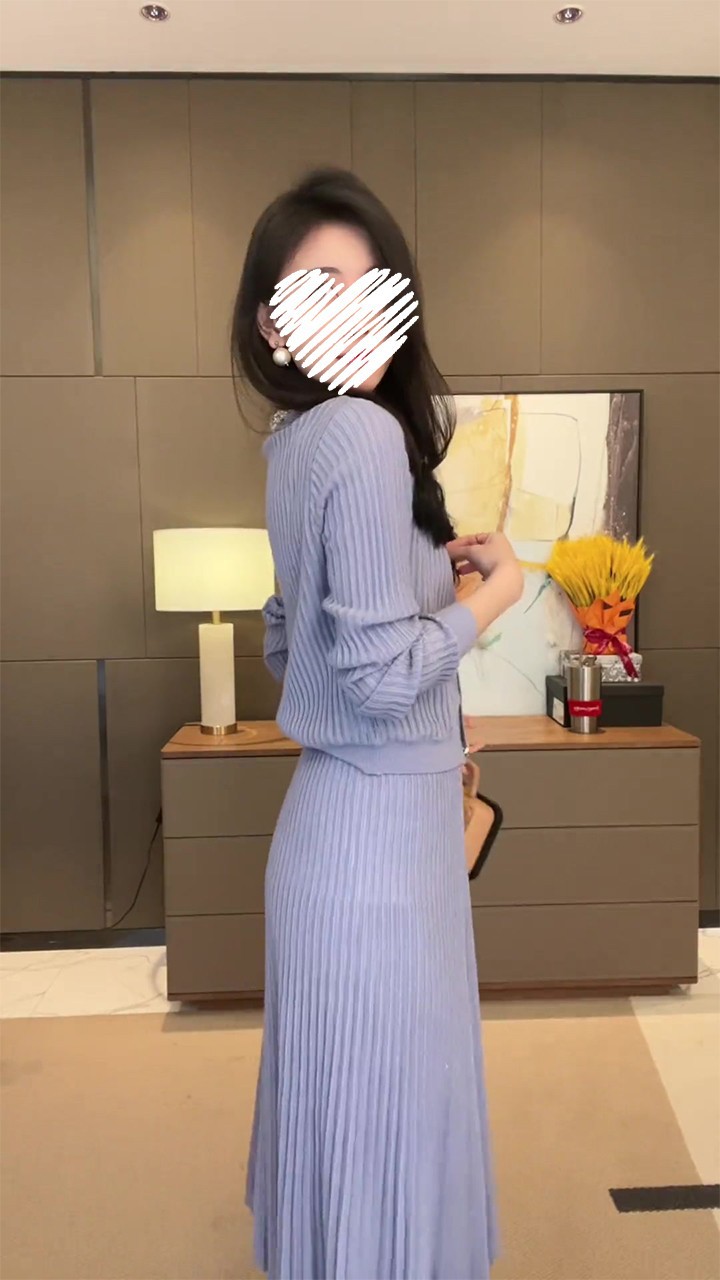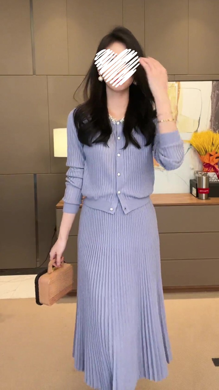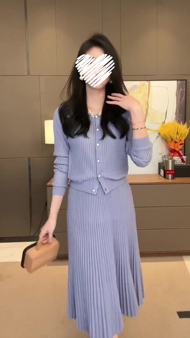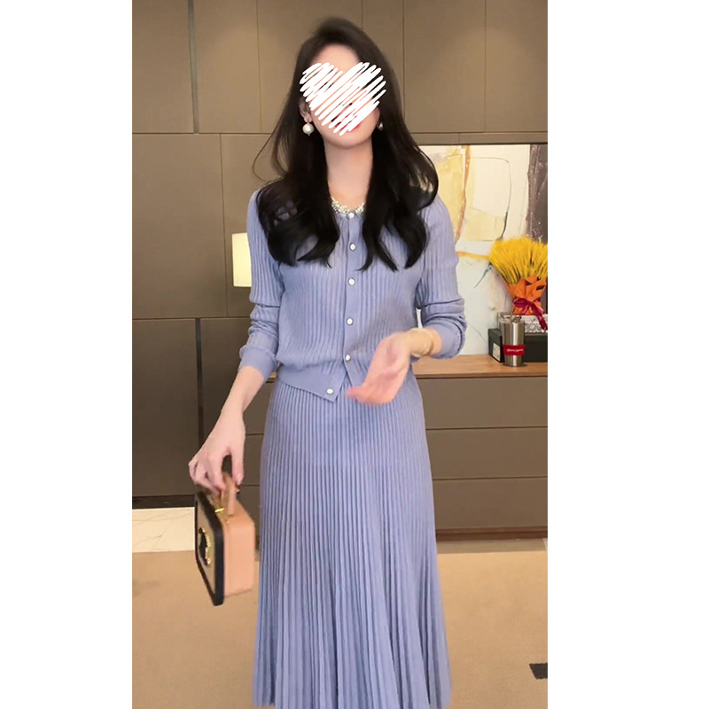 13813 초가을 패션 기질 사교계 샤오시앙 바람 중공업 네일 구슬 퍼플 니트 투피스 세트 스커트 여성 슬림 핏스토어 가기