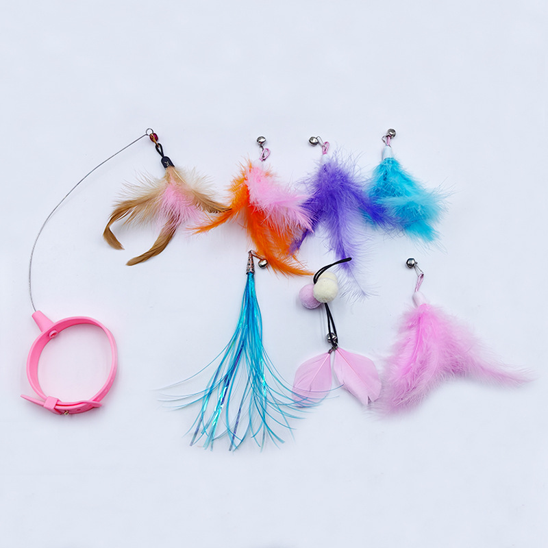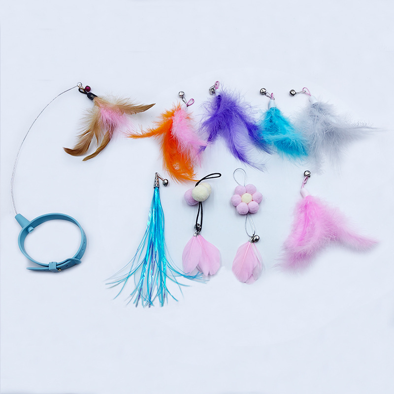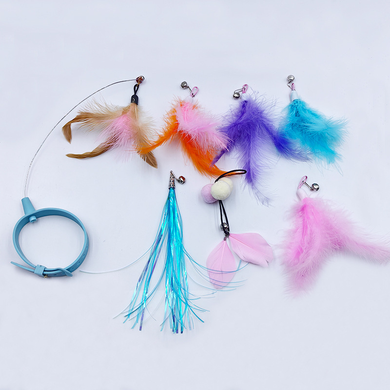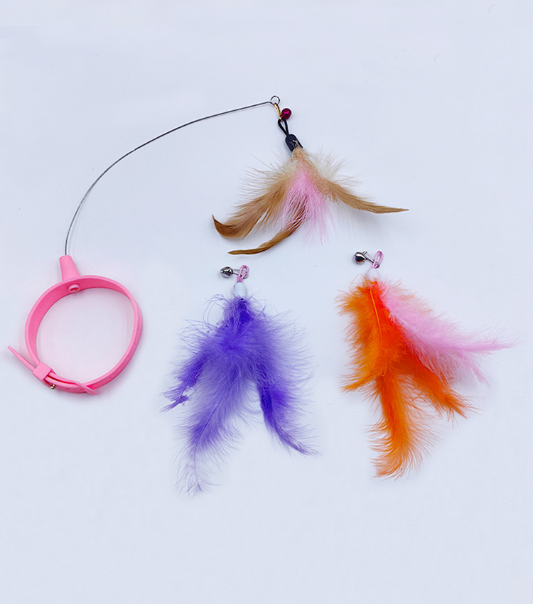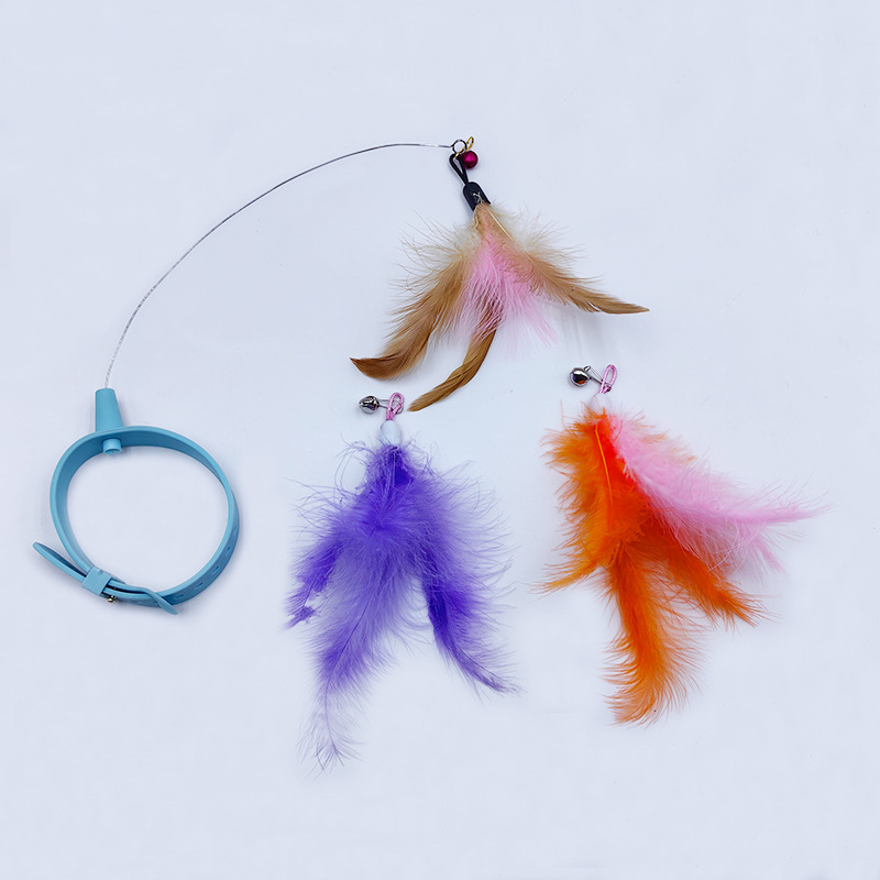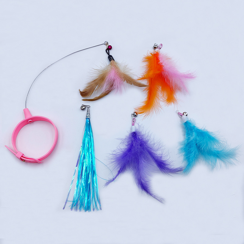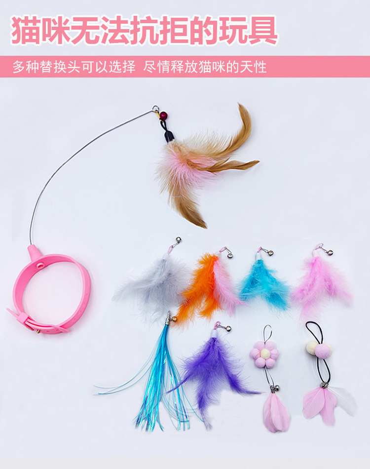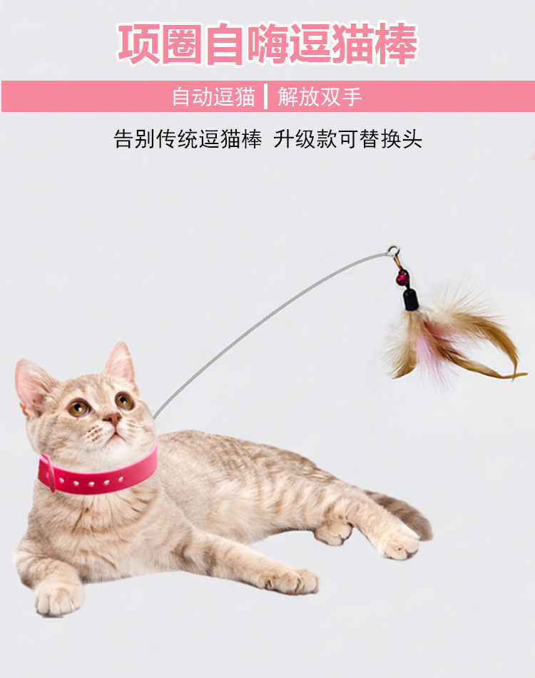 고양이 목걸이 고양이 놀리는 스틱 교체 가능한 머리 자기 치유 가제트 깃털 실리콘 칼라 자동 고양이 놀리는 장난감스토어 가기