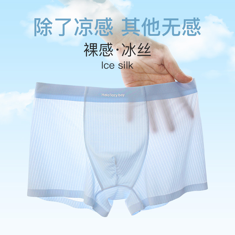 사계절 얼음 실크 줄무늬 사각형 쿨링 어린이 및 청소년 고탄성 소년 원활한 속옷 항균 얇은 복서 팬티스토어 가기