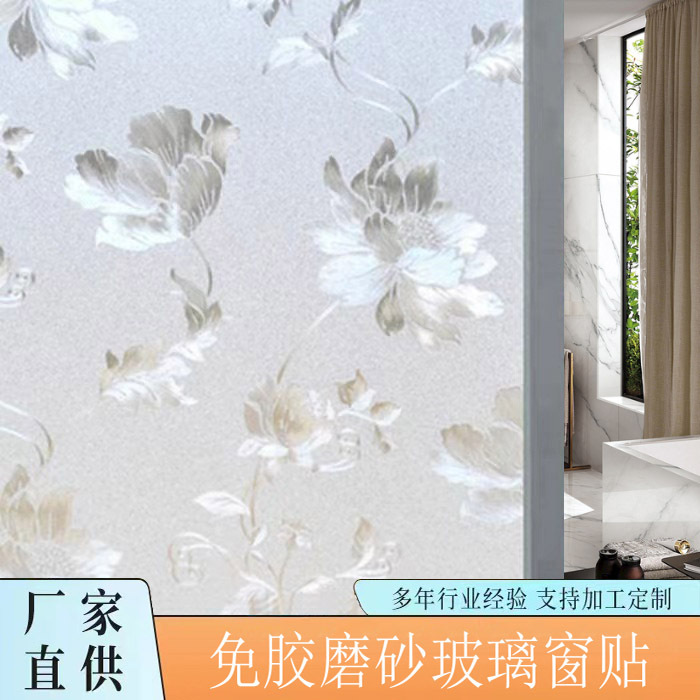 정전기 방지 접착제 프리 젖빛 유리 필름 욕실 핫세일 히비스커스 꽃 엿보기 방지 필름 투명 불투명 유리 스티커