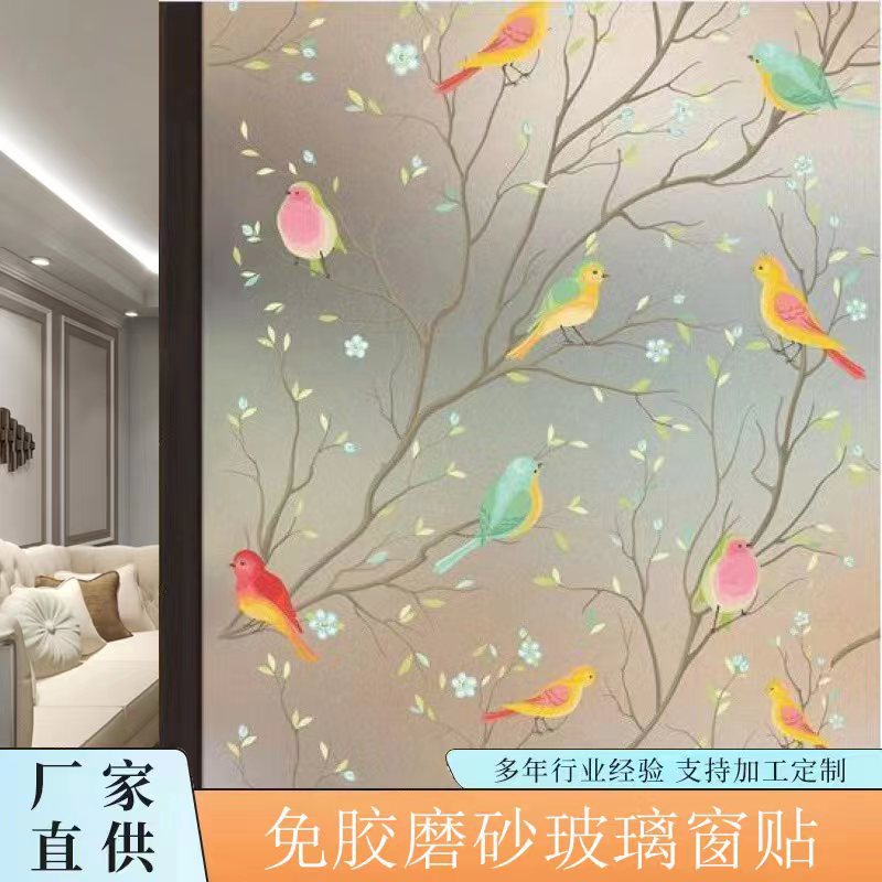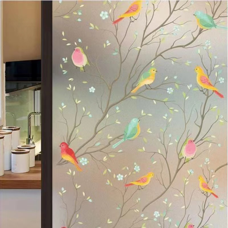 프라이버시를 보호하는 정전기 접착제가없는 유리 필름 컬러 조류 엿보기 방지 투명 불투명 선택 유리 스티커스토어 가기