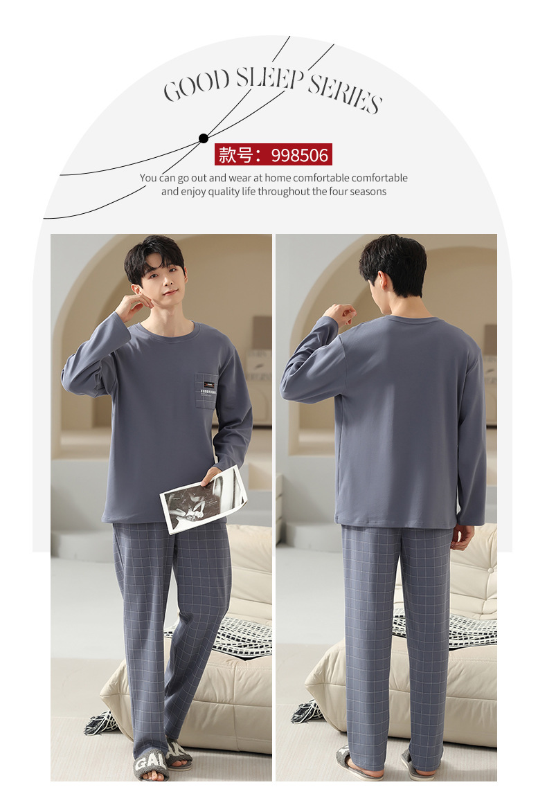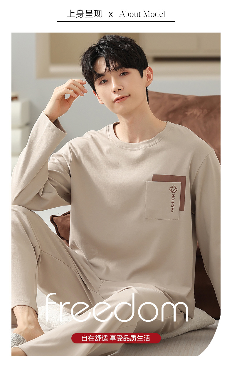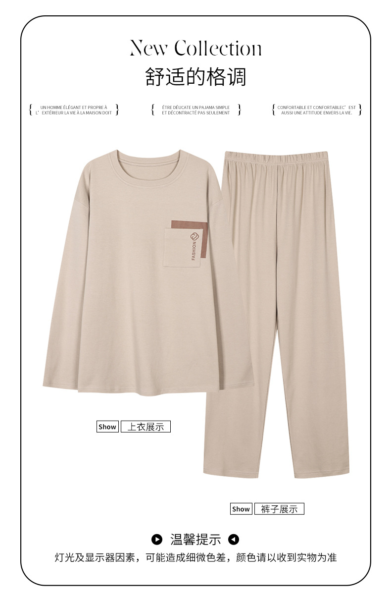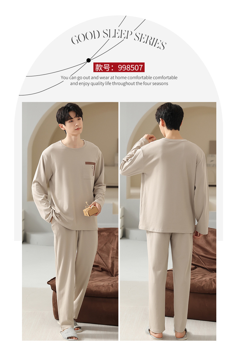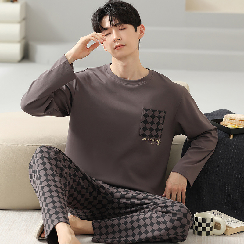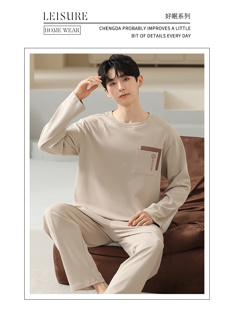봄 코튼 남성 잠옷 가을, 겨울 새로운 대형 라운드 넥 긴팔 바지 겉옷 순수 코튼 홈웨어 세트스토어 가기