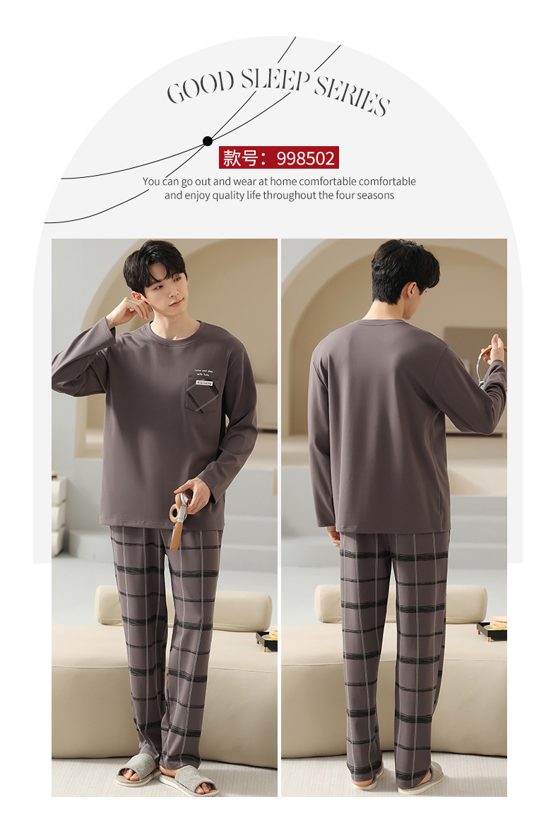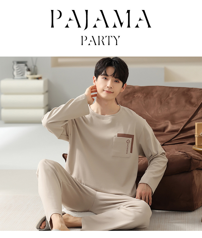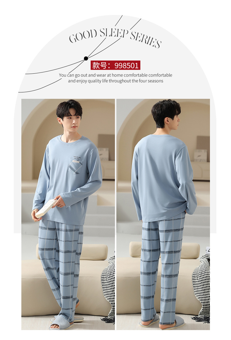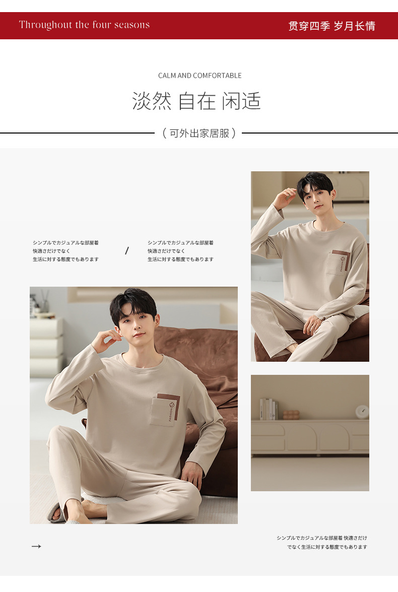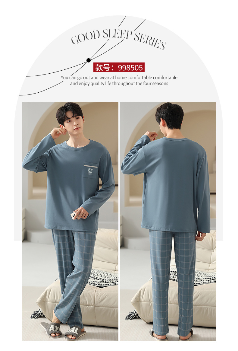 봄 코튼 남성 잠옷 가을, 겨울 새로운 대형 라운드 넥 긴팔 바지 겉옷 순수 코튼 홈웨어 세트스토어 가기
