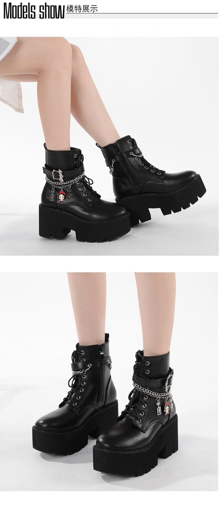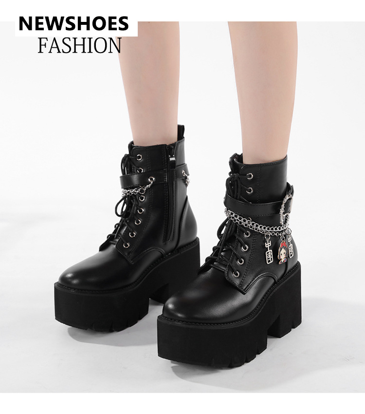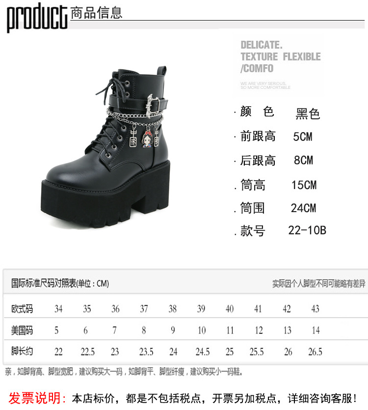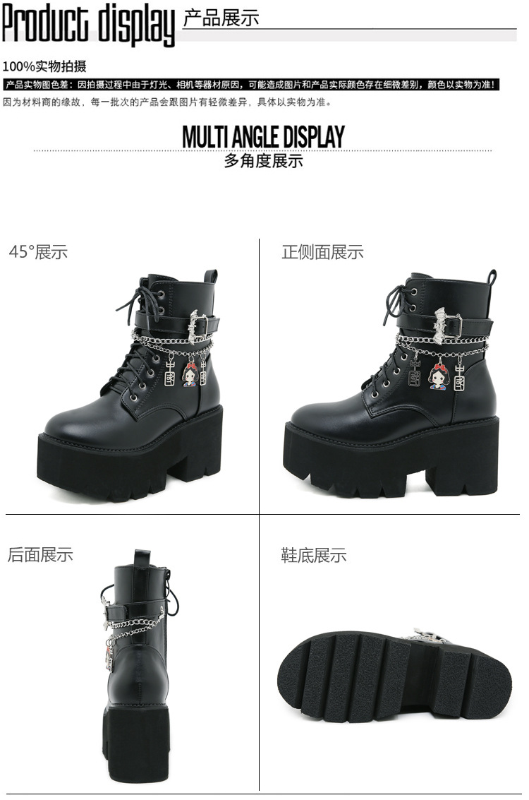 2024 탈부착 가능한 체인 여성화 소녀용 중국 펜던트 대형 여성 부츠 두꺼운 굽 두꺼운 밑창 숏부츠 여성 마틴 부츠스토어 가기