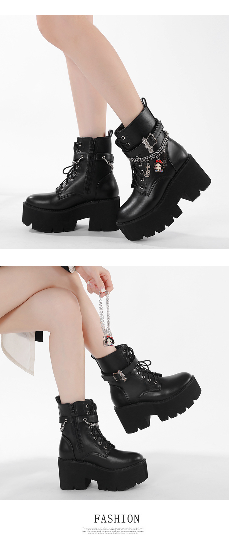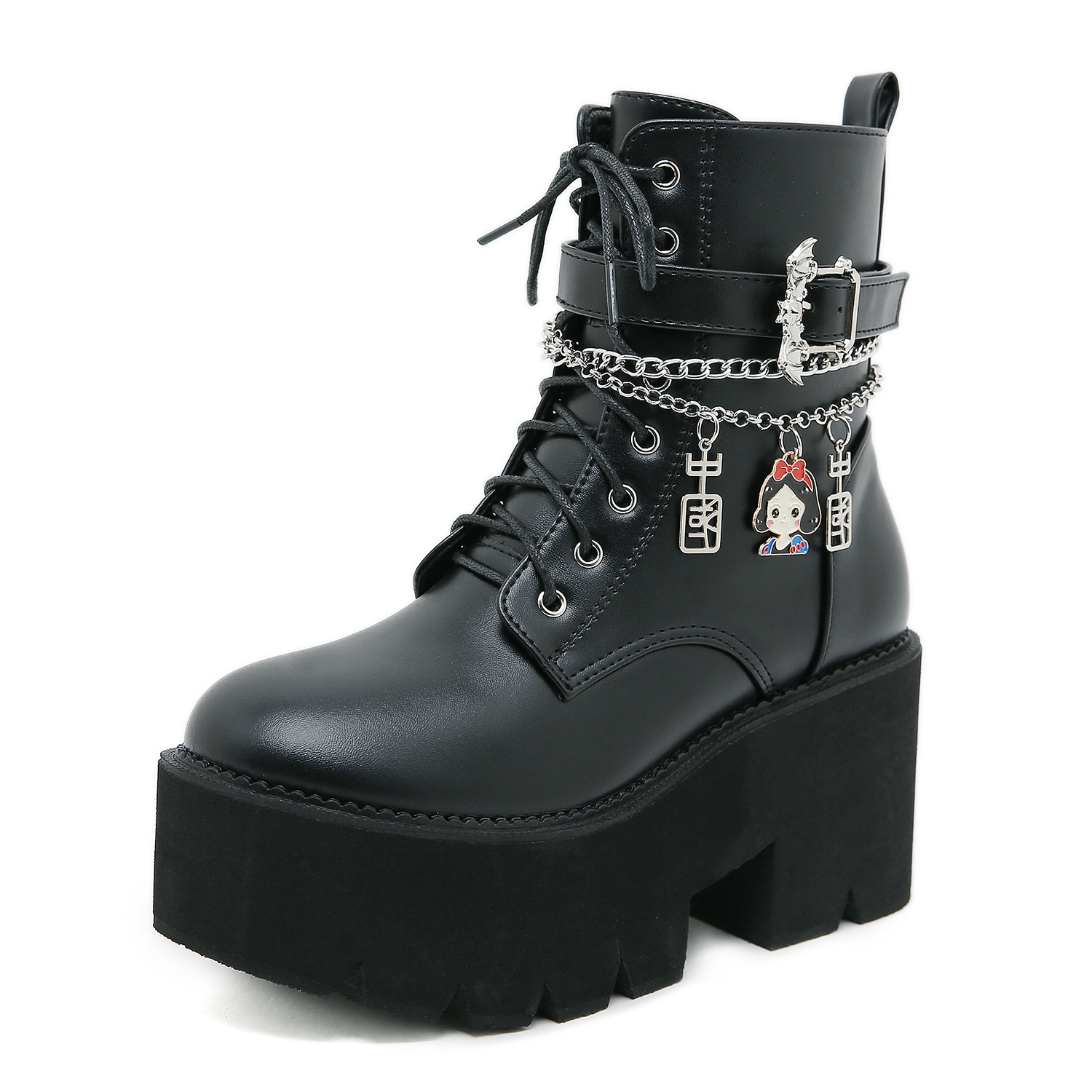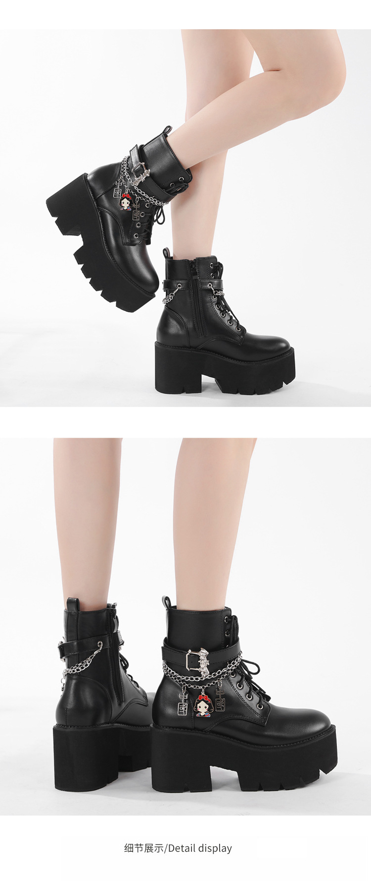 2024 탈부착 가능한 체인 여성화 소녀용 중국 펜던트 대형 여성 부츠 두꺼운 굽 두꺼운 밑창 숏부츠 여성 마틴 부츠스토어 가기