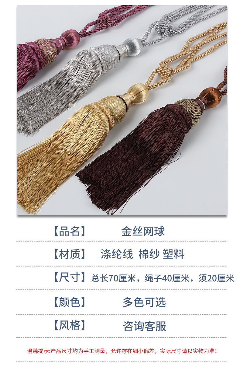 재고 커튼 스트랩 술 골드 실크 테니스 교수형 공 크리에이티브 커튼 스트랩 로프 교수형 술 교수형 볼 커튼 액세서리스토어 가기