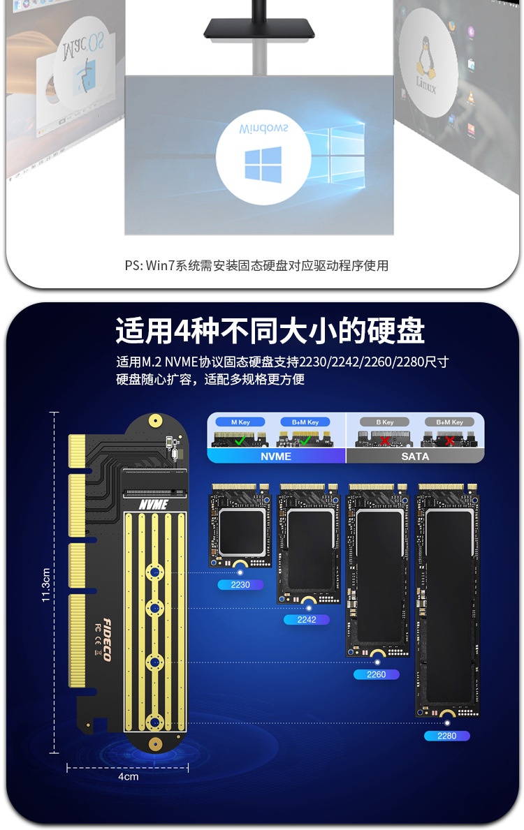 NVME-PCIE 확장 카드 데스크탑 3.0/4.0-M.2 어댑터 카드 솔리드 스테이트 확장 카드 슬롯 고속 전송스토어 가기