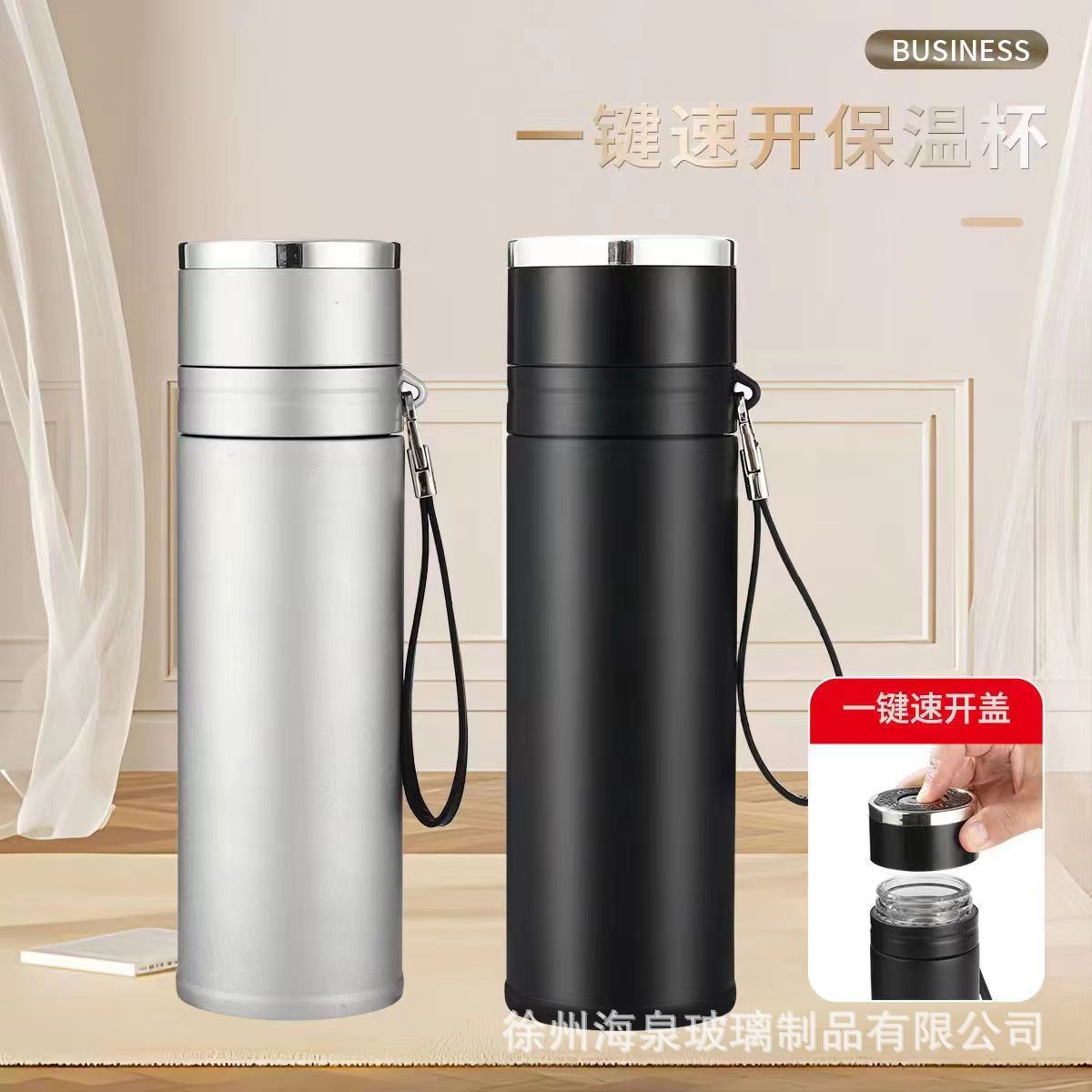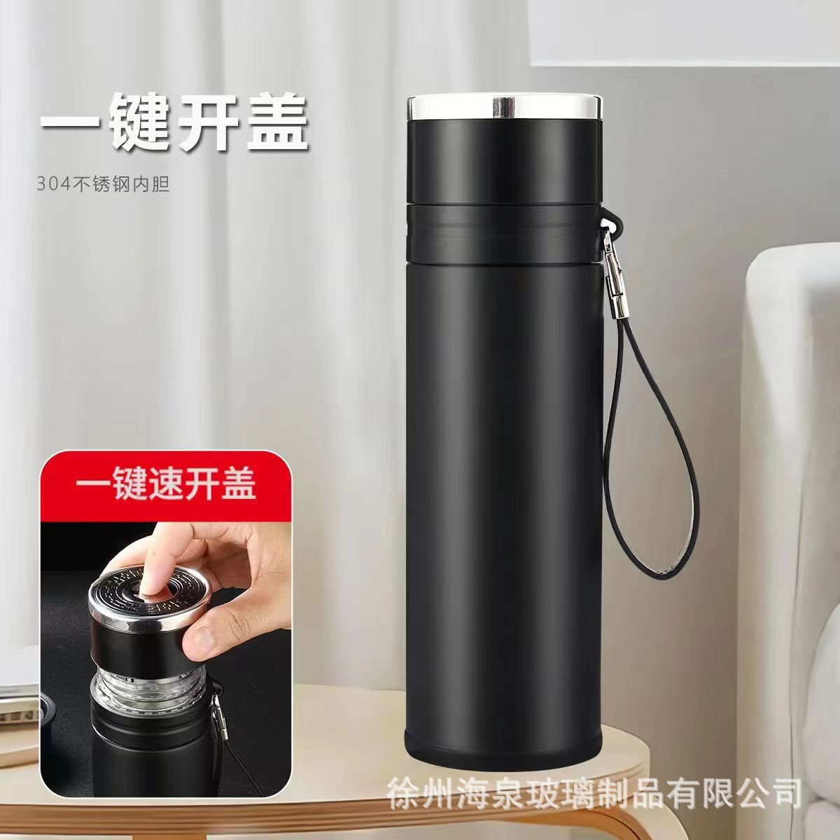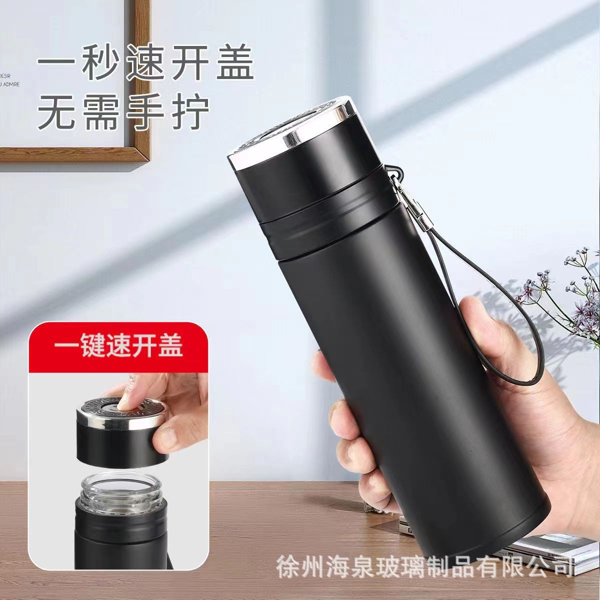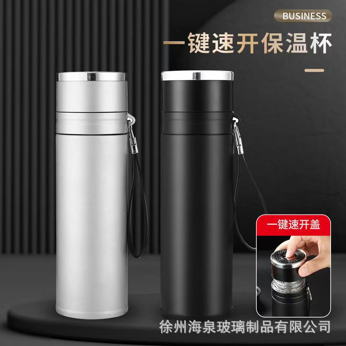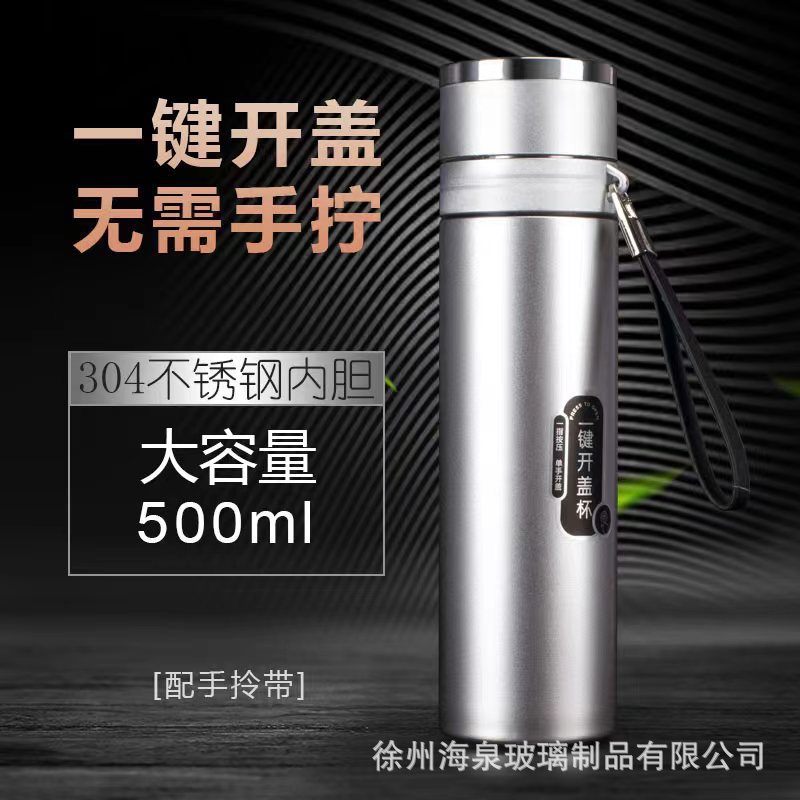퀵 오픈 보온병 컵 원 버튼 오픈 뚜껑 스테인레스 스틸 차 분리 보온병 컵 자동차 비즈니스 남성용 바운스 티 컵