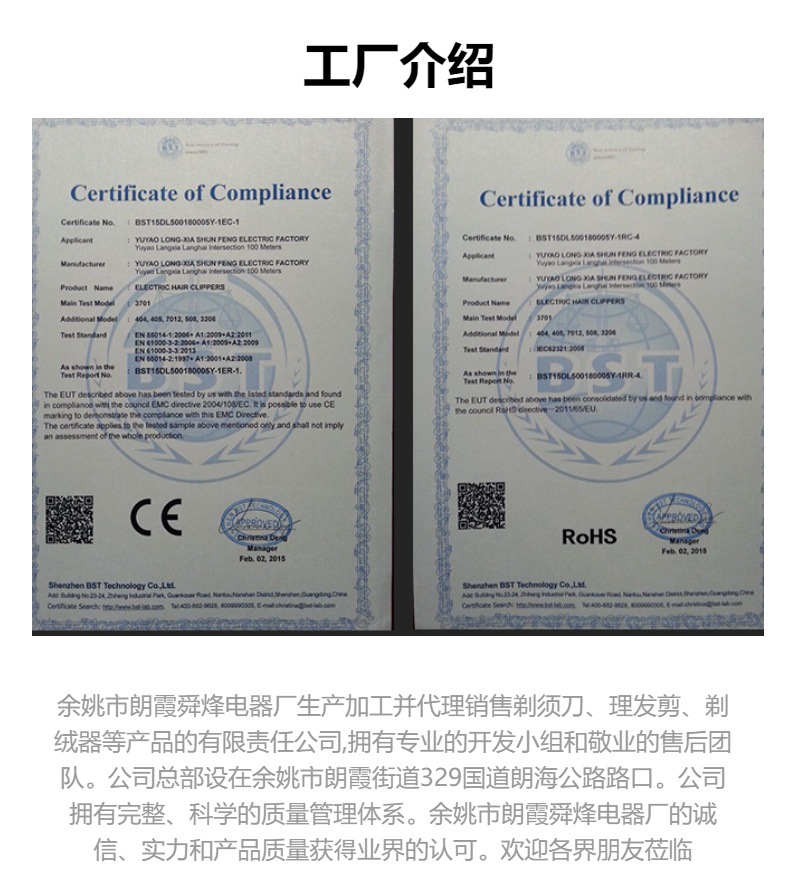 公司专业生产加工并代理销售剃须刀、理发剪、剃绒器等产品的有限责任公司,拥有专业的开发小组和敬业的售后团队。欢迎全国各地贴牌加工!