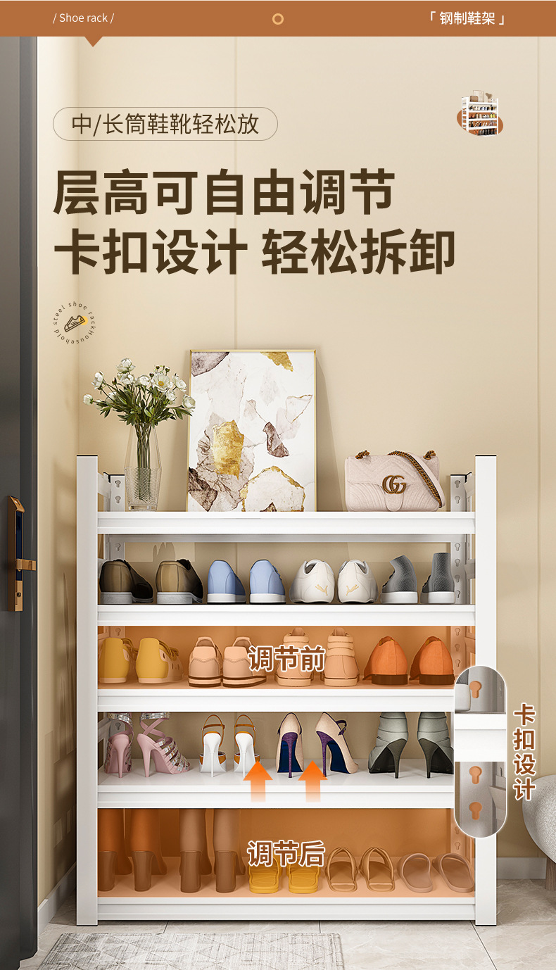 가정용 스틸 신발장 출입구 바닥 간단한 보관 랙 입구 도어 후면 신발 캐비닛 다층 연철 보관 랙