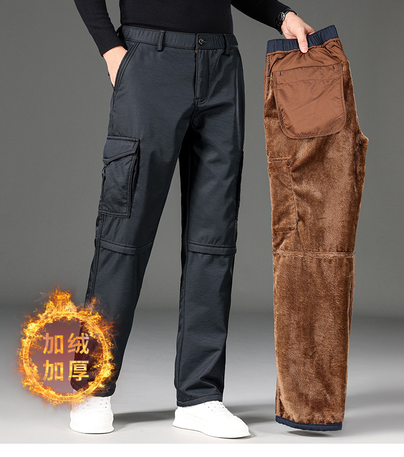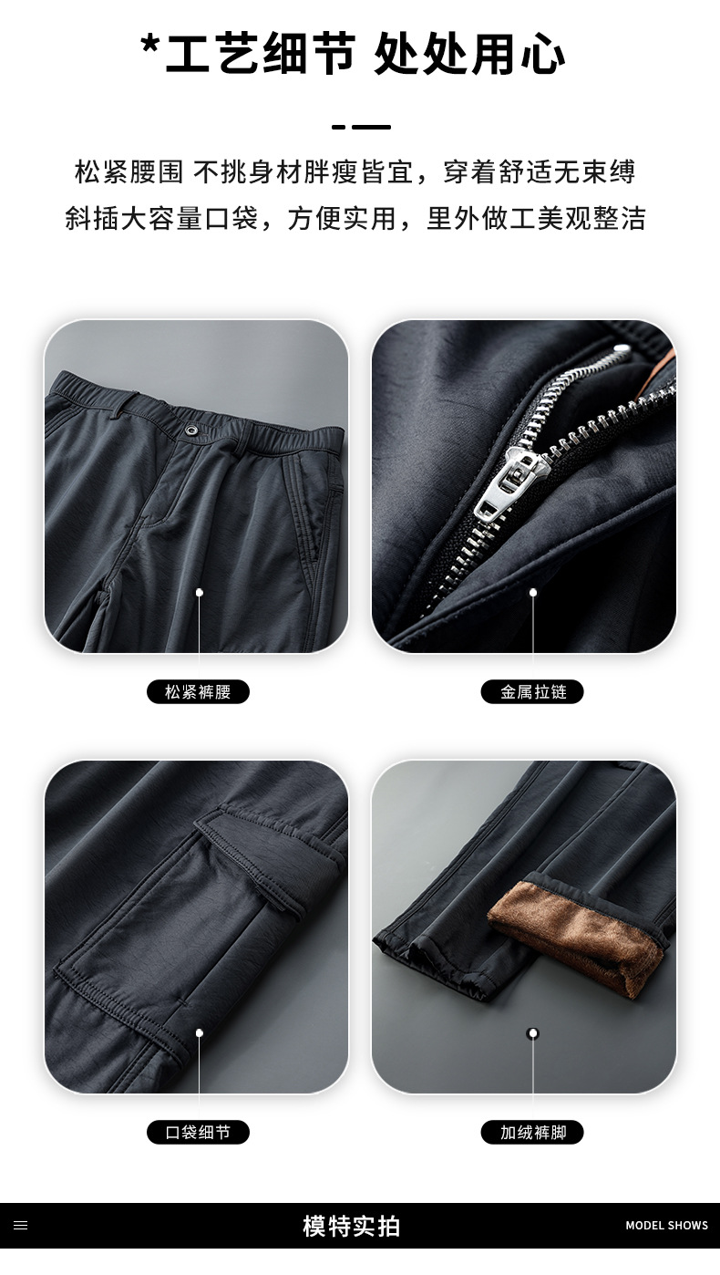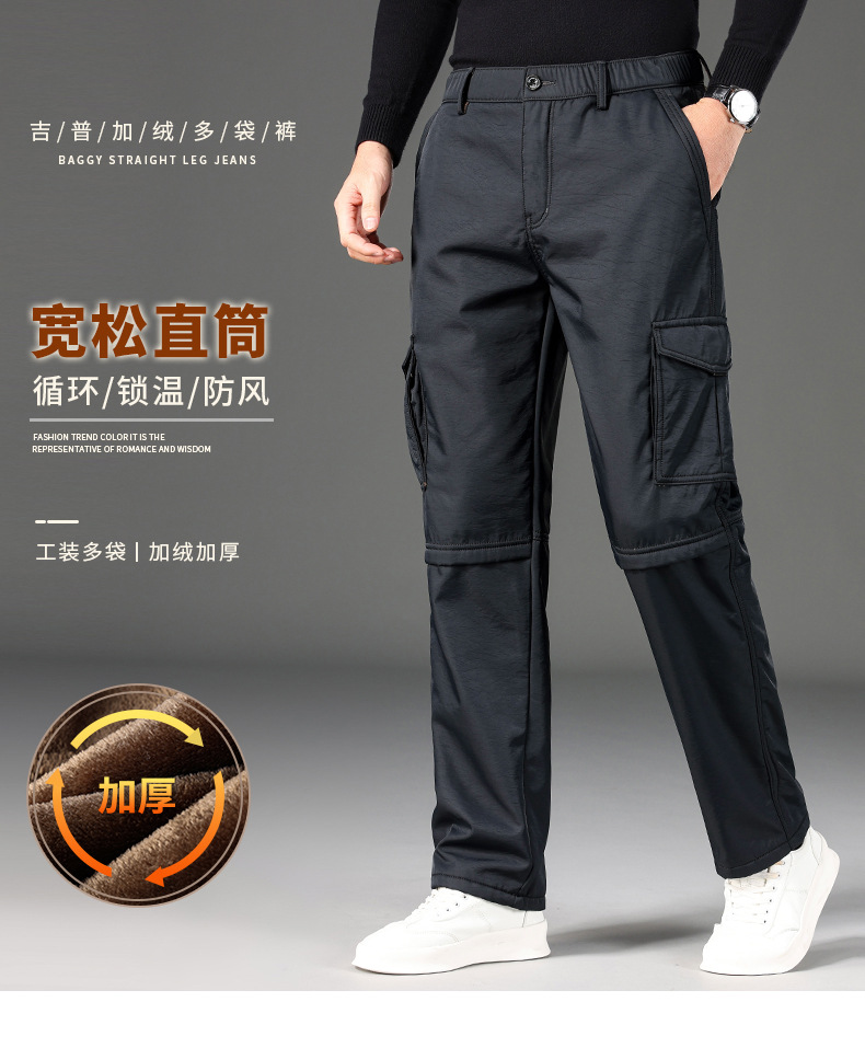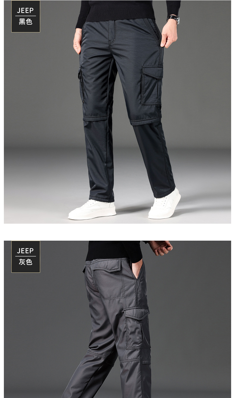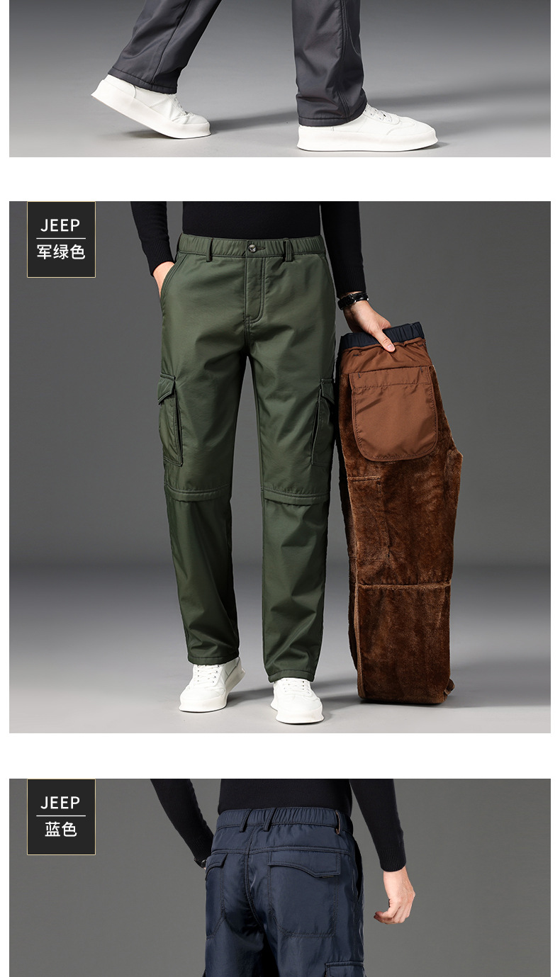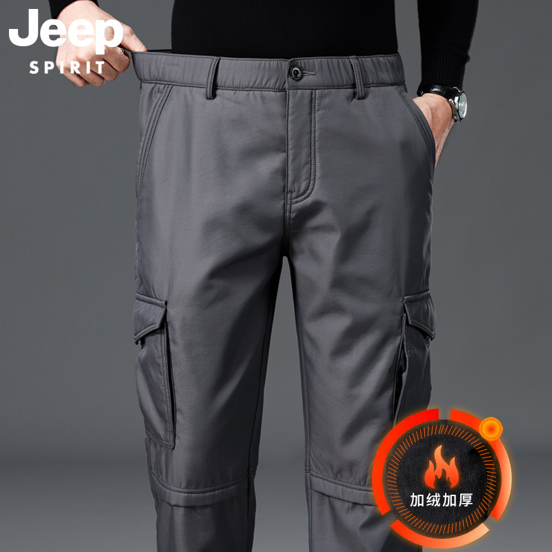 JEEP SPIRIT 남성용 멀티 백 캐주얼 바지 남성 기모 비즈니스 캐주얼 바지 가을과 겨울 두꺼운 플러스 사이즈 방수
