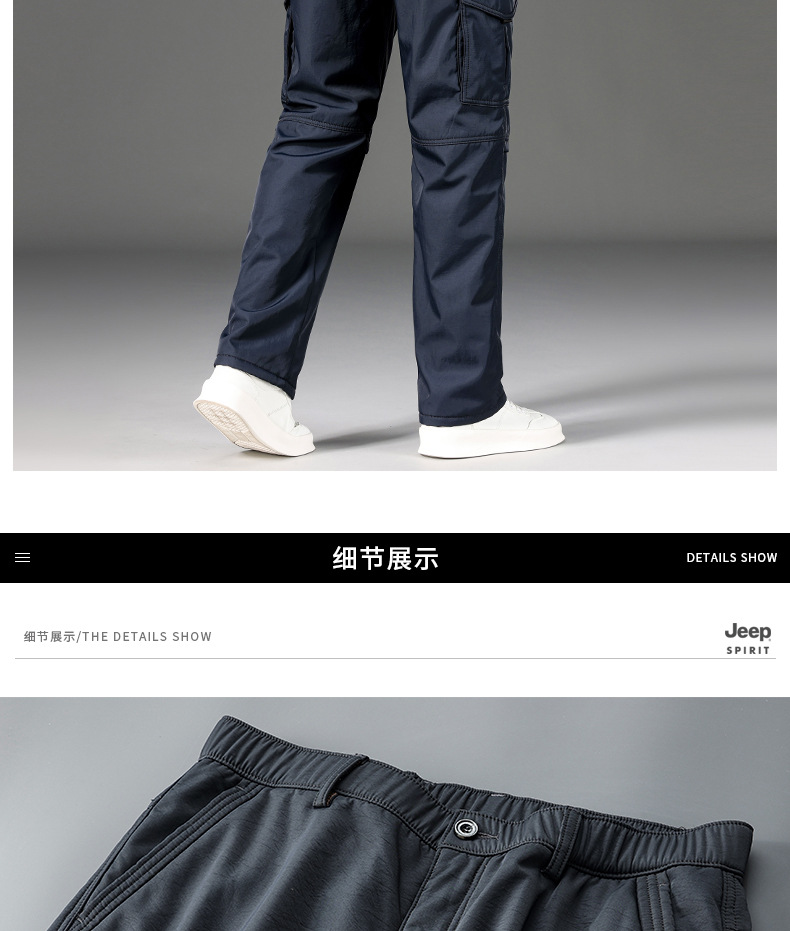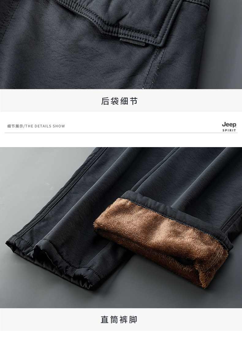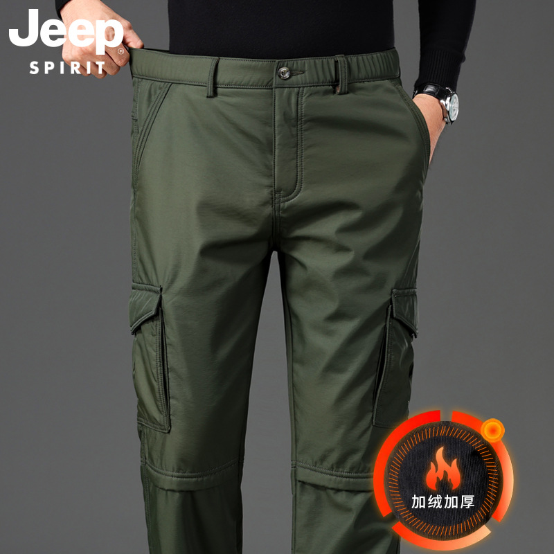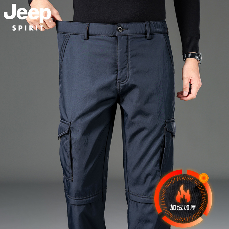 JEEP SPIRIT 남성용 멀티 백 캐주얼 바지 남성 기모 비즈니스 캐주얼 바지 가을과 겨울 두꺼운 플러스 사이즈 방수스토어 가기