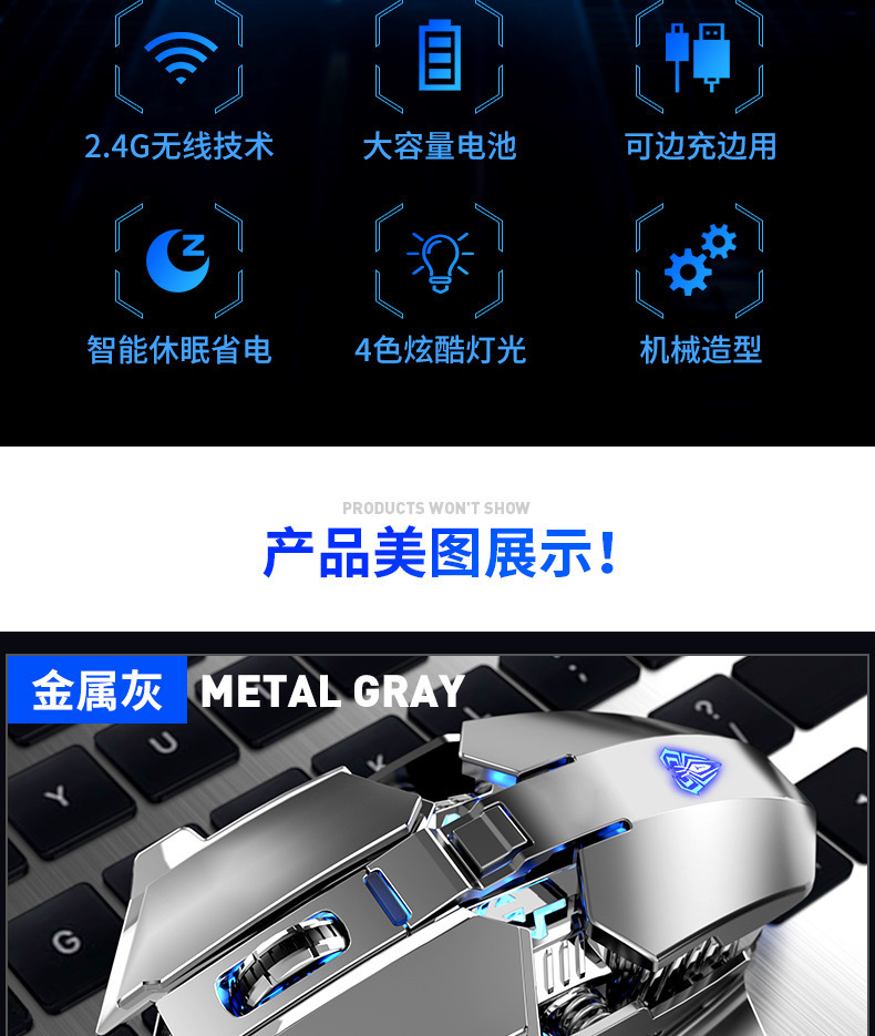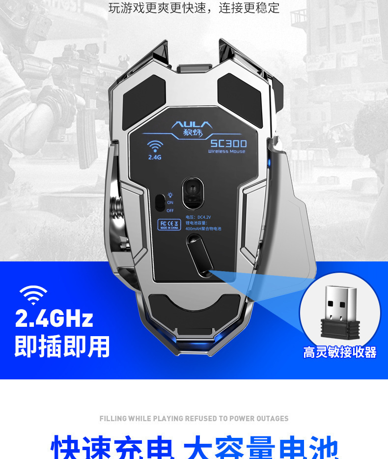 타란툴라 SC300 무선 음소거 마우스 E 스포츠 게임 사무실 비즈니스 메카 충전식 데스크탑 노트북