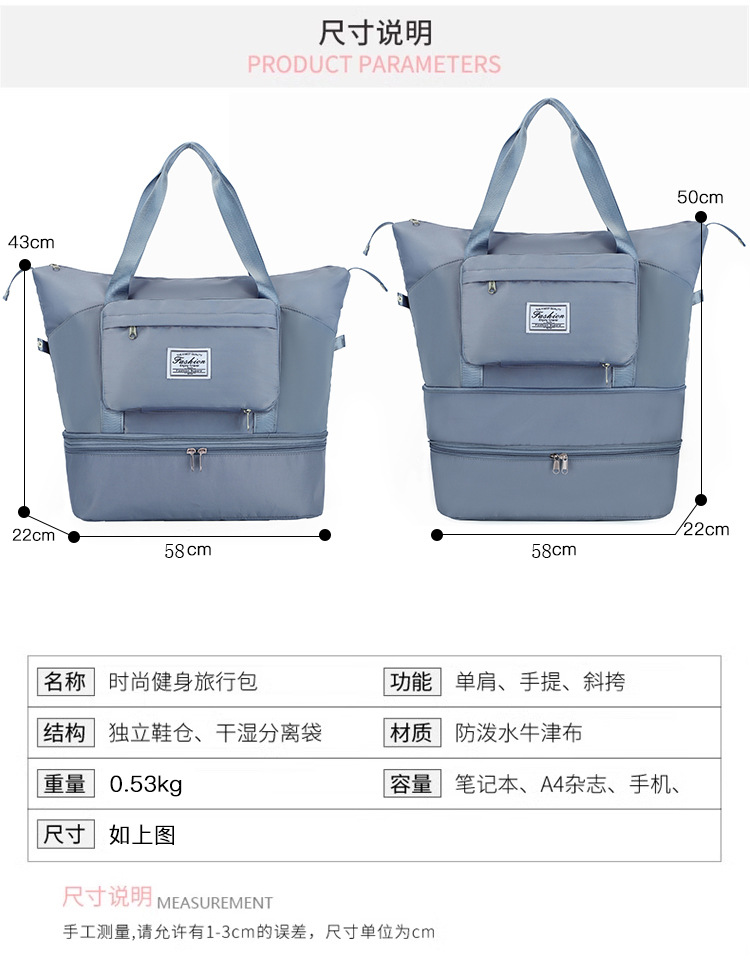 접이식 여행 가방 대용량 건식 및 습식 분리 체육관 가방 단거리 경량 대용량 비즈니스 여행 의류 보관 가방스토어 가기