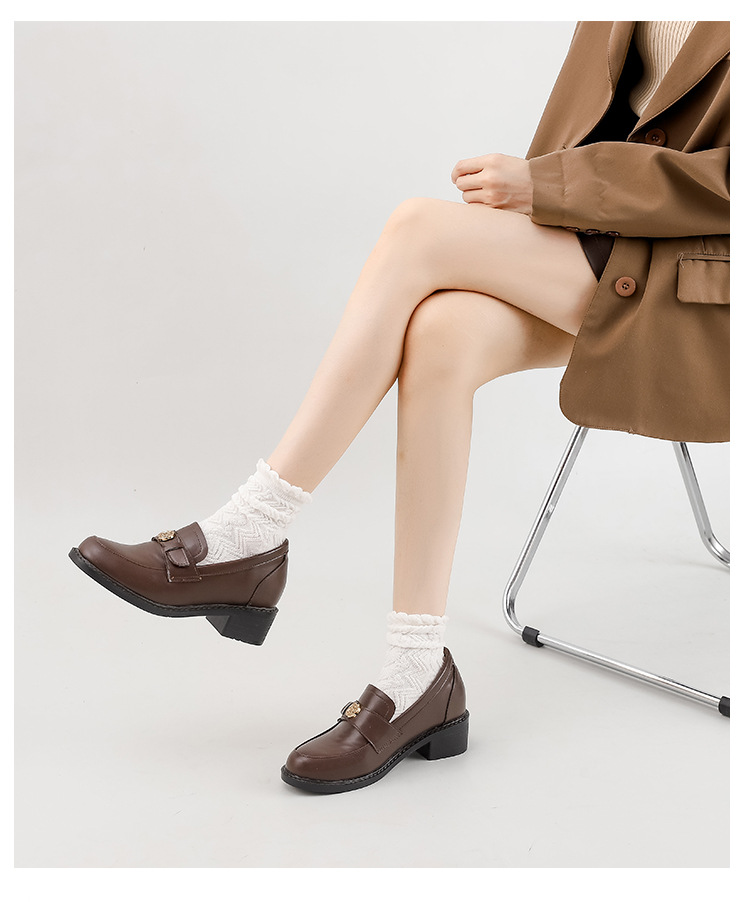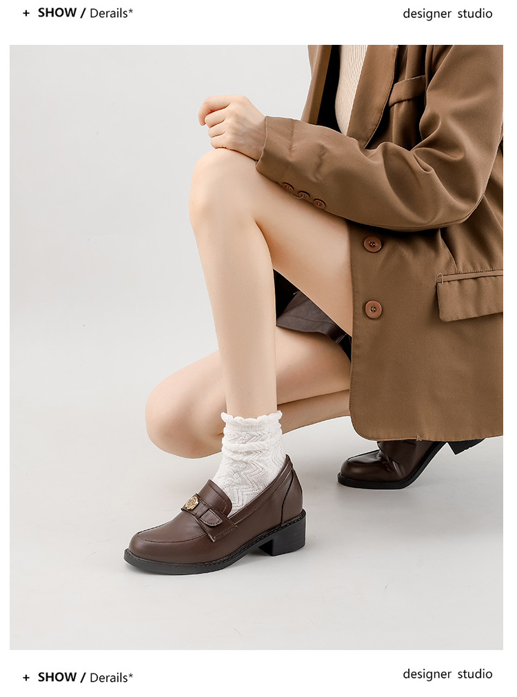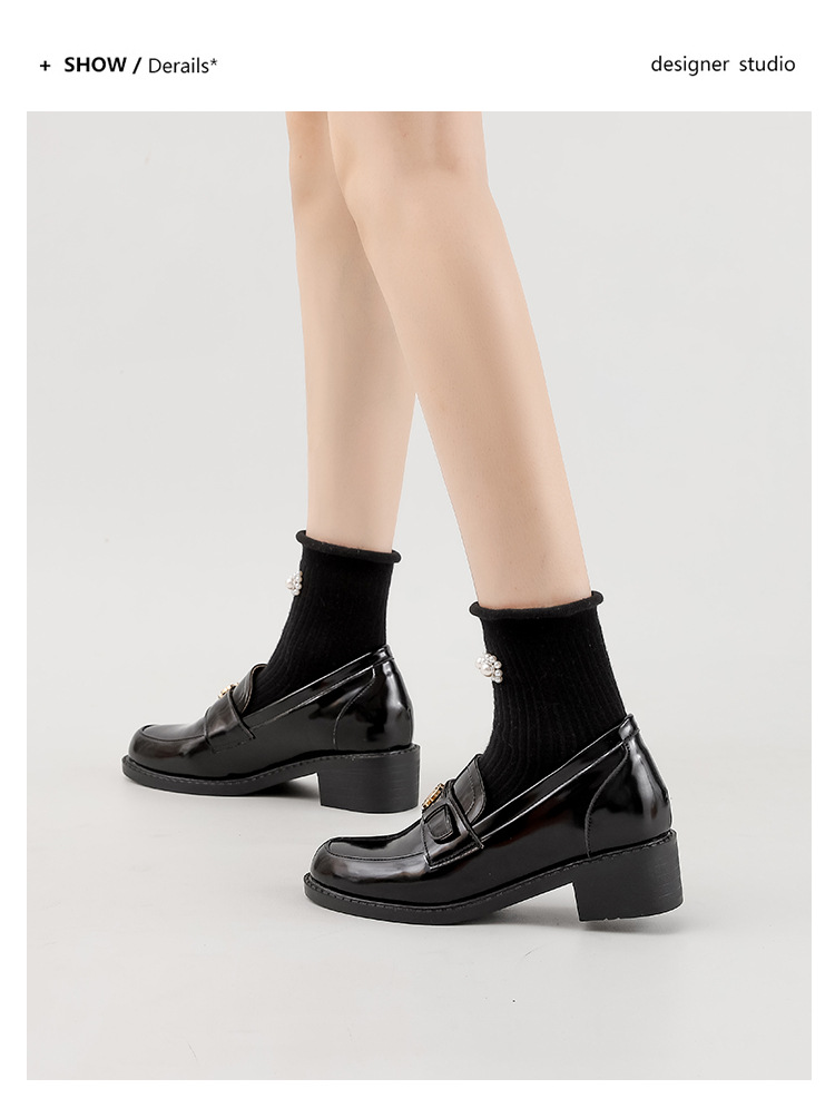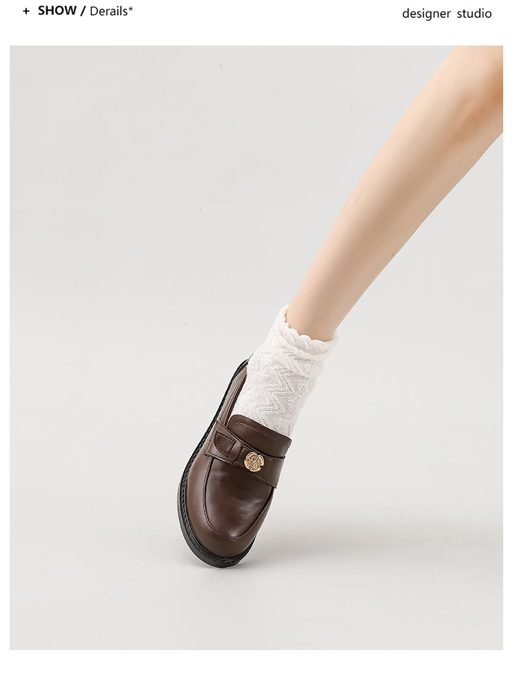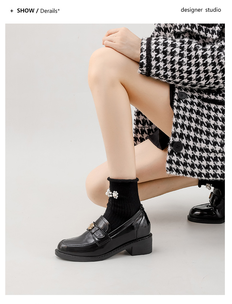 포도 엄마 같은 스타일 동백 작은 가죽 신발 복고풍 슬립온 로퍼 두꺼운 굽 두꺼운 밑창 높이 여성용 게으른 신발 증가스토어 가기