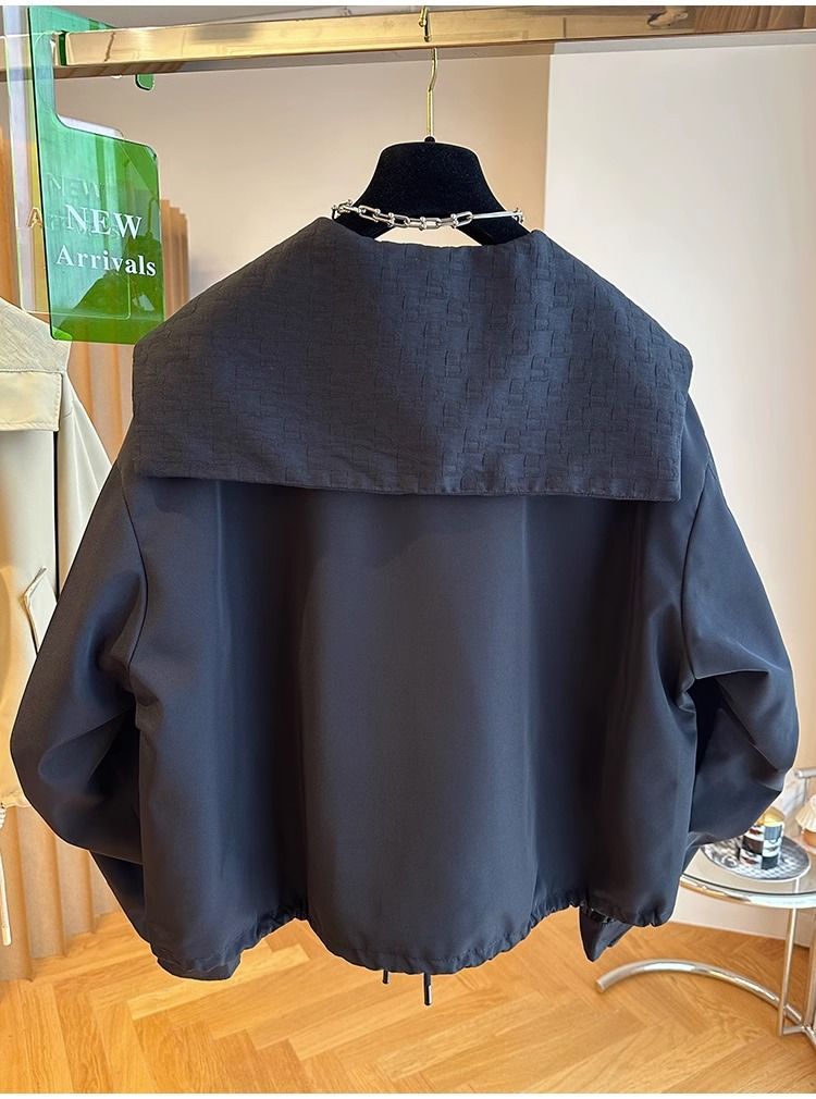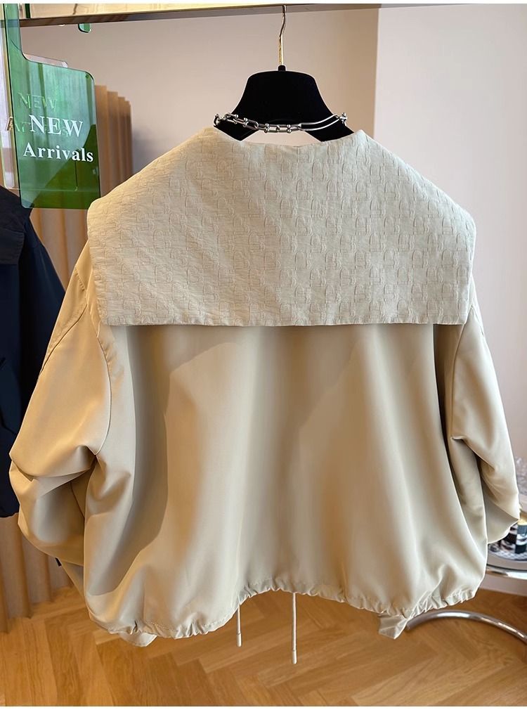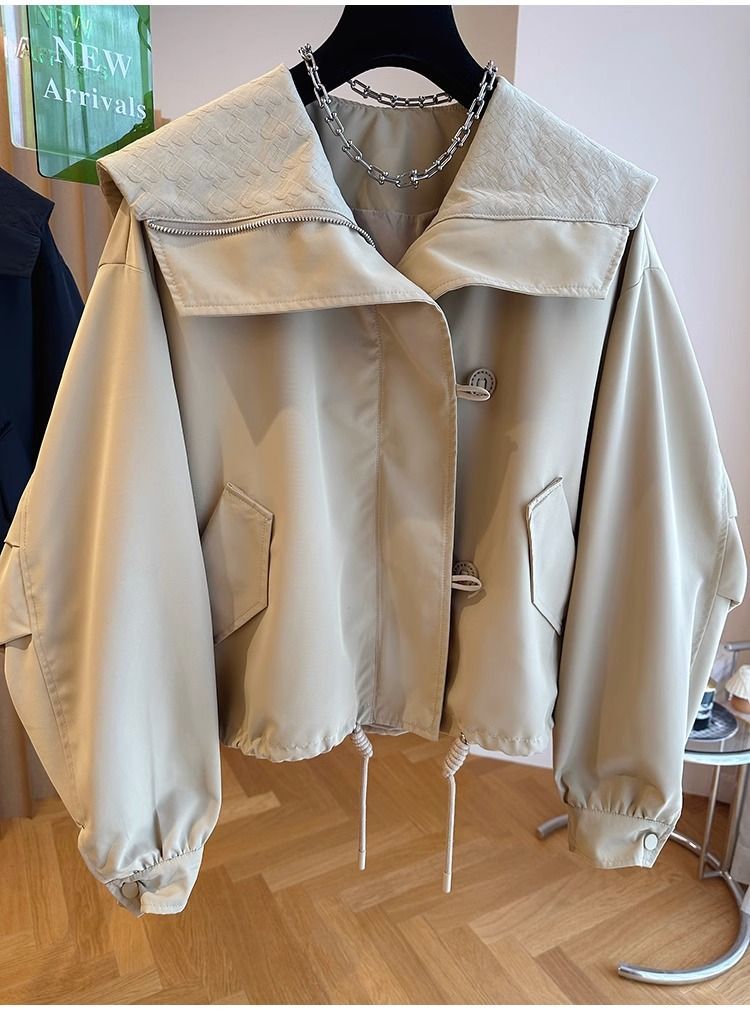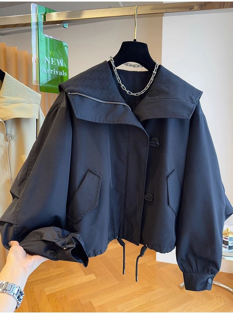 한국 스타일 디자인 센스 틈새 느슨한 캐주얼 버클 네이비 칼라 짧은 코트 여성의 봄과 가을 유행 재킷 탑