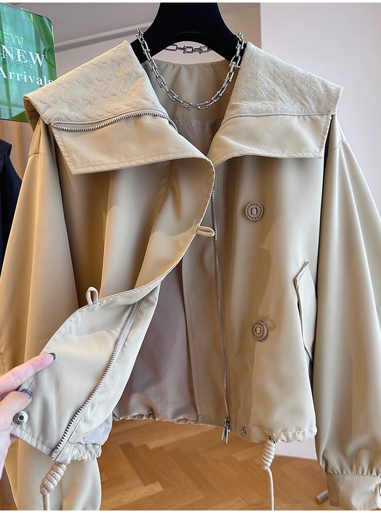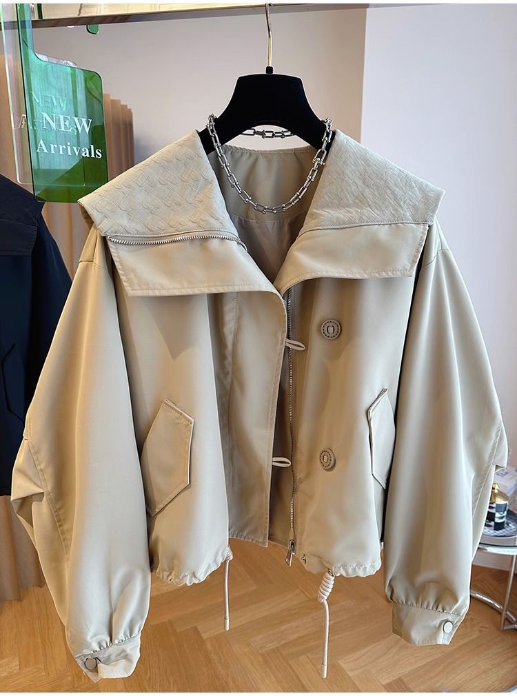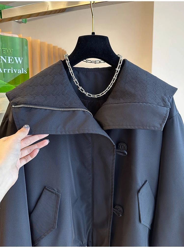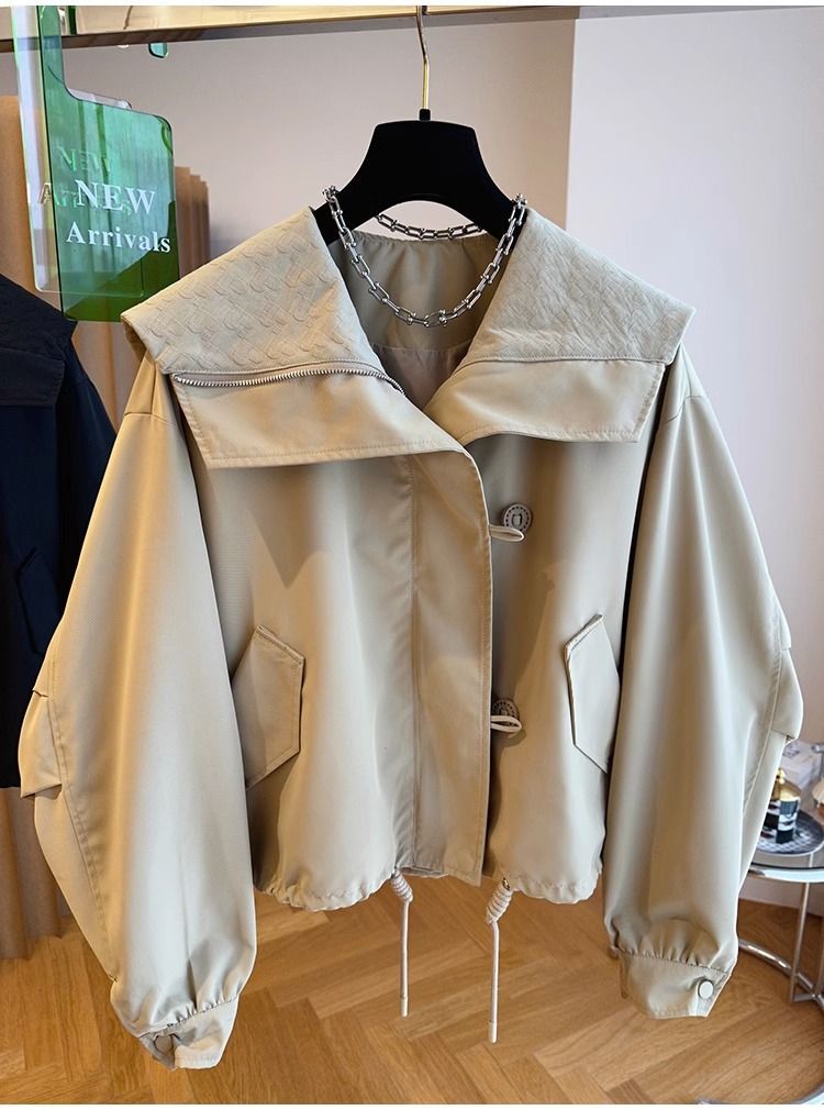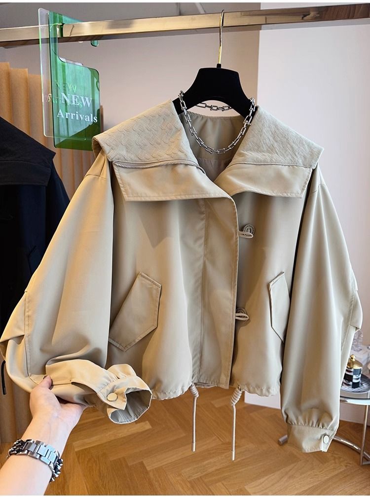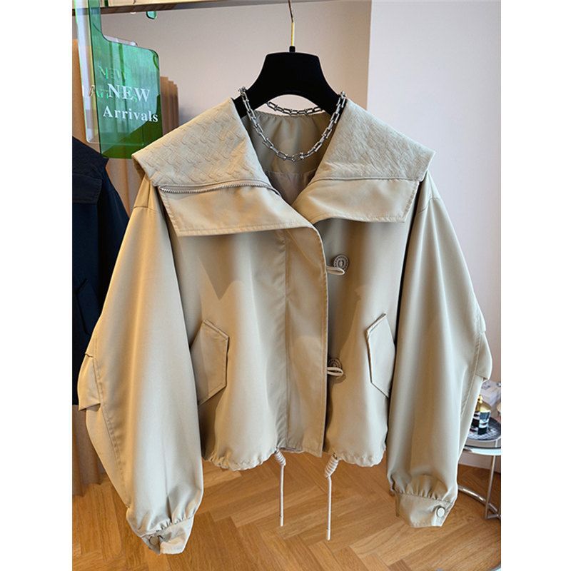 한국 스타일 디자인 센스 틈새 느슨한 캐주얼 버클 네이비 칼라 짧은 코트 여성의 봄과 가을 유행 재킷 탑스토어 가기