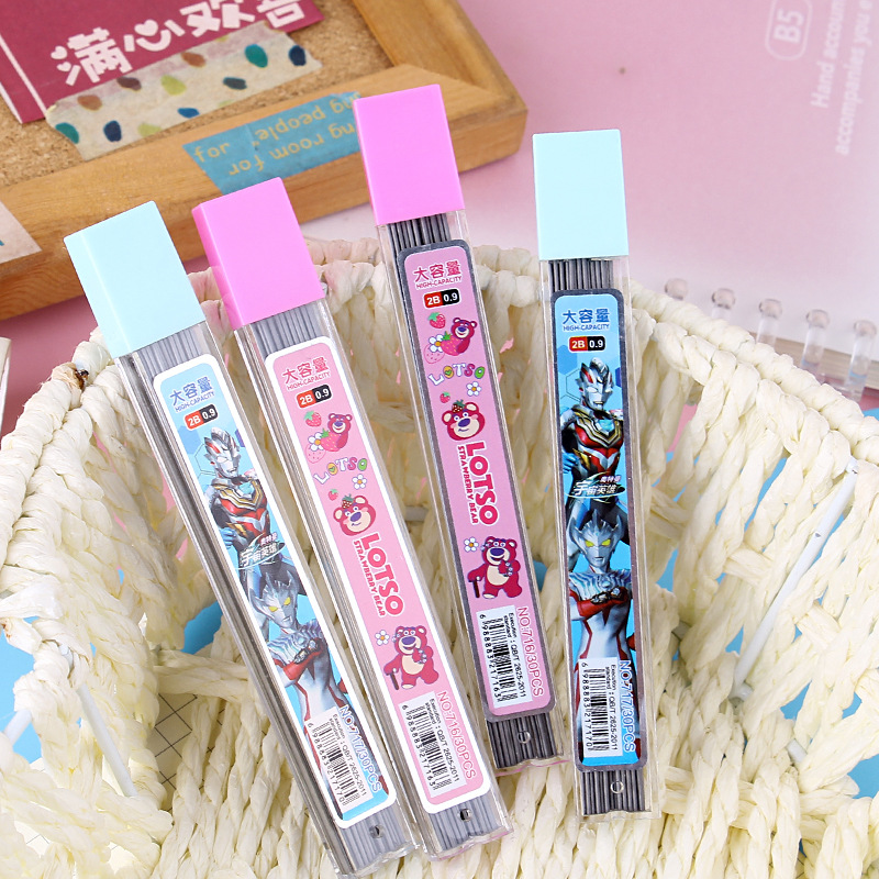 0.9mm 자동 연필 리드 교체 리필 딸기 곰 초등학생 대담한 그림 스케치 리드 연속 리드스토어 가기