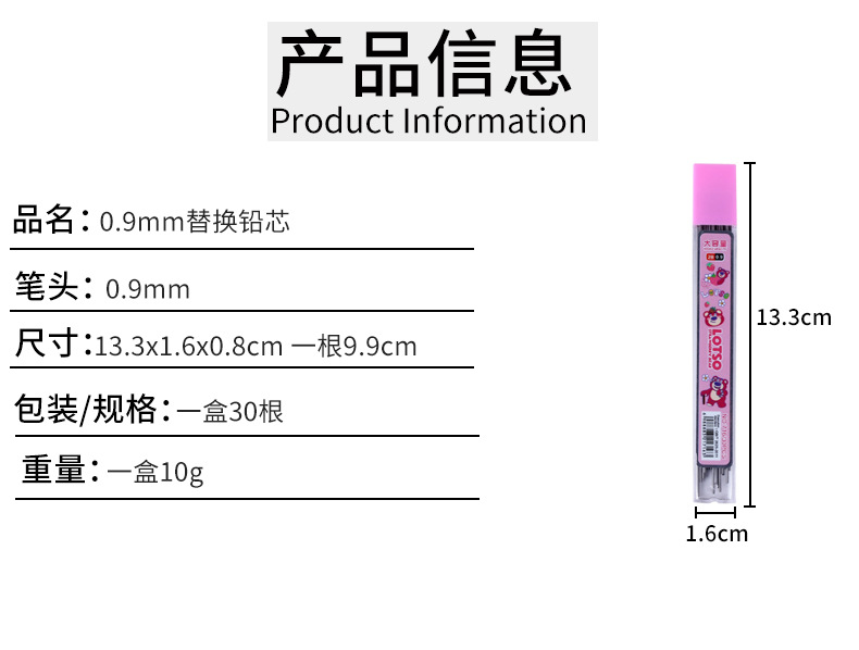 0.9mm 자동 연필 리드 교체 리필 딸기 곰 초등학생 대담한 그림 스케치 리드 연속 리드