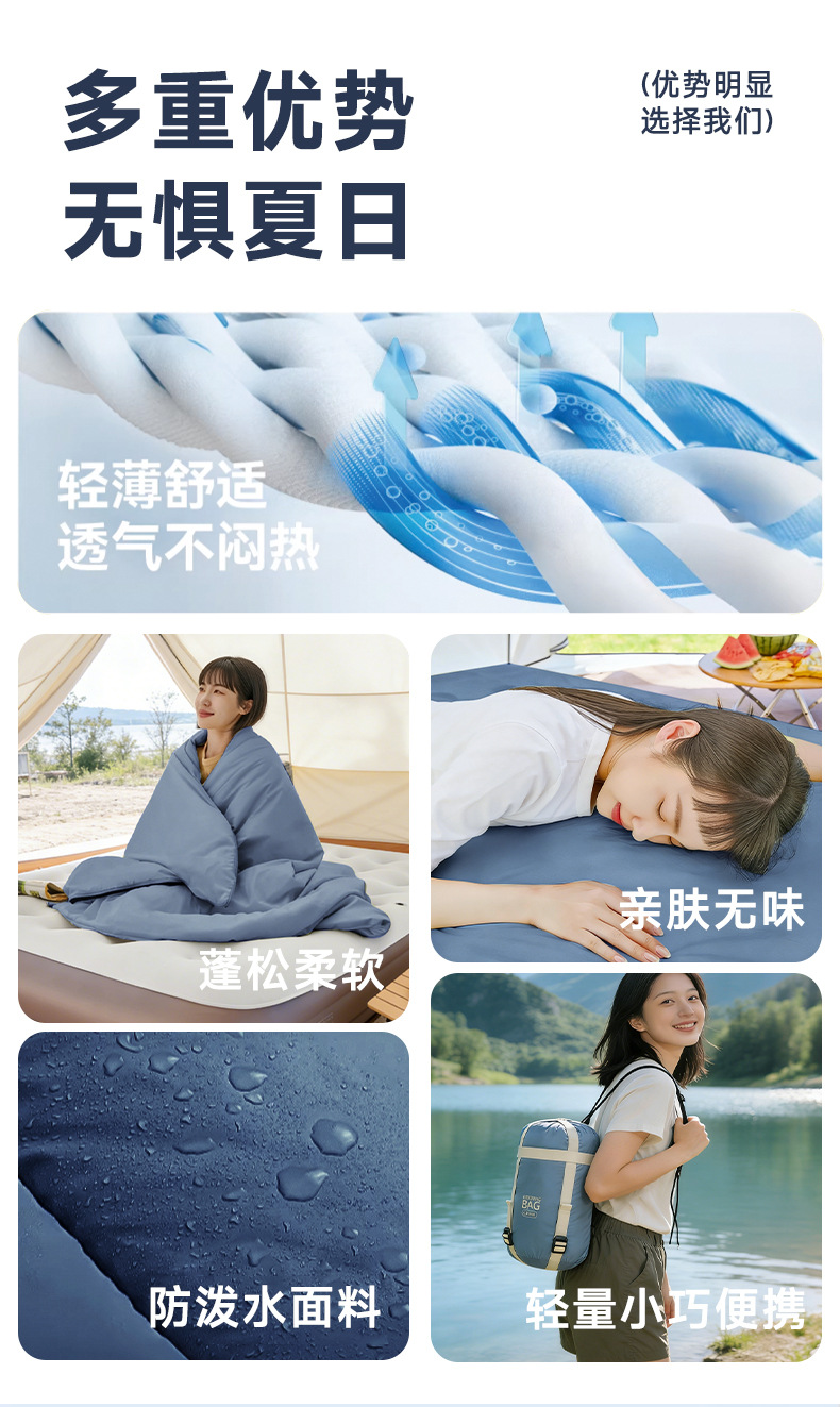 야외 여행 및 캠핑을 위한 미니 초경량 성인 여름 나일론 더티 침낭, 다운 면, 세탁기 사용 가능 및 접합 가능스토어 가기