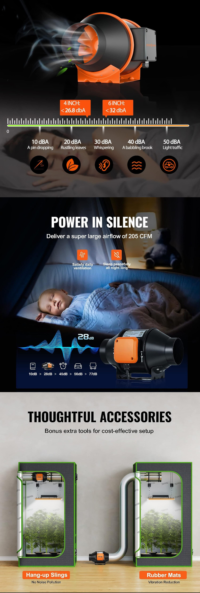EC 가변 주파수 파이프 라인 팬 100p4 인치 6 인치 대용량 음소거 배기 팬 110V 실내 환기 수경 재배스토어 가기