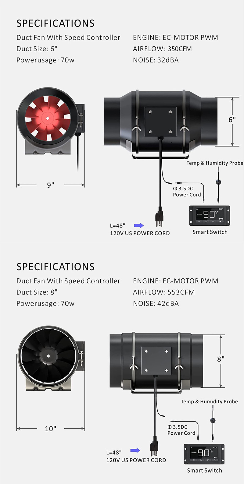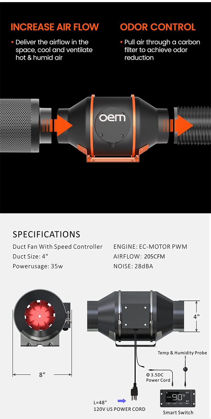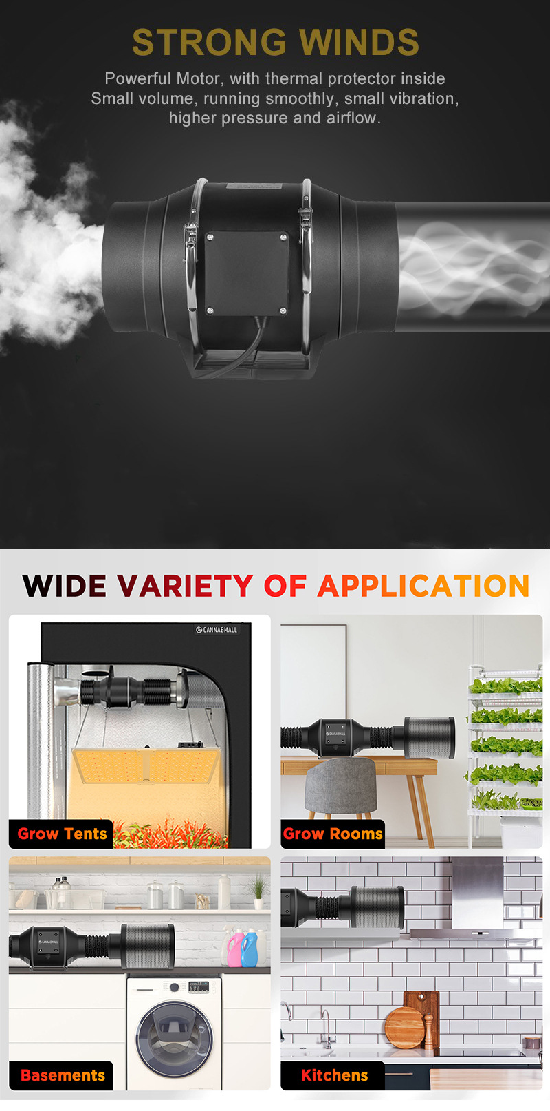 EC 가변 주파수 파이프 라인 팬 100p4 인치 6 인치 대용량 음소거 배기 팬 110V 실내 환기 수경 재배