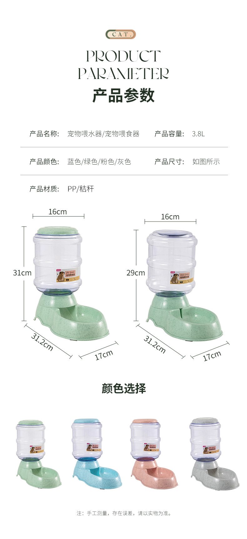 【宝贝净重】:饮水桶:334克 粮食桶: 282