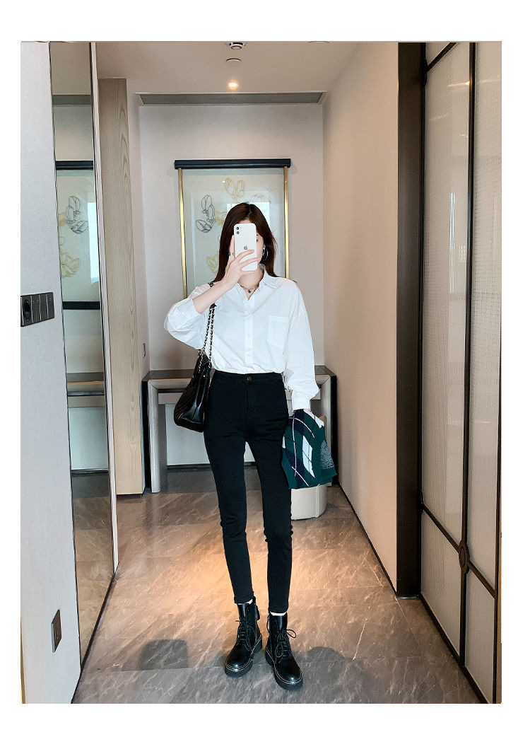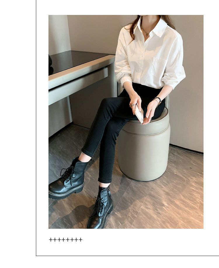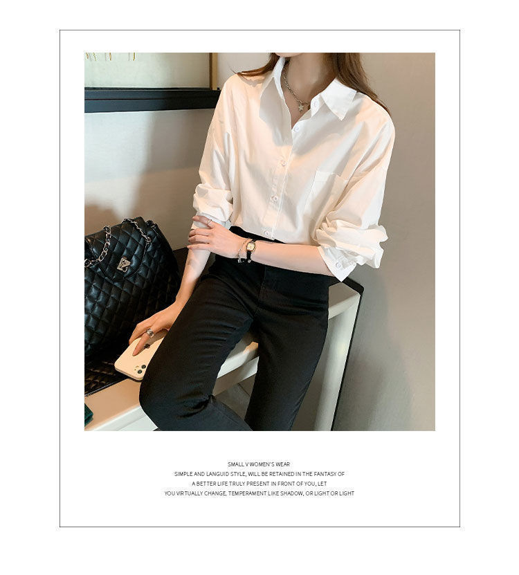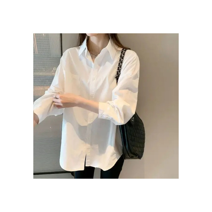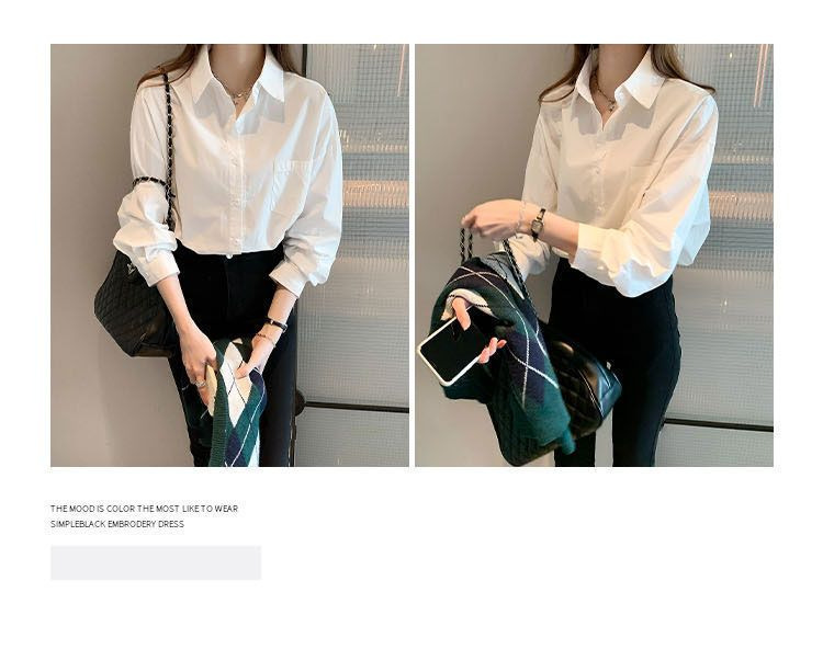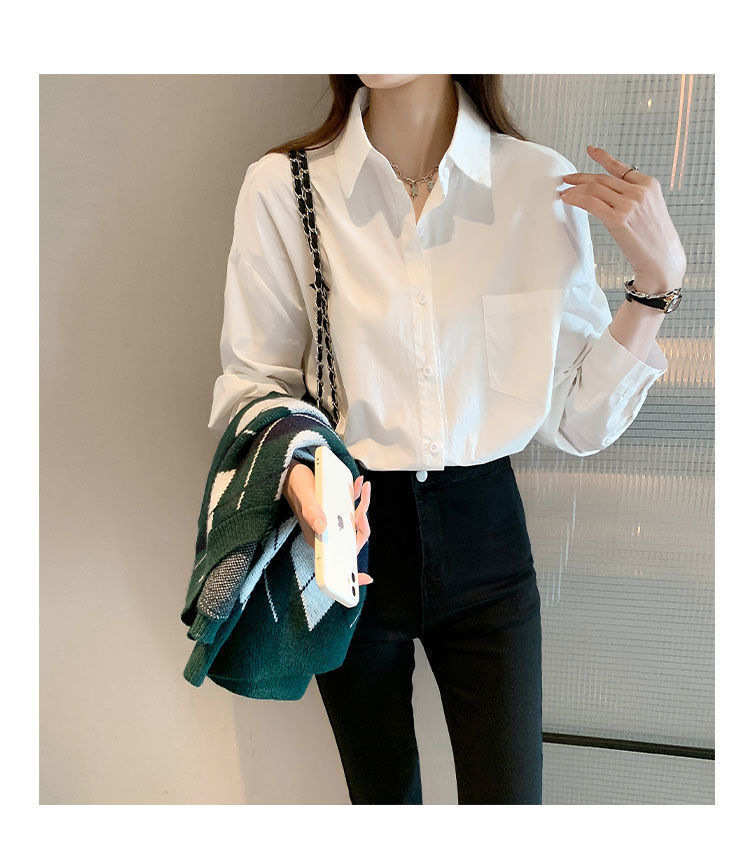 도파민 폴로 칼라 긴팔 화이트 셔츠 여성 가을 신형 한국식 느슨한 올매치 캐주얼 우아한 탑스토어 가기