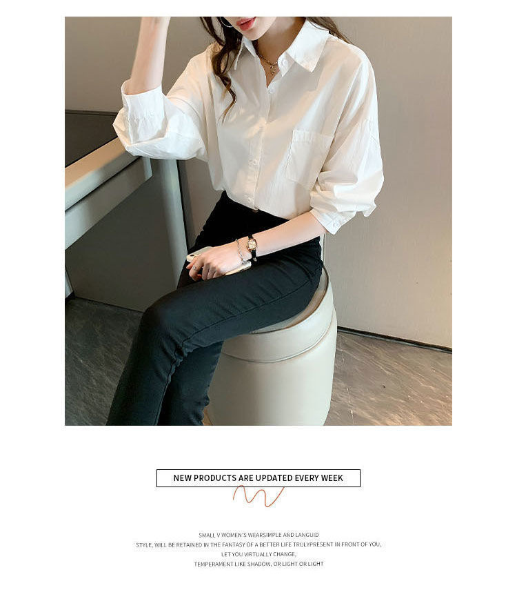 도파민 폴로 칼라 긴팔 화이트 셔츠 여성 가을 신형 한국식 느슨한 올매치 캐주얼 우아한 탑
