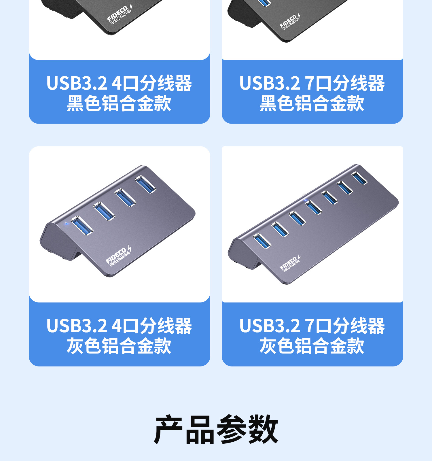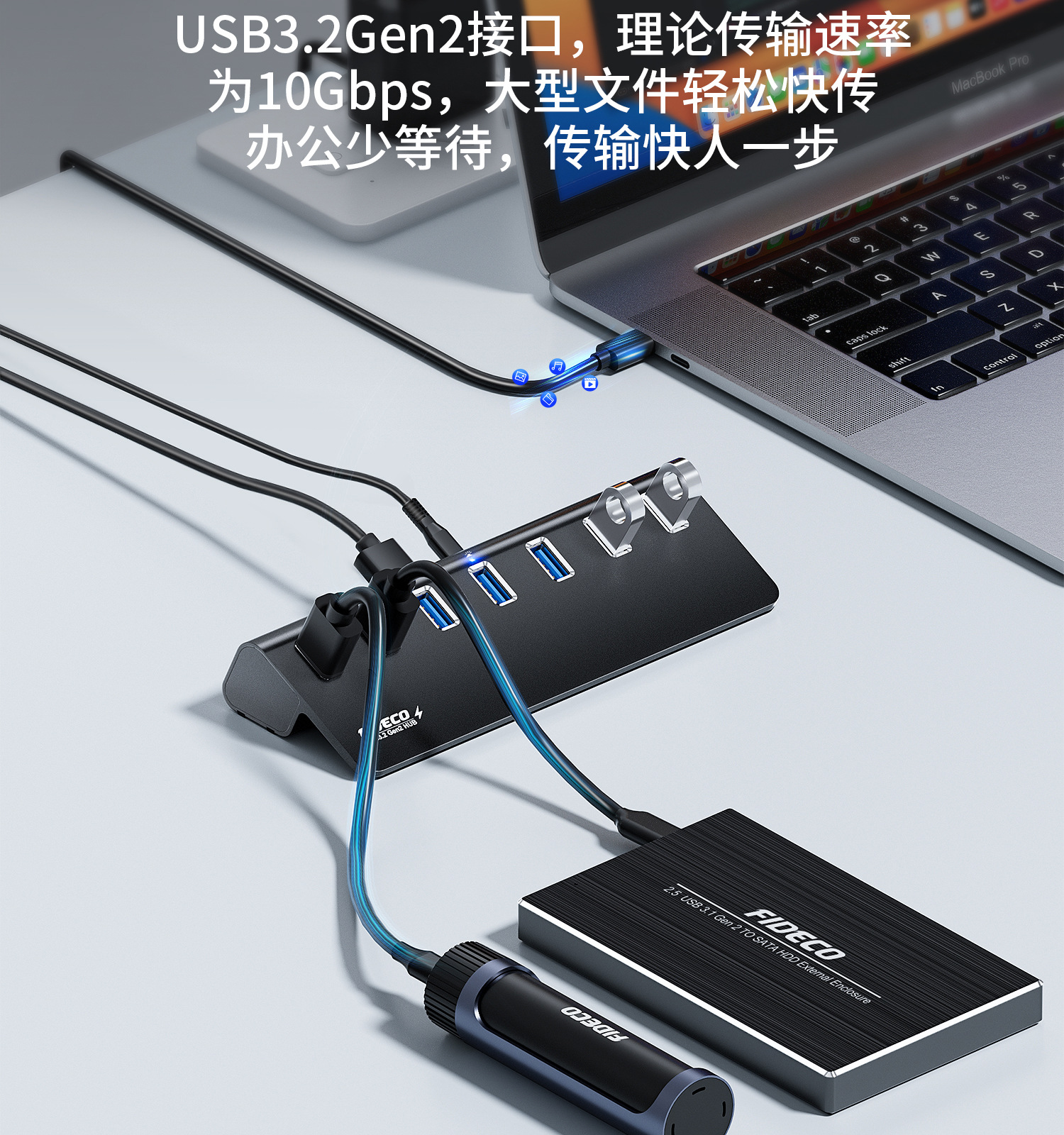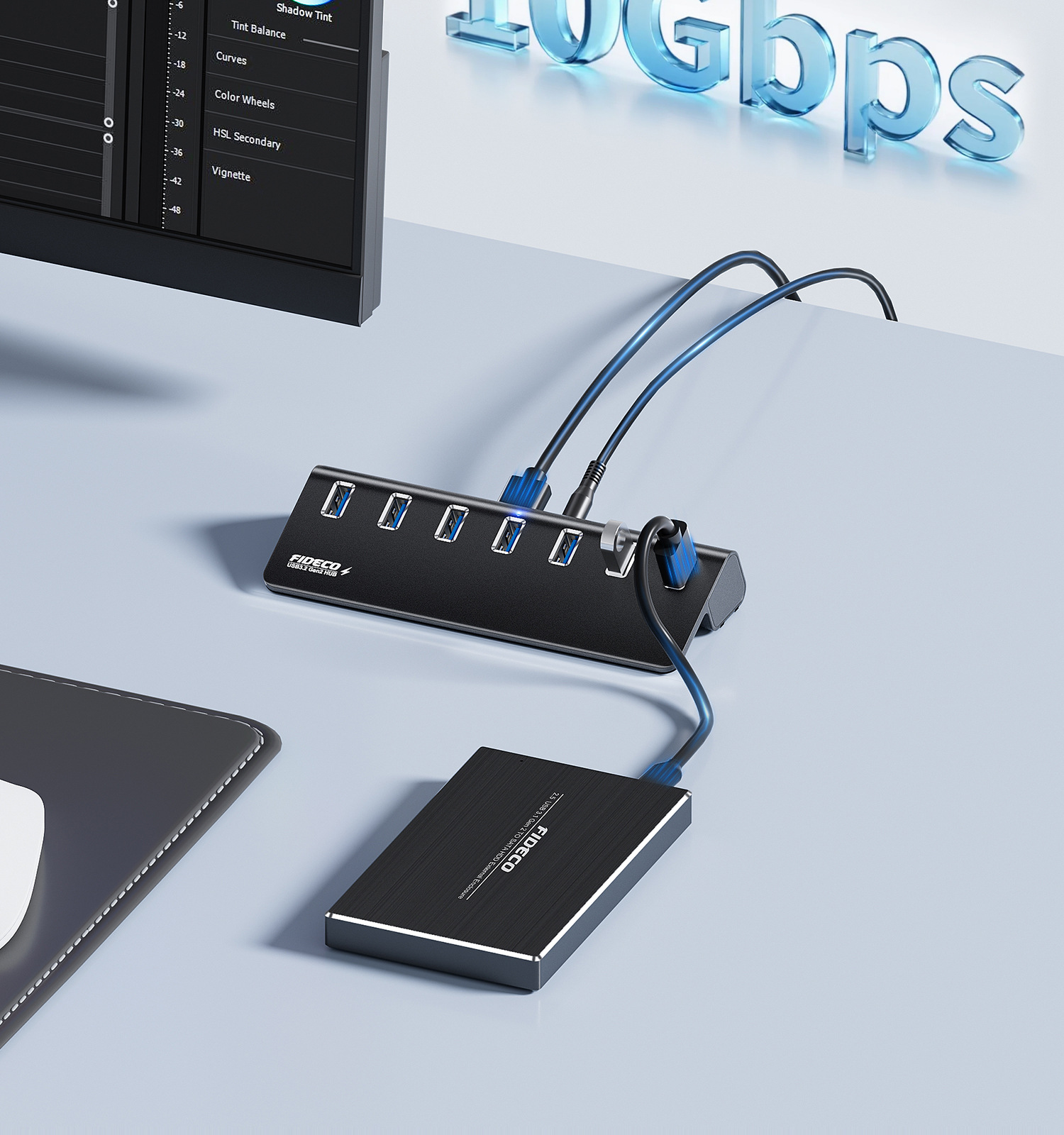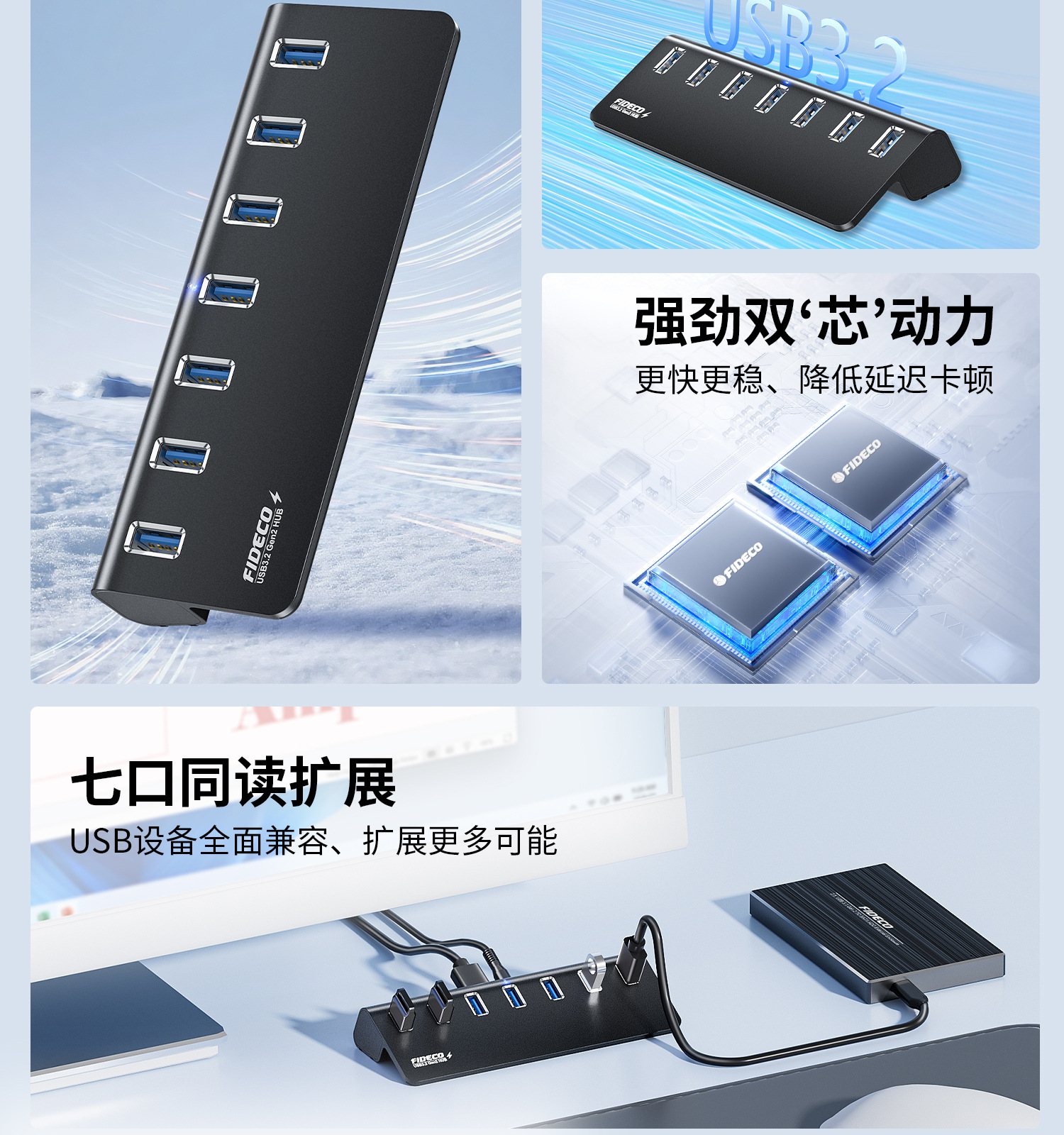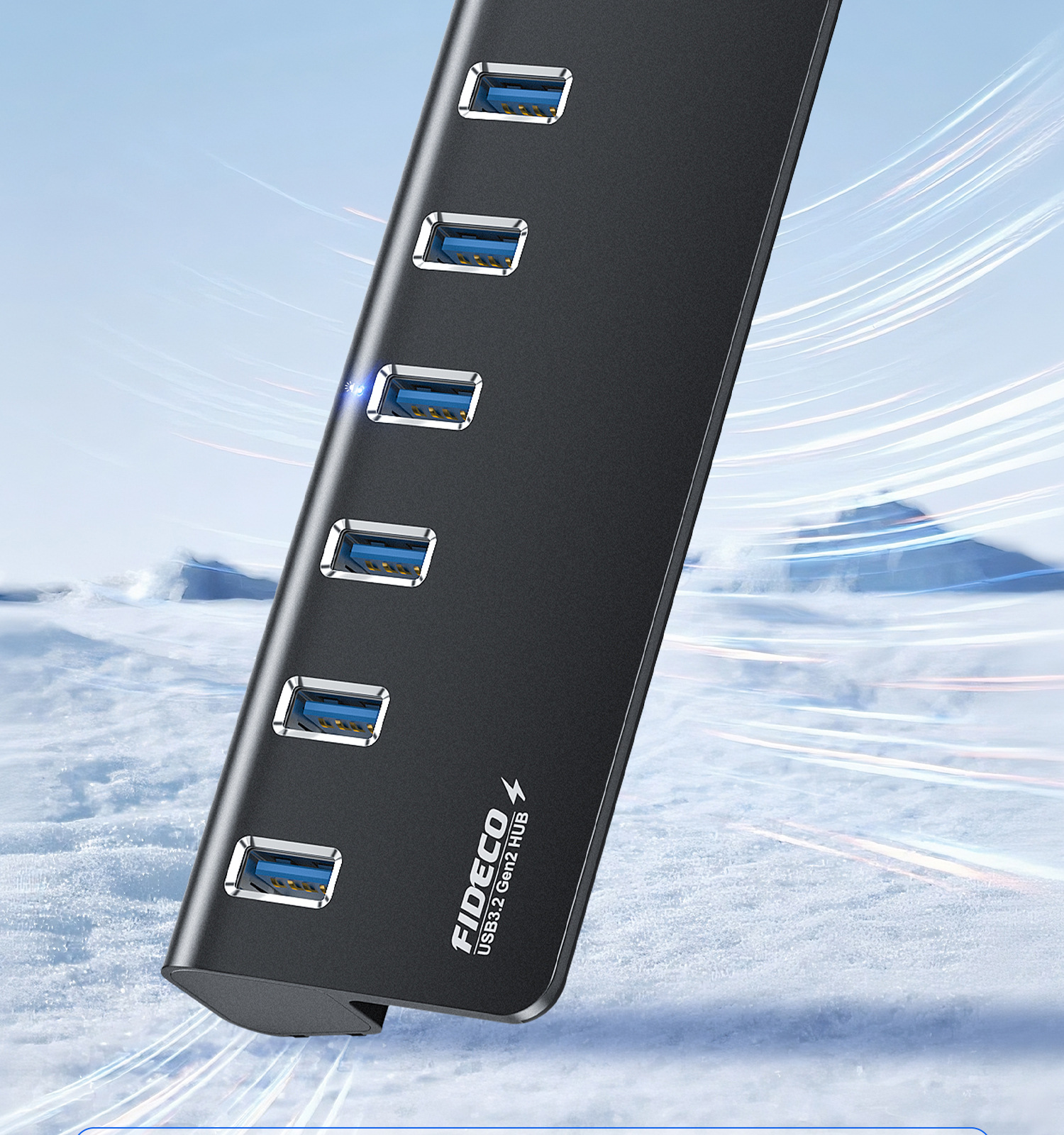 FIDECO 7포트 USB3.2 컴퓨터 멀티포트 확장기 노트북 데스크탑 확장 도크 허브