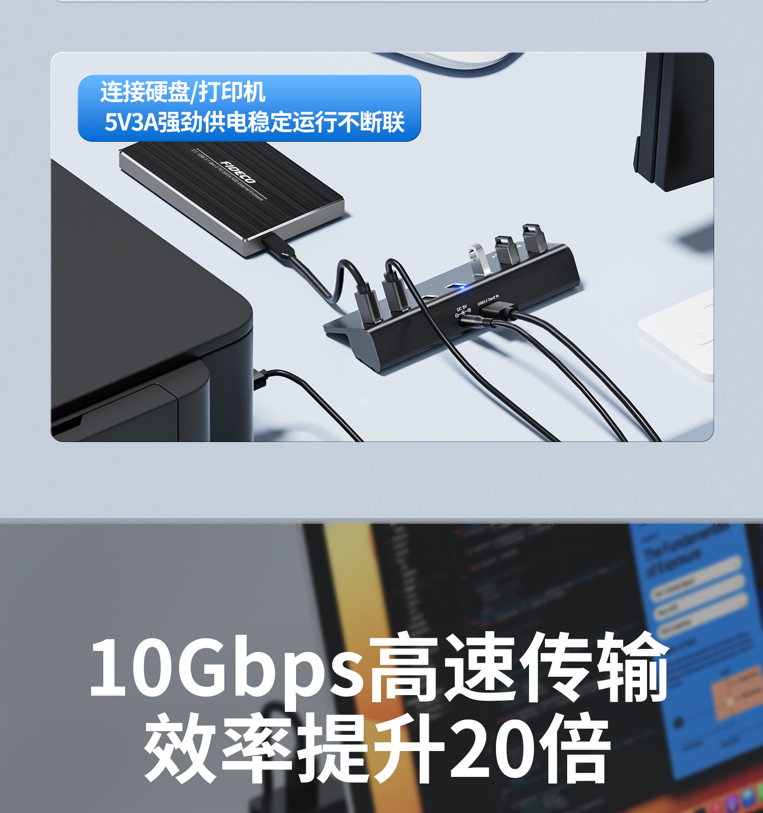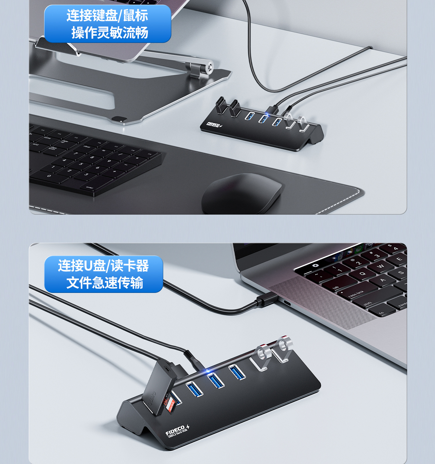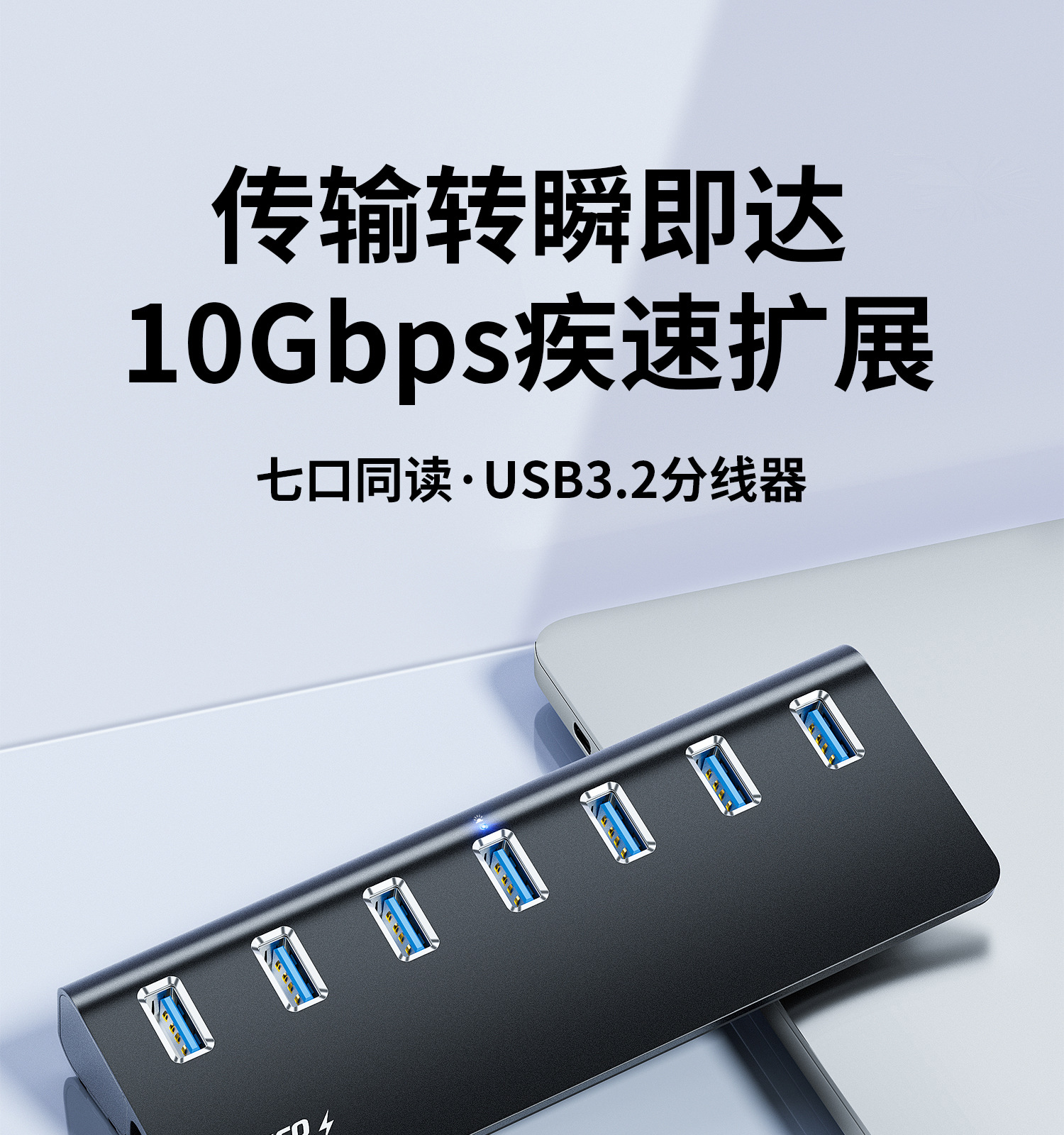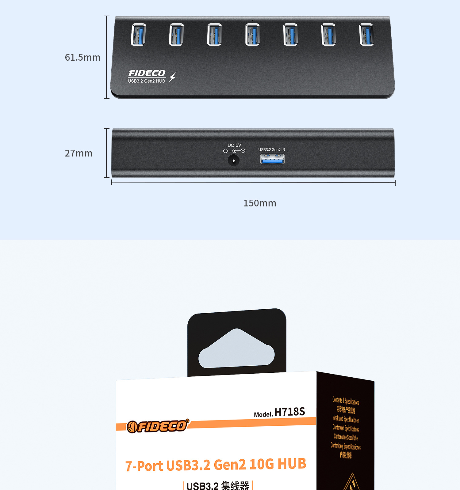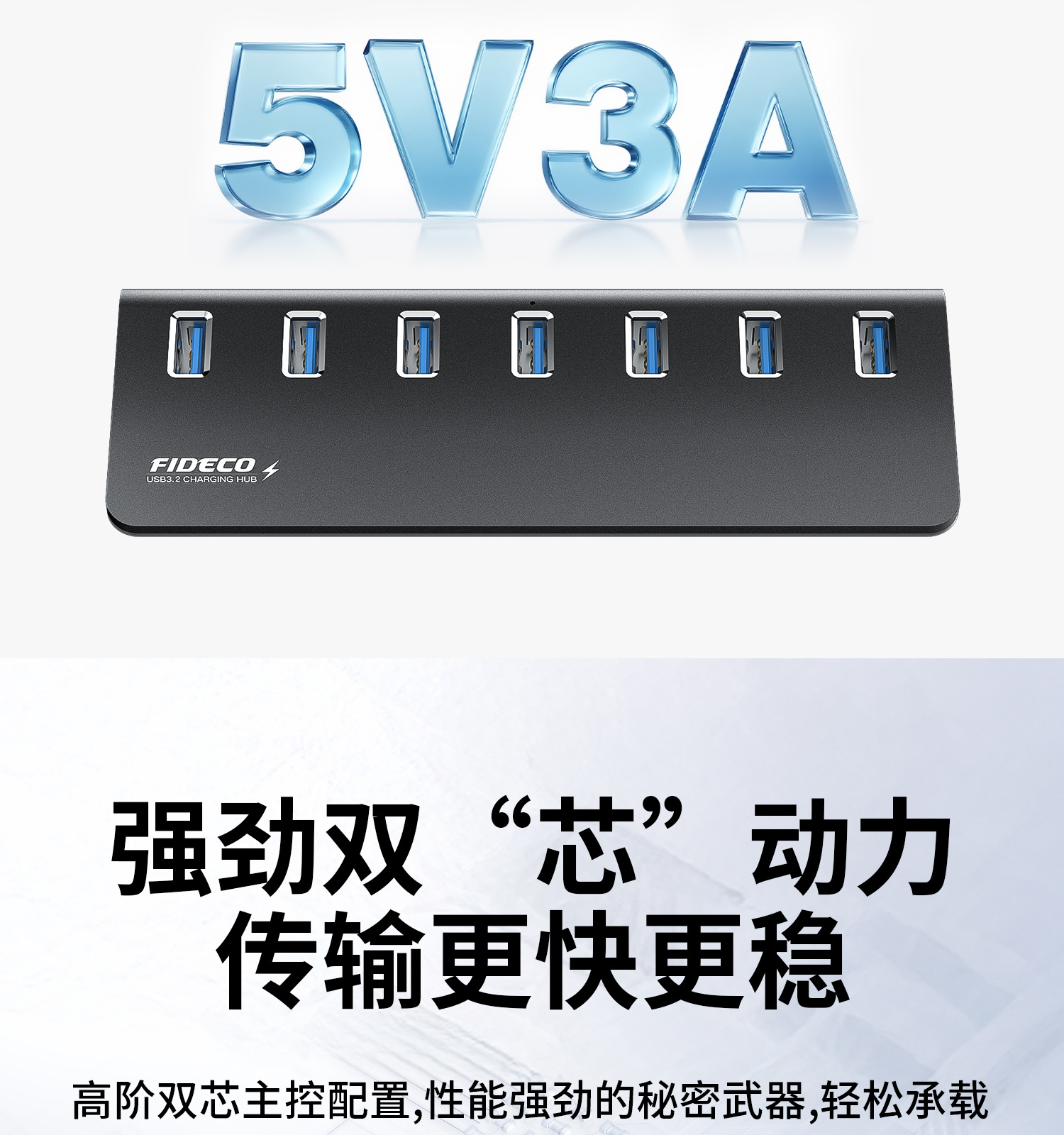 FIDECO 7포트 USB3.2 컴퓨터 멀티포트 확장기 노트북 데스크탑 확장 도크 허브