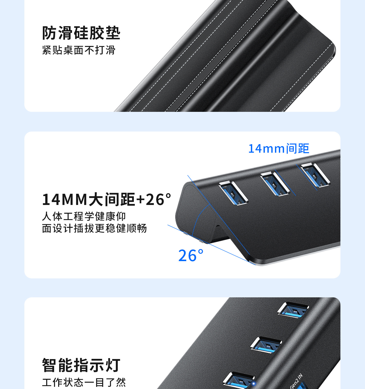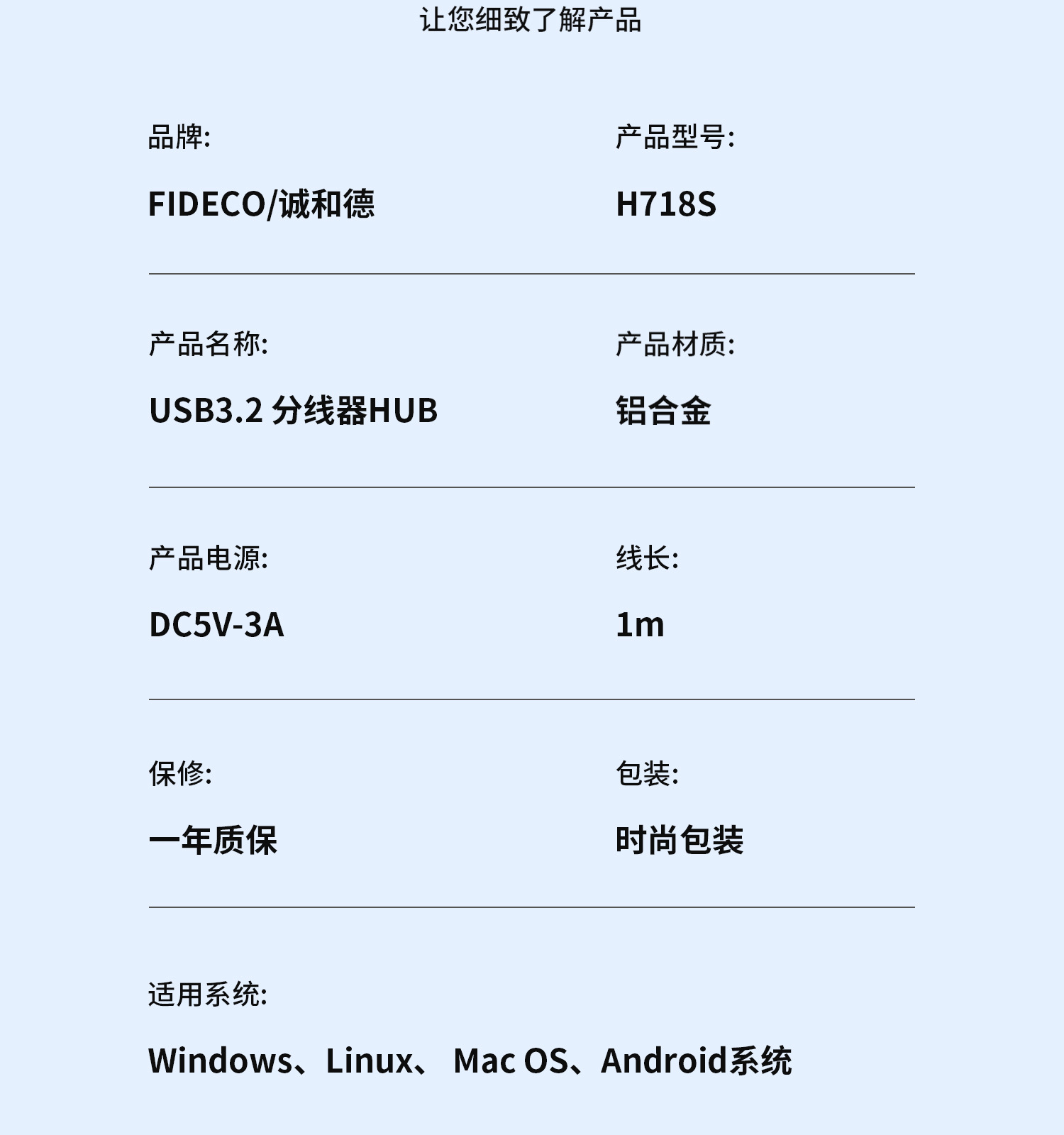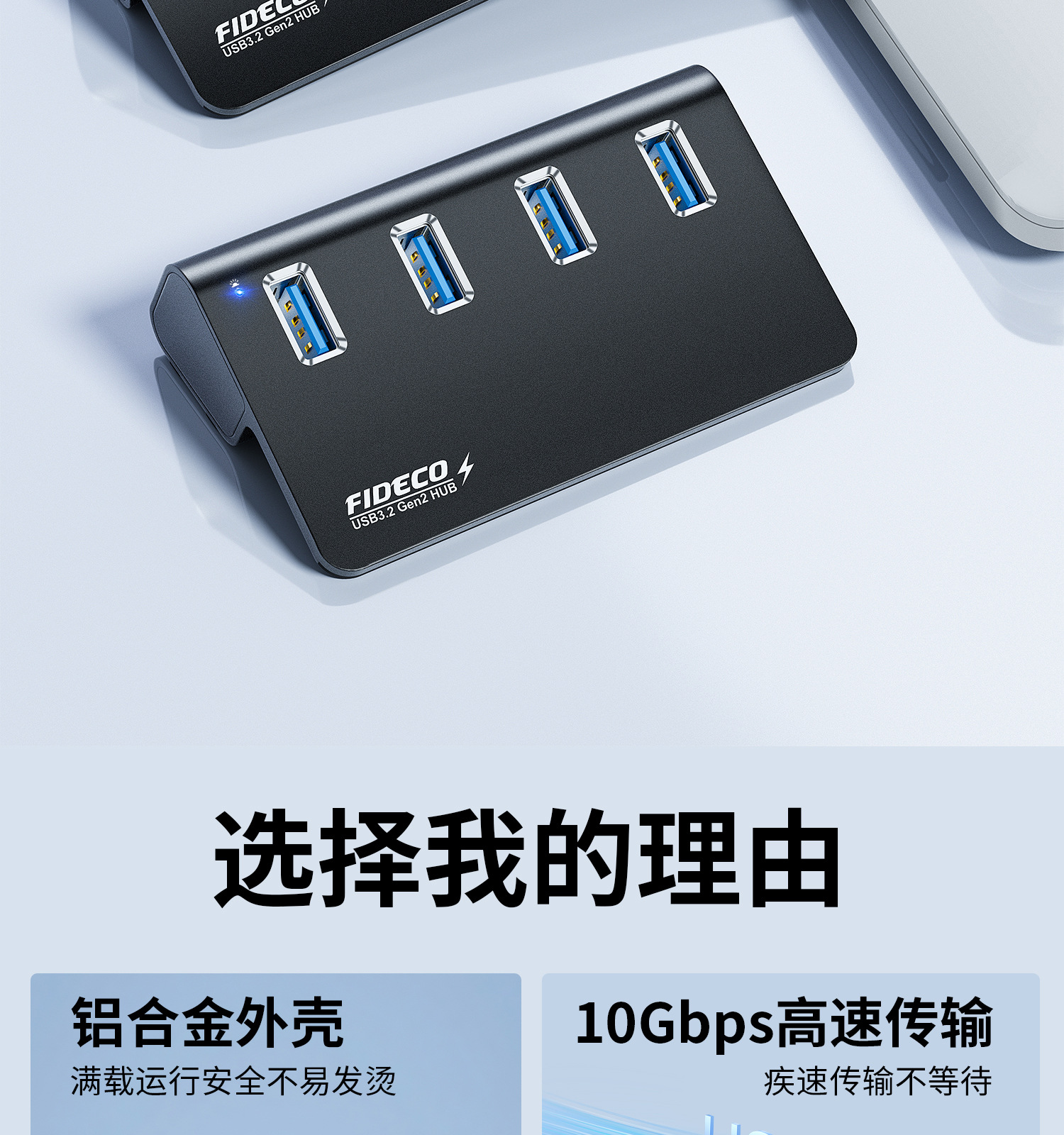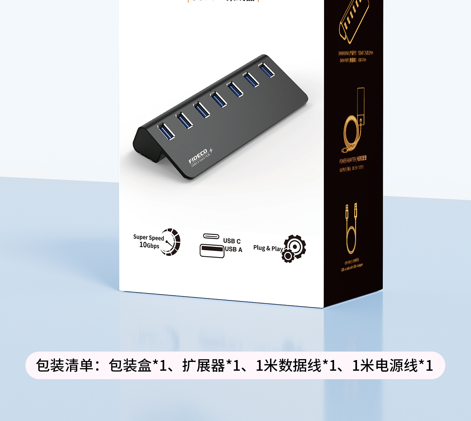 FIDECO 7포트 USB3.2 컴퓨터 멀티포트 확장기 노트북 데스크탑 확장 도크 허브스토어 가기