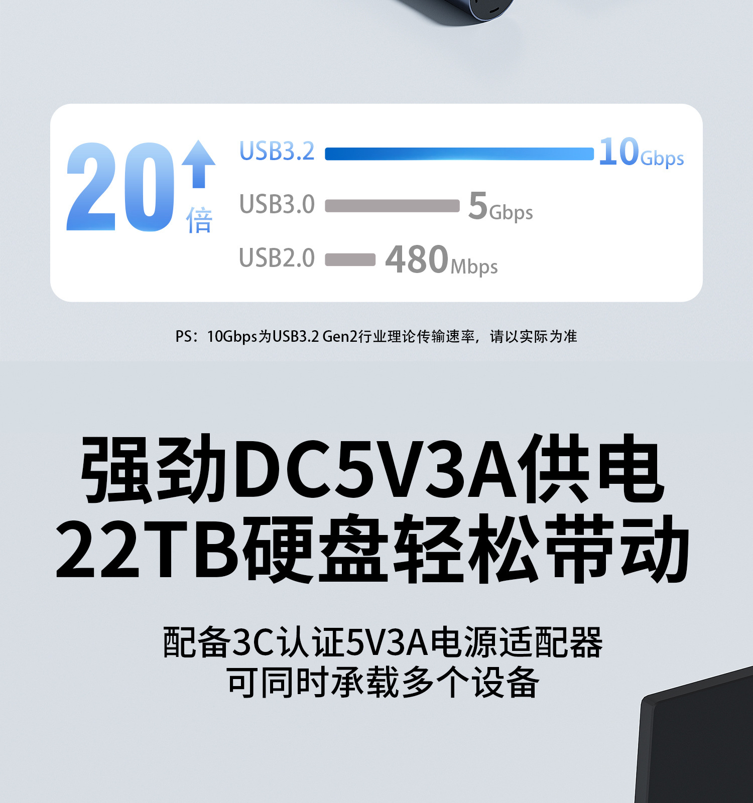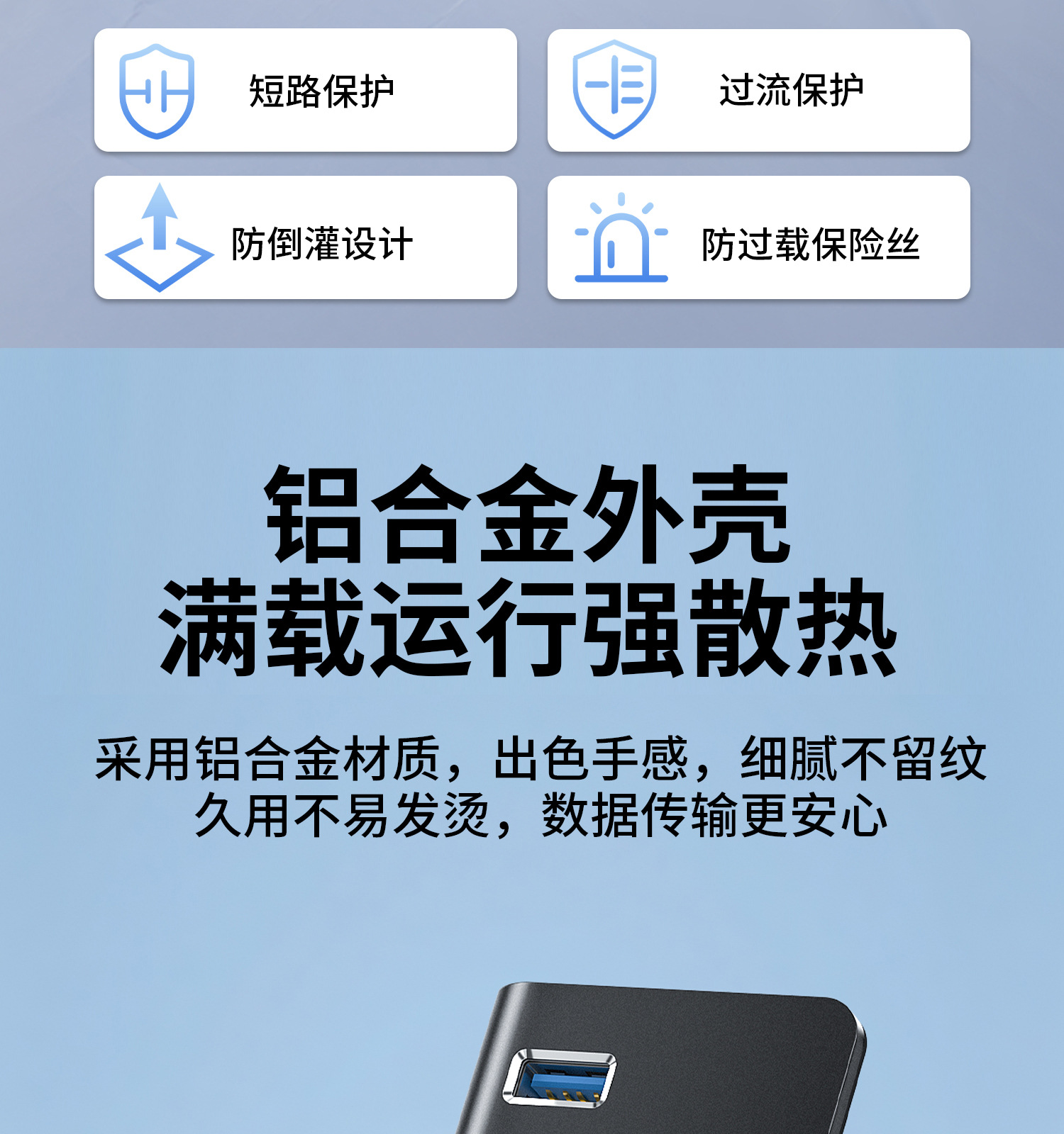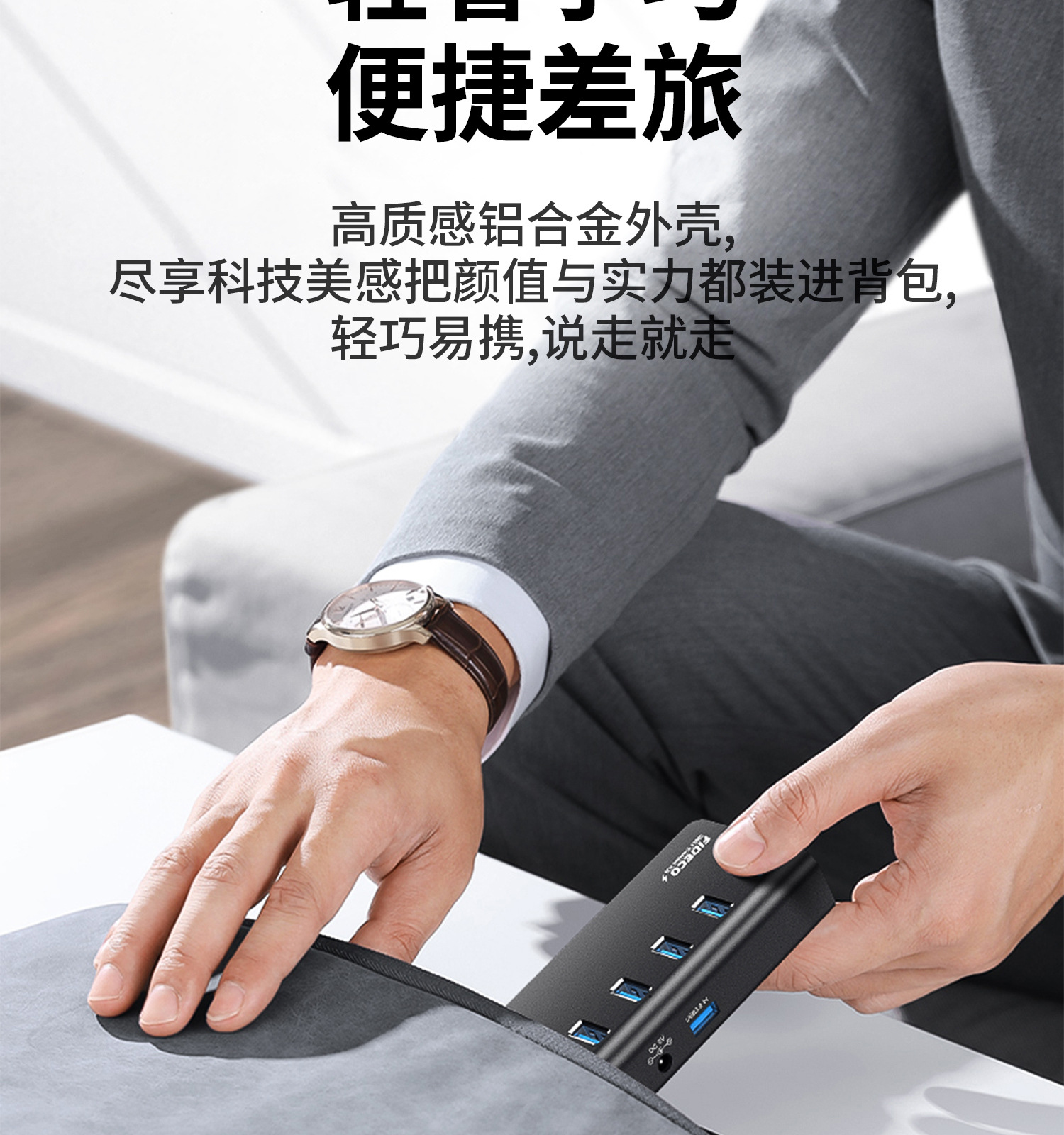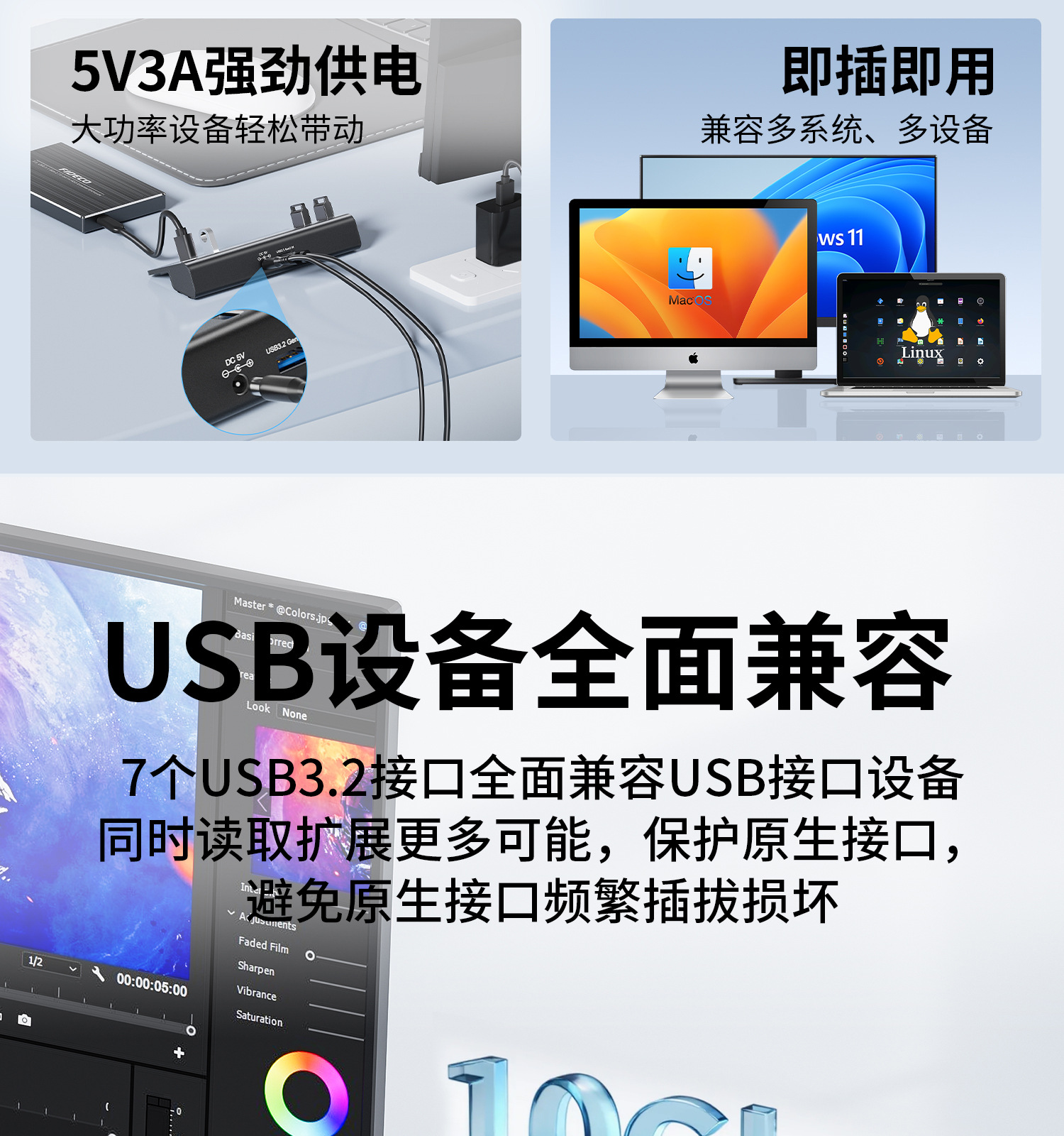 • USB3.2 검정색 알루미늄 합금 7포트 확장기 + [5V3A 전원 공급 장치]