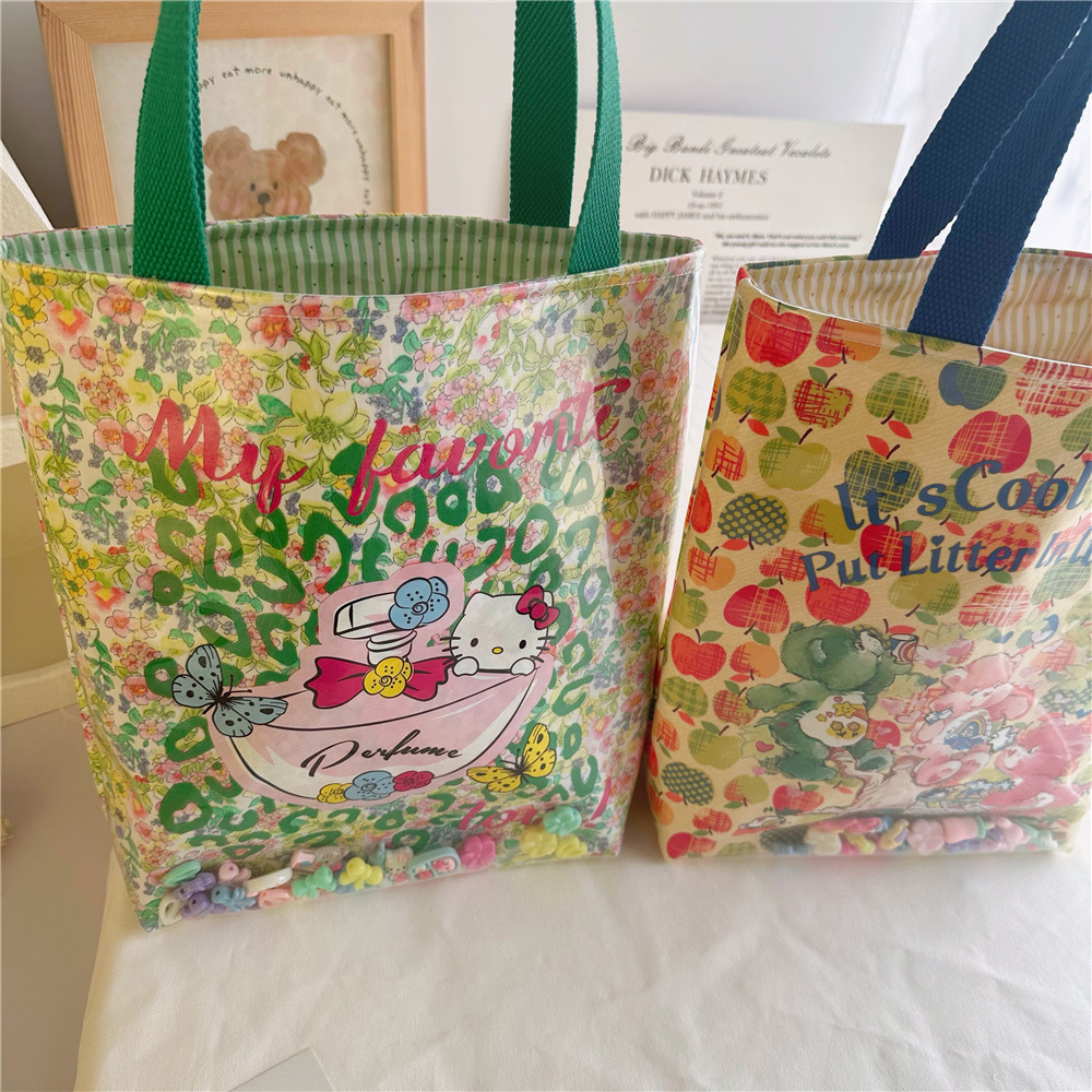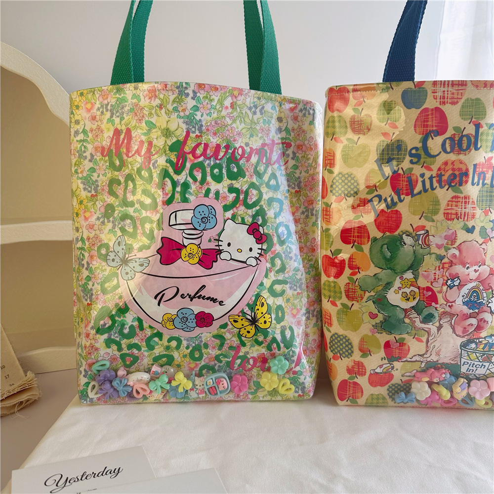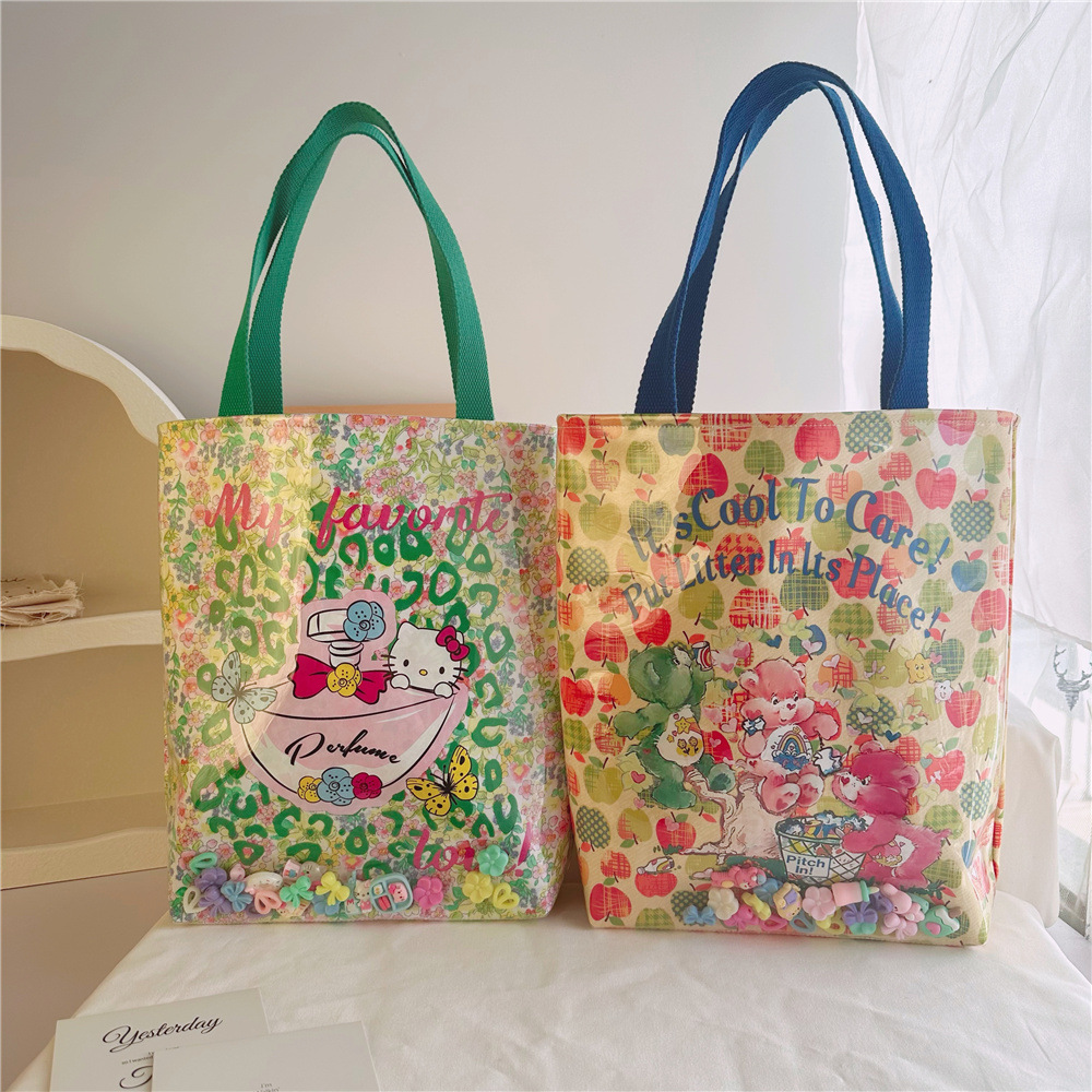 귀여운 만화 대용량 학생 핸드백 인쇄 투명 퀵샌드 백 숙녀 숄더백 핸드 백 도매스토어 가기