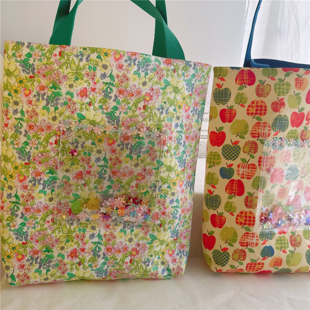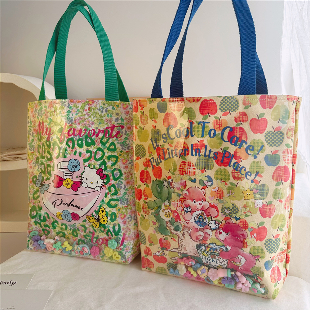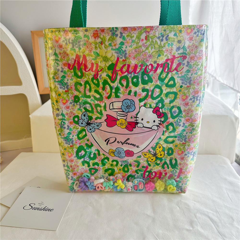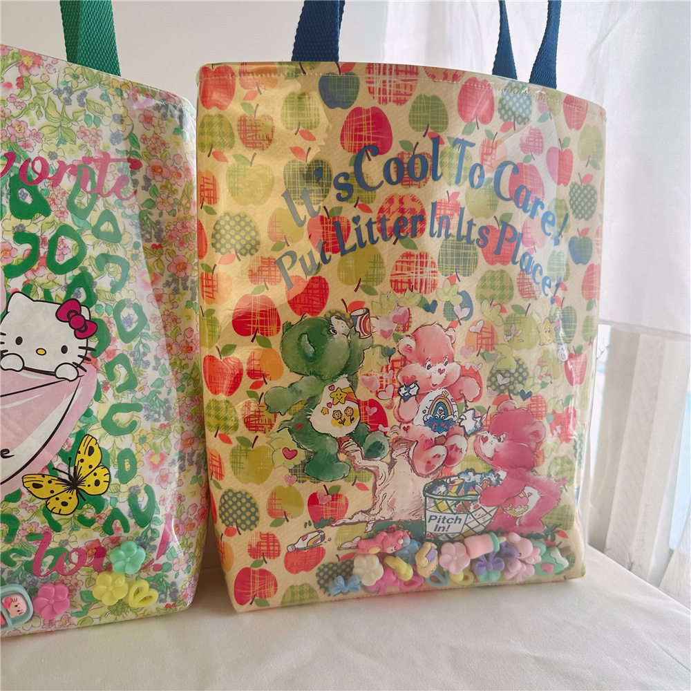 귀여운 만화 대용량 학생 핸드백 인쇄 투명 퀵샌드 백 숙녀 숄더백 핸드 백 도매스토어 가기