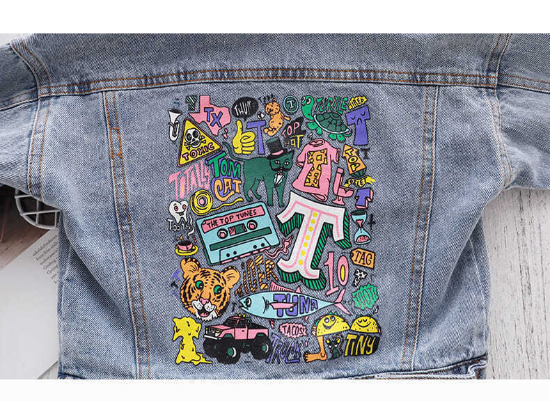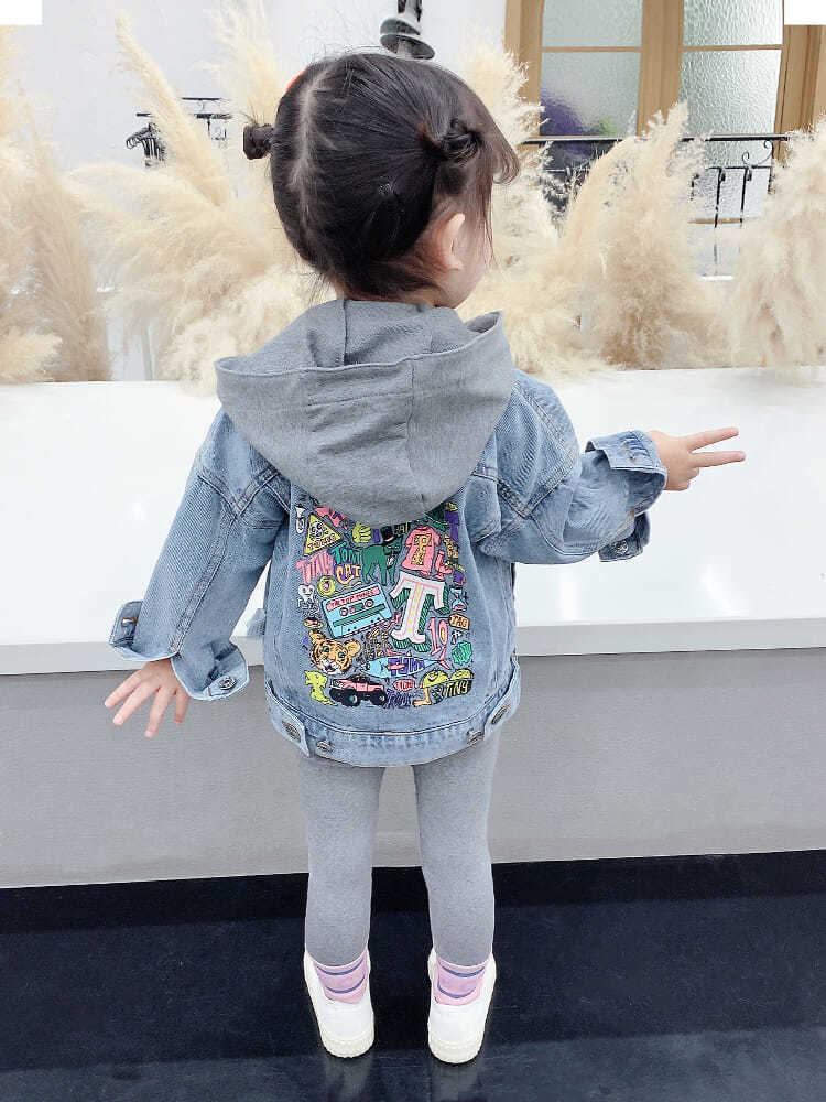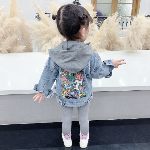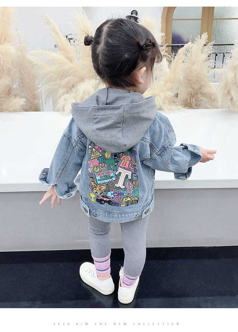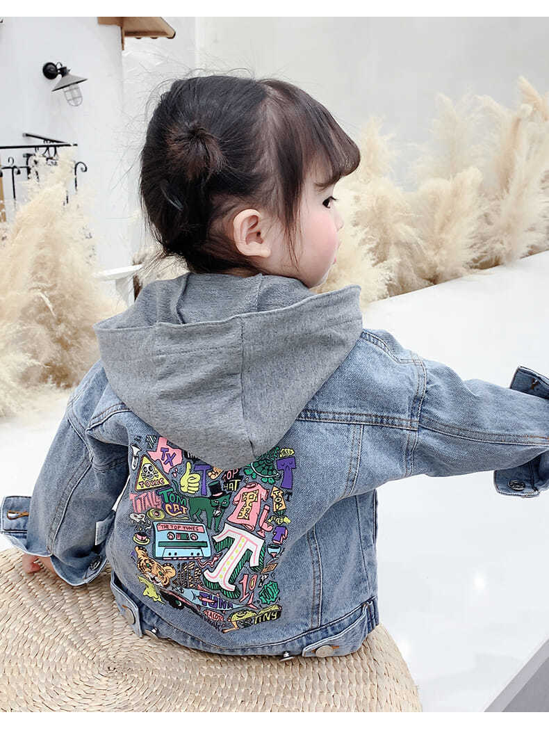 봄과 가을 남성과 여성의 아동복 청바지 재킷 아기 세련된 어린이 성격 트렌디 브랜드 가짜 투피스 후드 만화 재킷스토어 가기