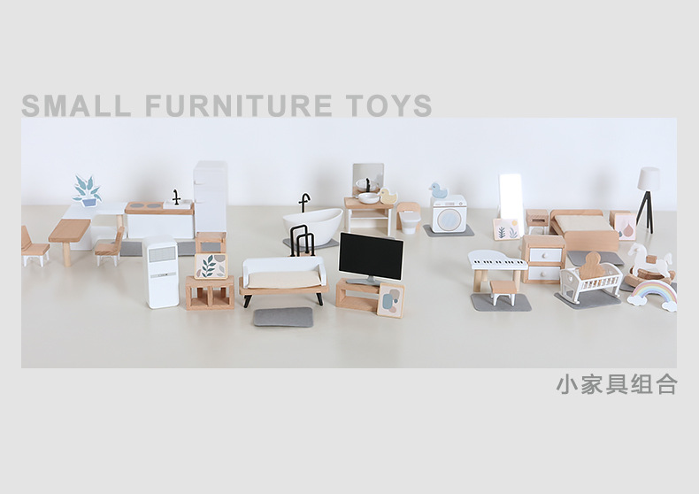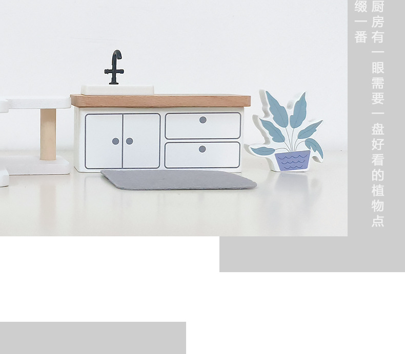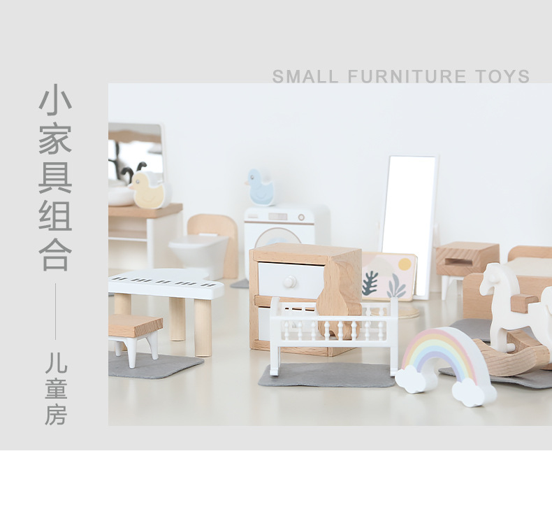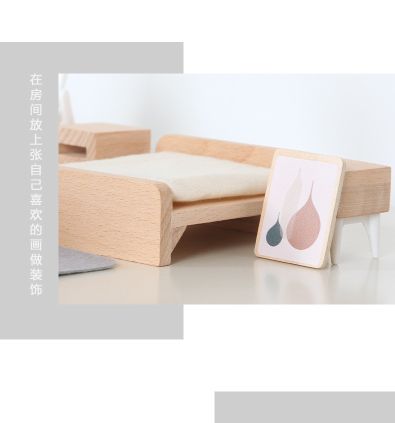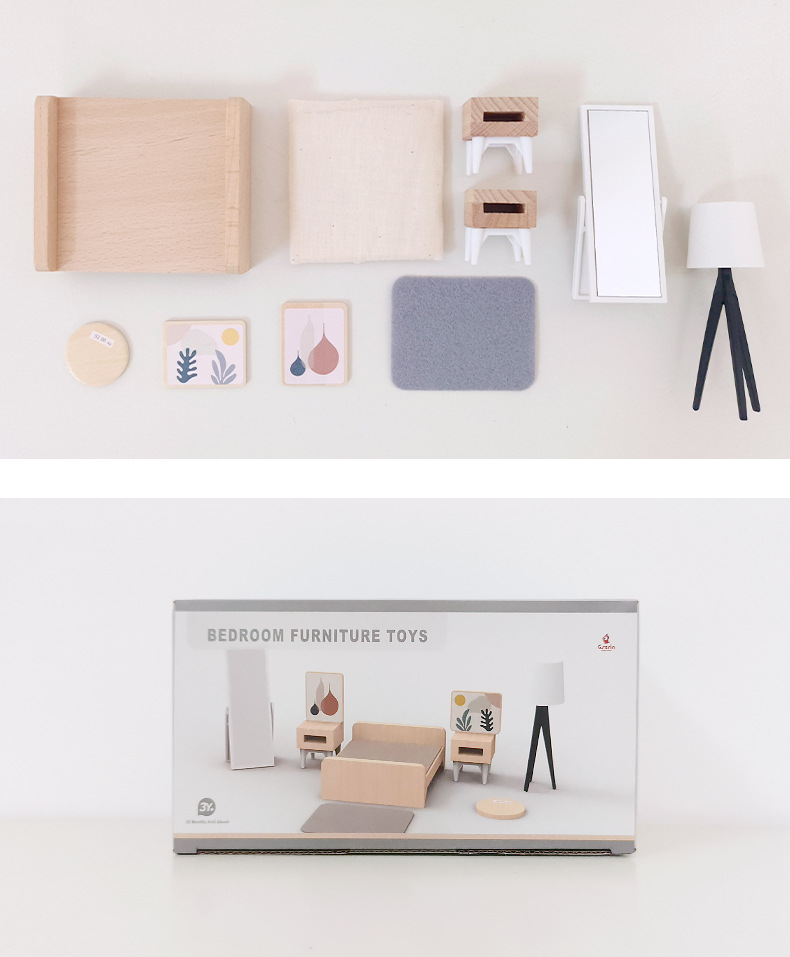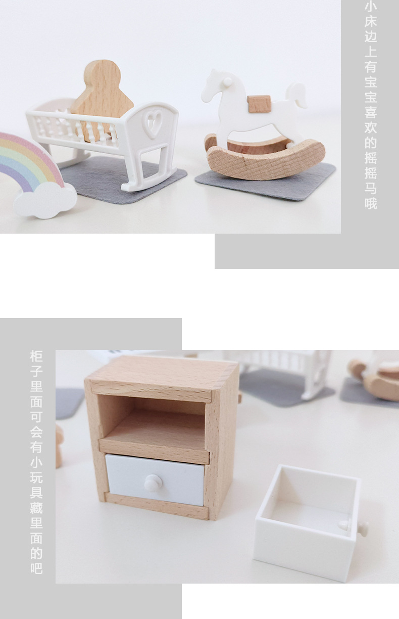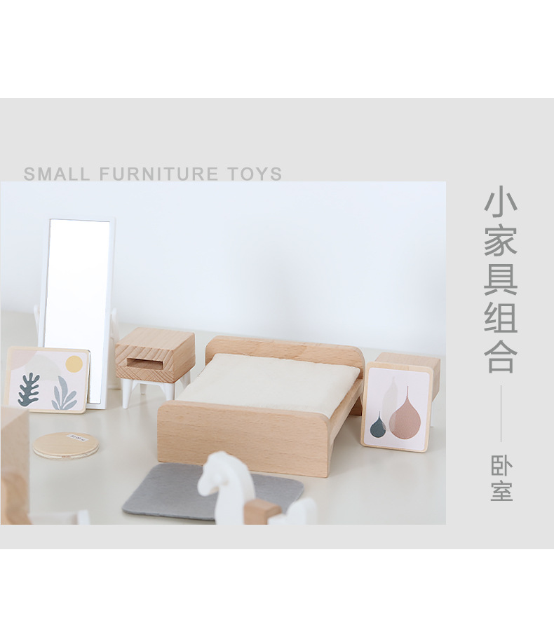 儿童迷你 INS风小家具厨房卧室过家家组合仿真娃娃屋摆件木制玩具
