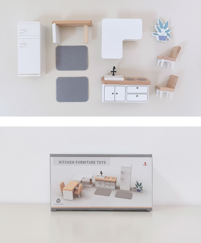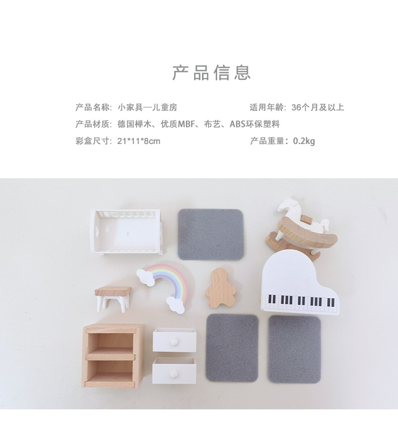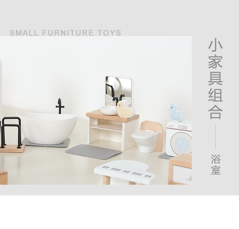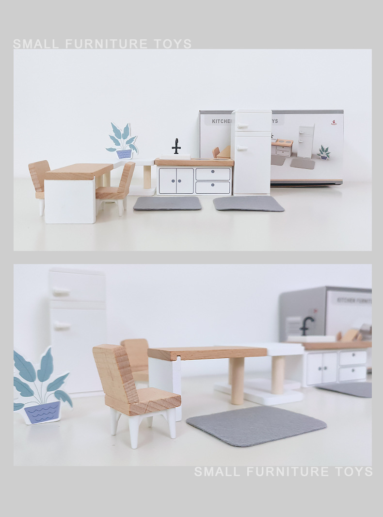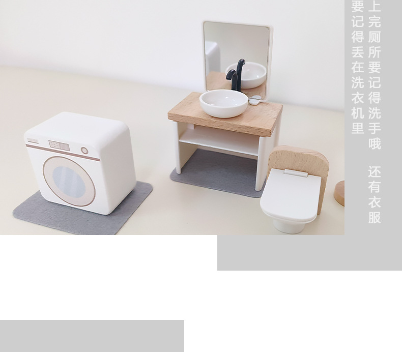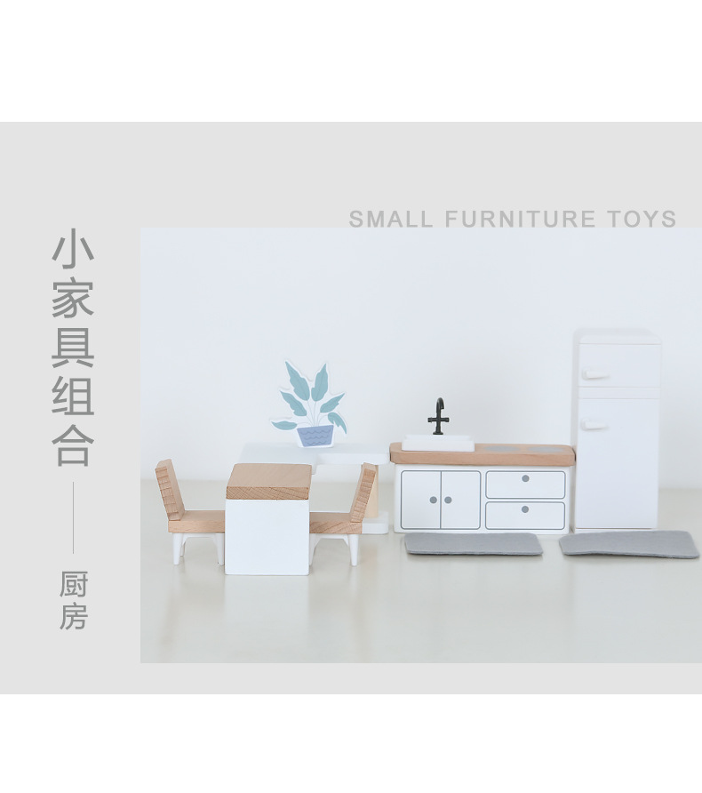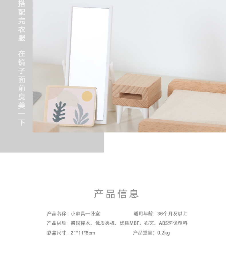 儿童迷你 INS风小家具厨房卧室过家家组合仿真娃娃屋摆件木制玩具