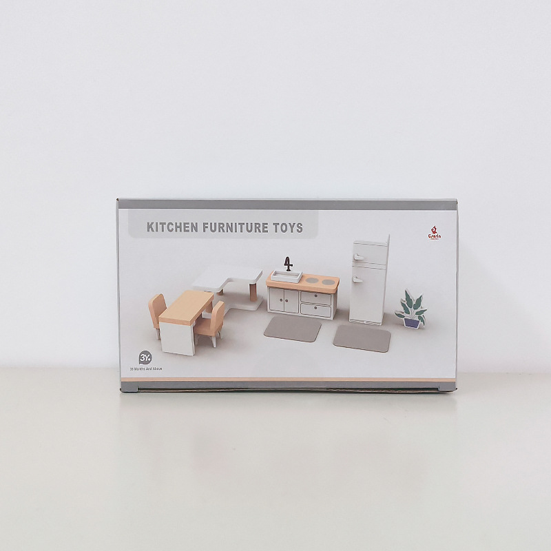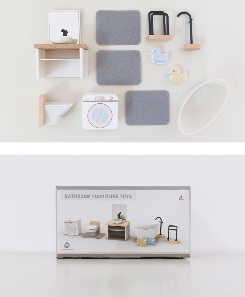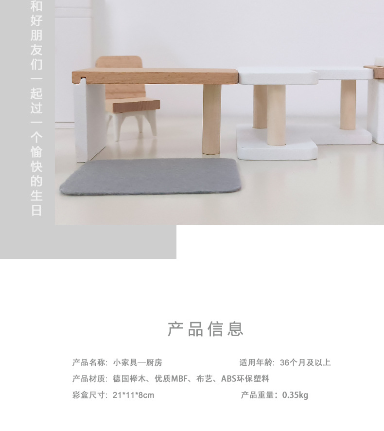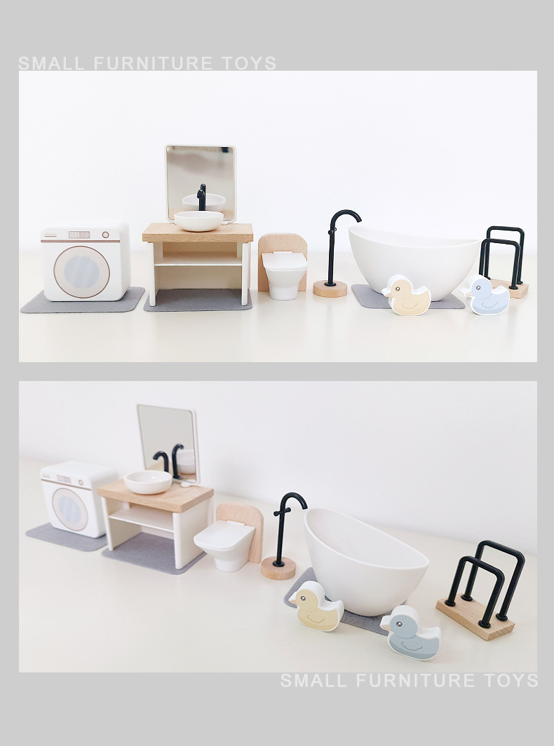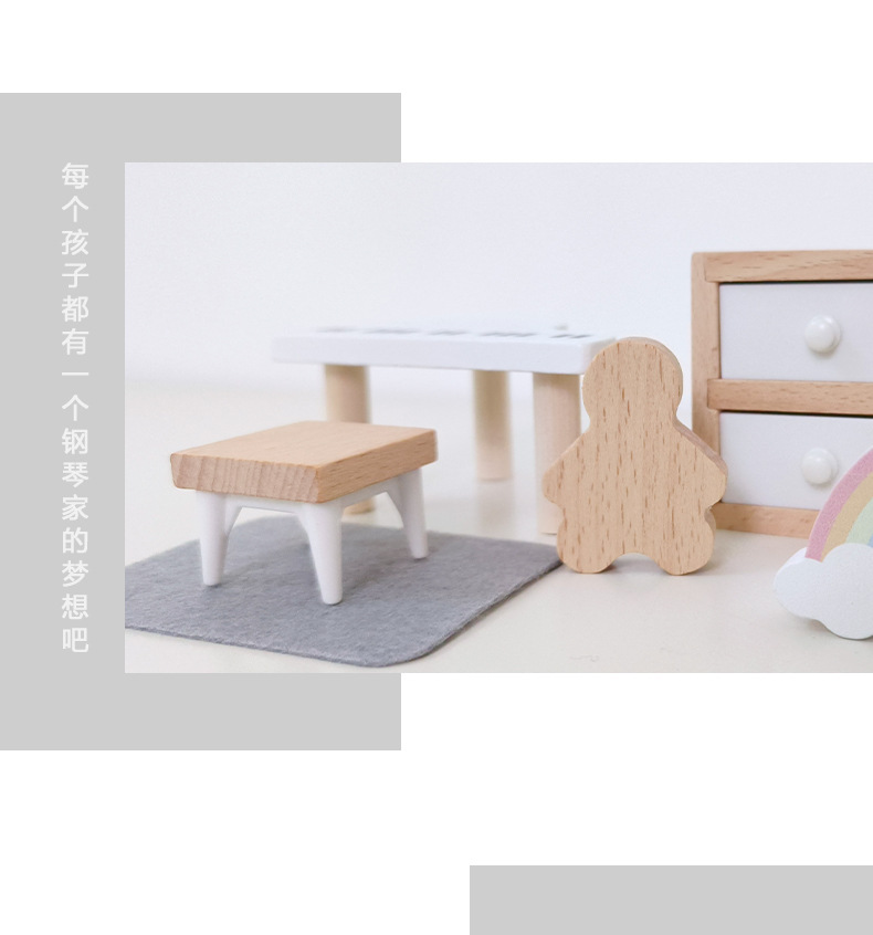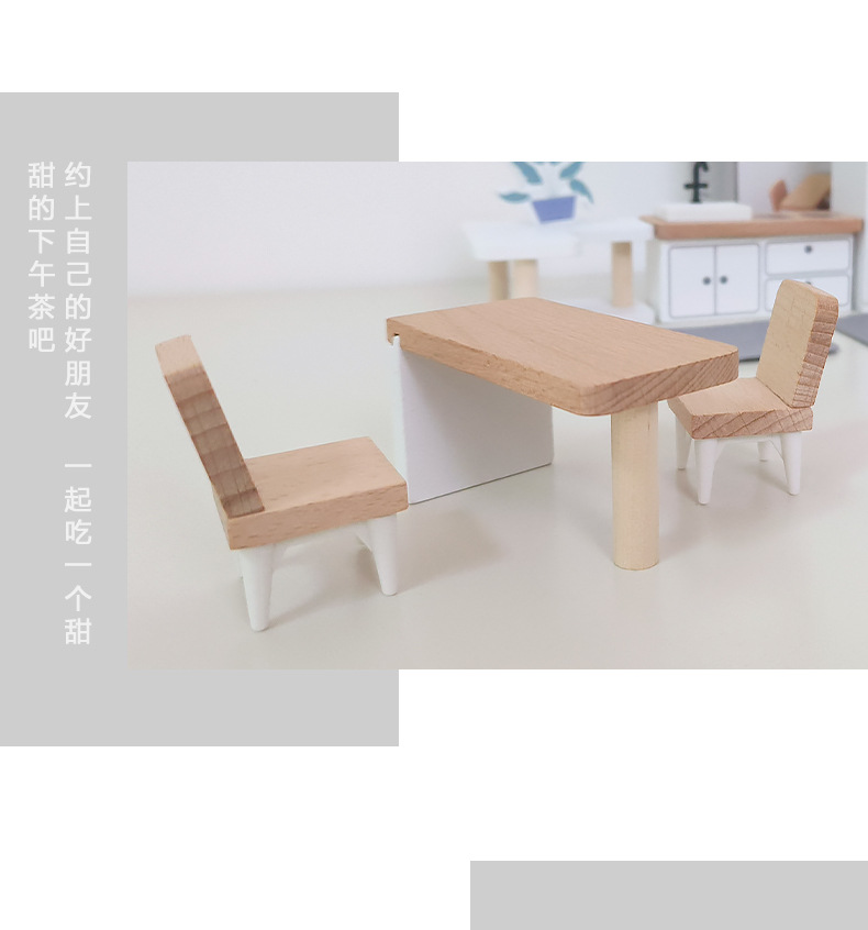 儿童迷你 INS风小家具厨房卧室过家家组合仿真娃娃屋摆件木制玩具