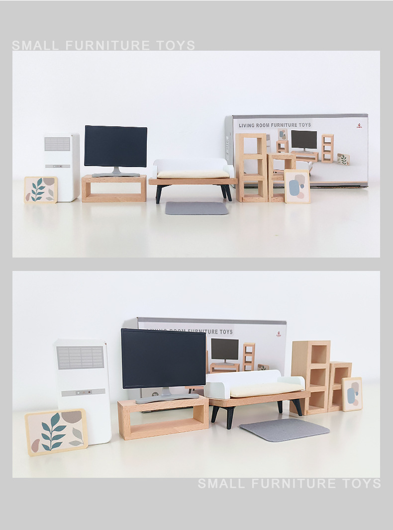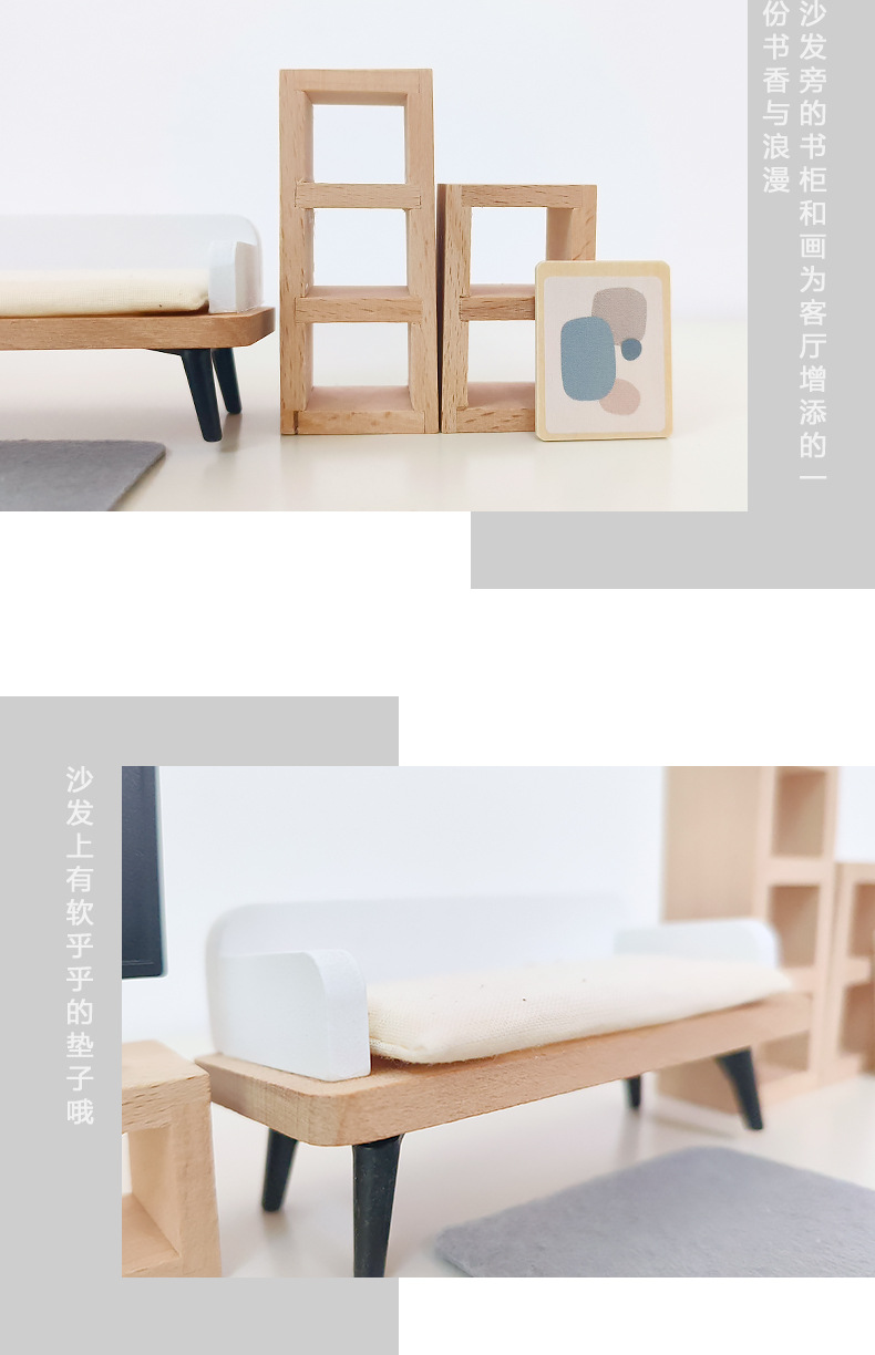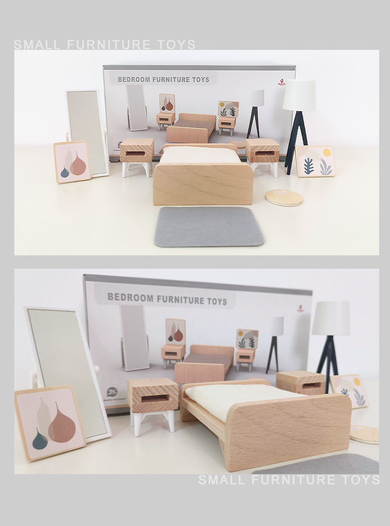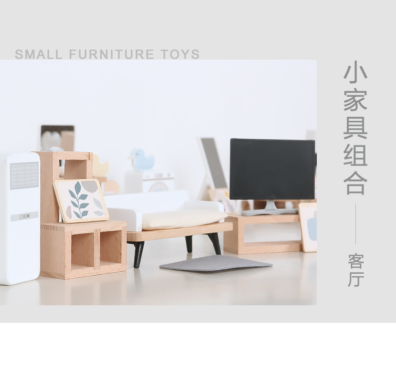 儿童木制仿真迷你小家具卧室客厅组合摆件亲子互动益智过家家玩具