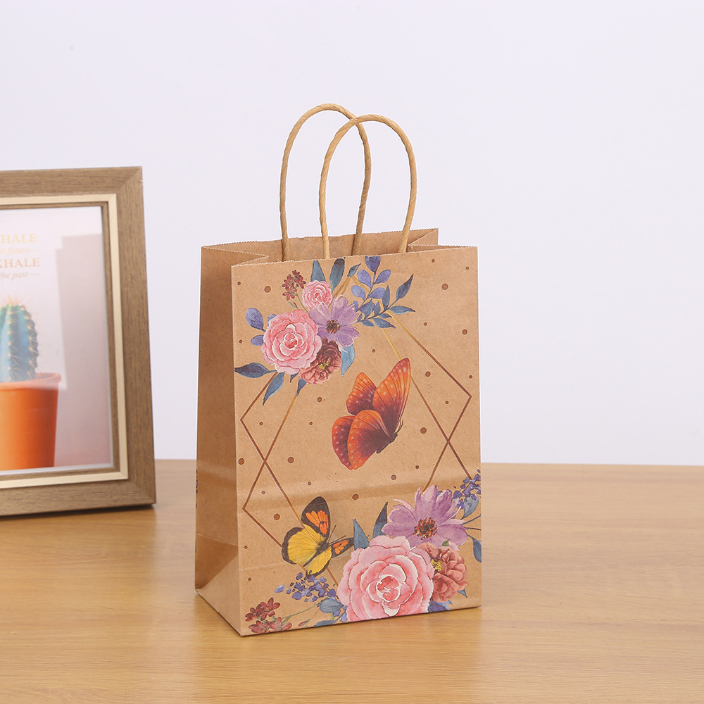 새로운 스타일의 크라프트 종이 나비 모양 종이 가방, 손잡이가 있는 선물 가방, 의류 포장, 선물 포장, 꽃과 식물 선물 가방 도매스토어 가기