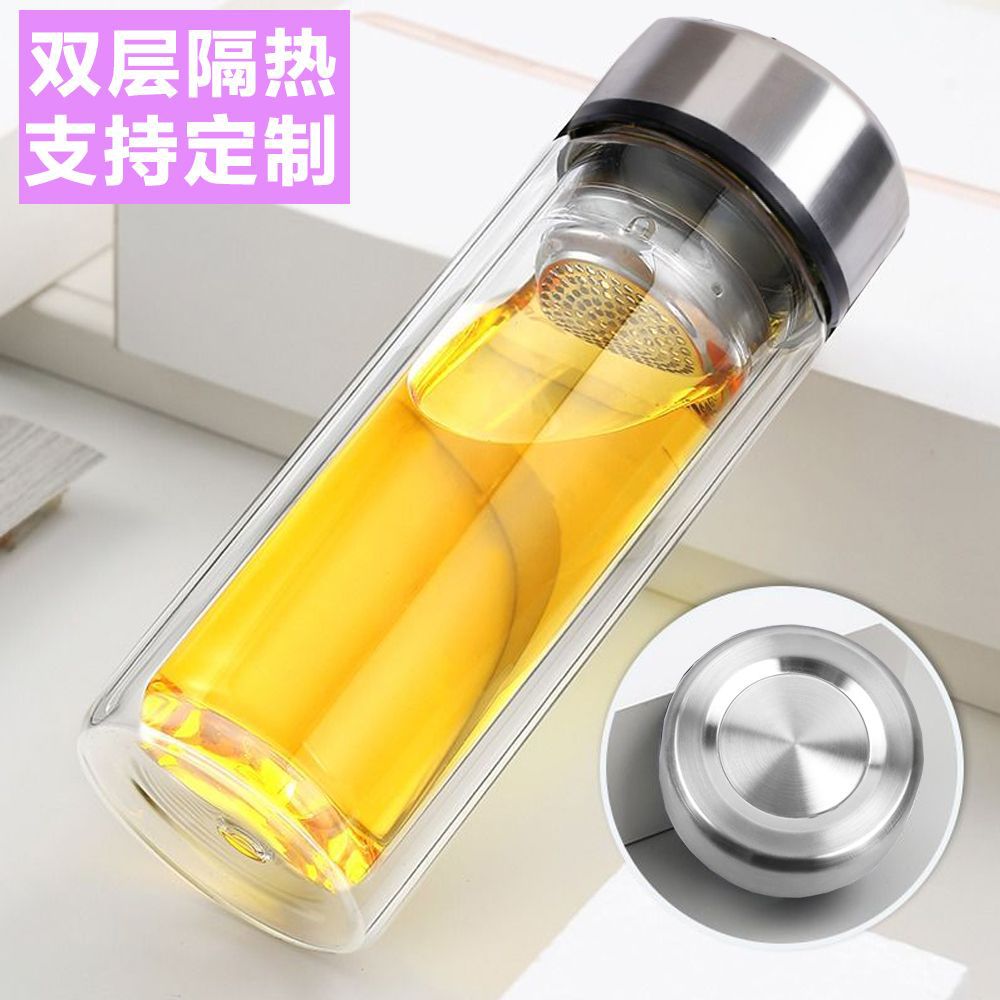 2 층 유리 절연 필터 사무실 찻잔 남녀 휴대용 물 컵 가정용 입 컵 로고 인쇄 가능