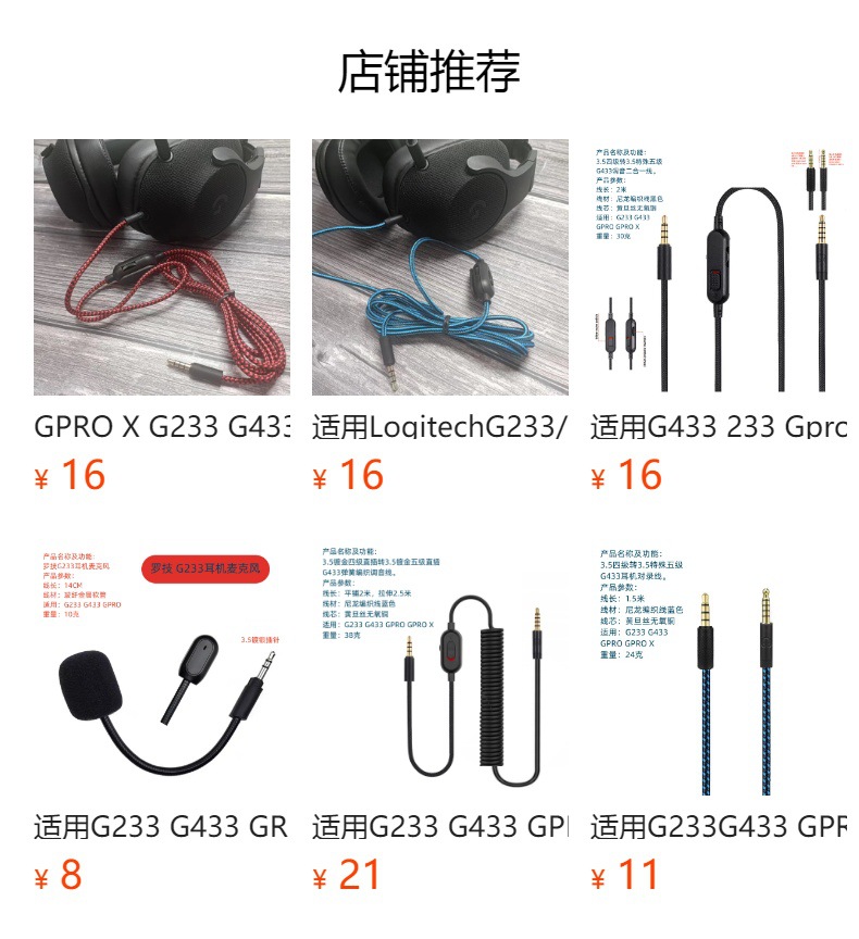 로지텍 G433 헤드폰 케이블 교체용 오디오 케이블 G233 GPRO X 수리용 게임 케이블스토어 가기
