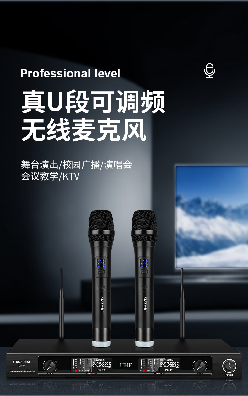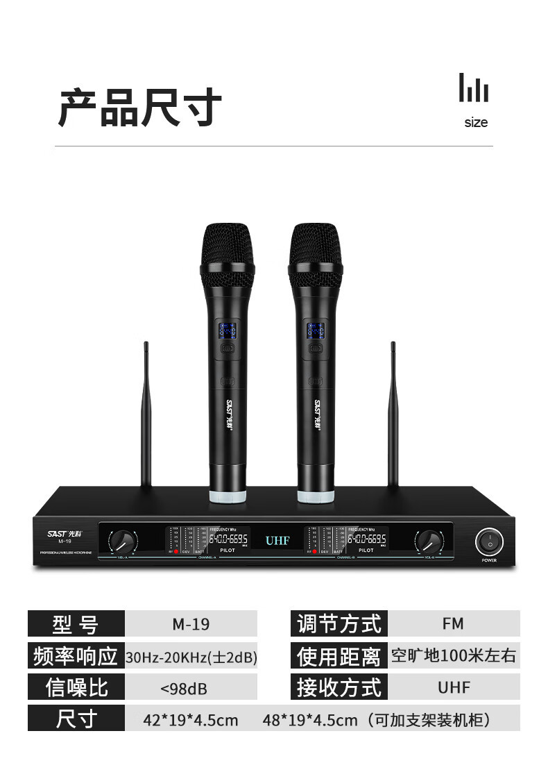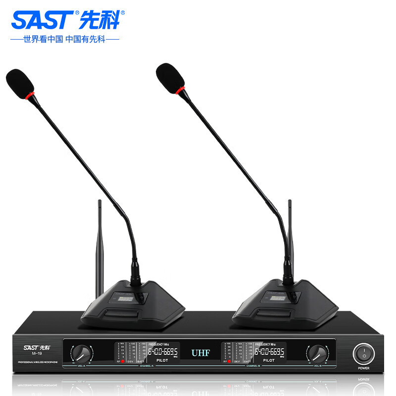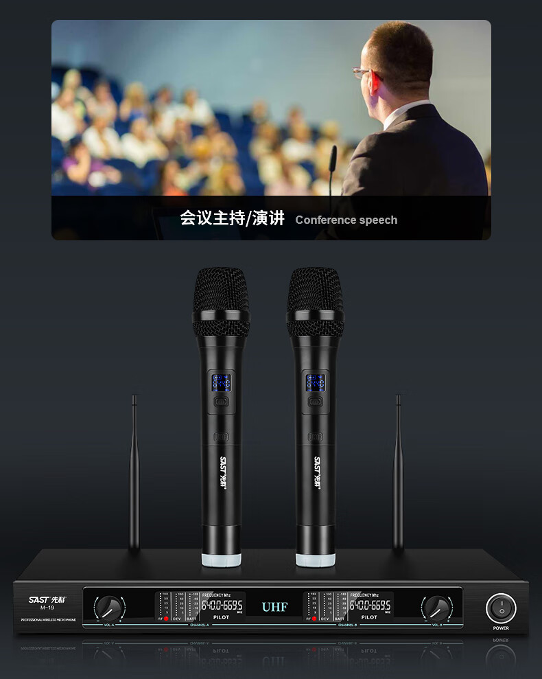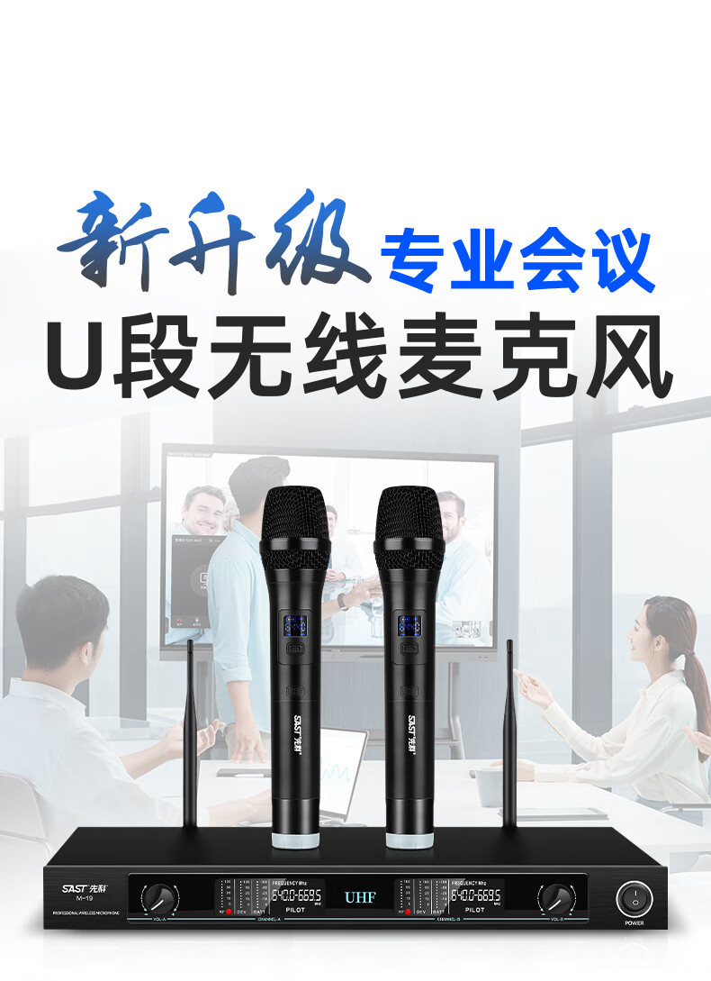 Xianke M-19 무선 마이크 1 대 2 U 세그먼트 FM 회의 훈련실 무대 웨딩 공연 프로젝트