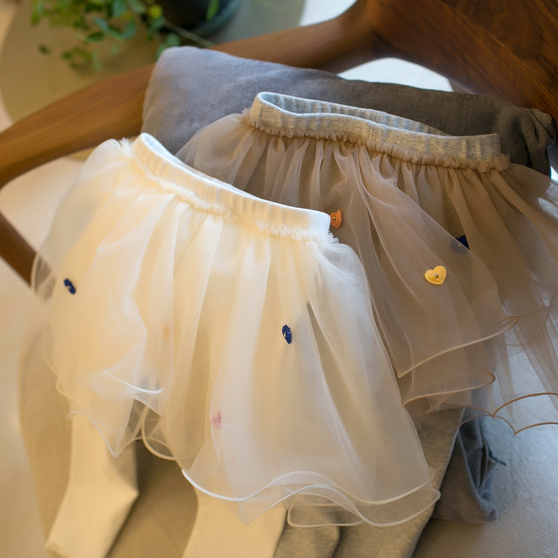 2023 봄과 가을 어린이 바지 소녀 아기 소녀 면 메쉬 스커트 바지 가짜 두 레깅스 머리카락 세대스토어 가기