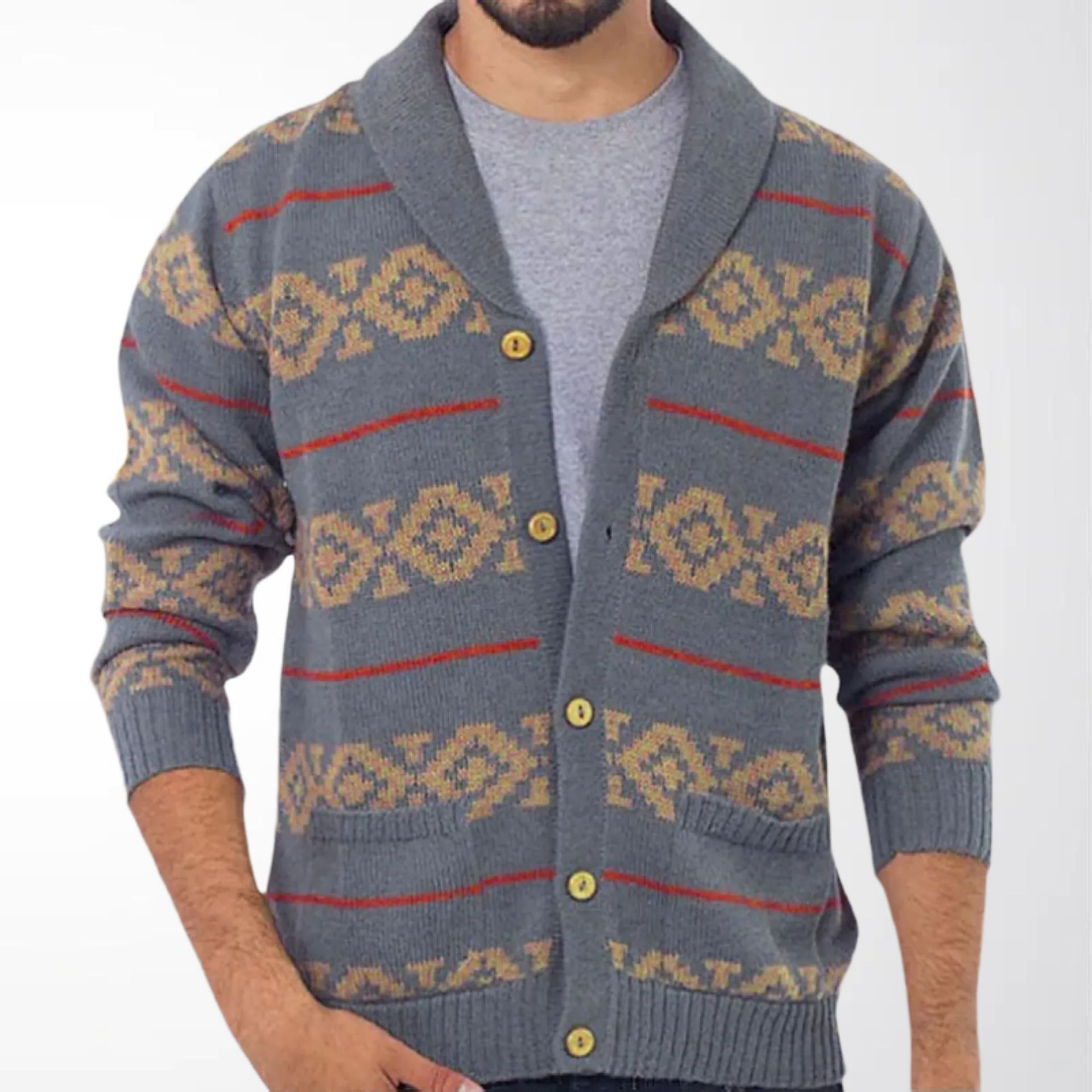 아마존 새로운 남자의 유럽과 미국 가을과 겨울 자카드 니트웨어 버튼 카디건 스웨터 재킷 SY0100 버튼