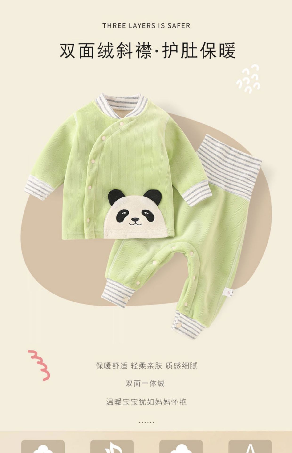 아기 기모 따뜻한 옷 세트 가을과 겨울 두꺼운 소년 소녀 아기 하이 웨이스트 배꼽 보호 속옷스토어 가기
