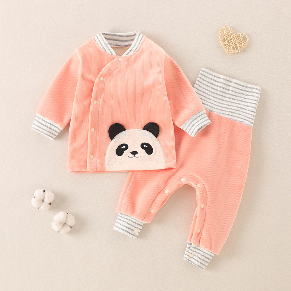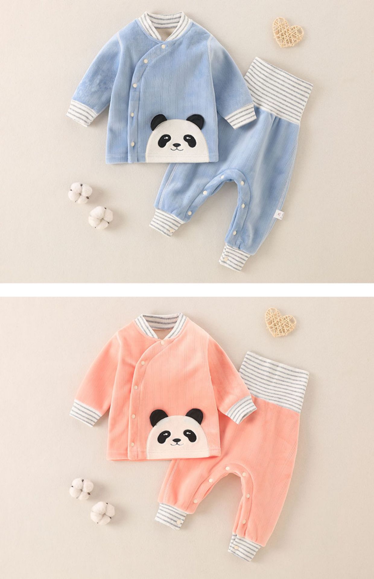 아기 기모 따뜻한 옷 세트 가을과 겨울 두꺼운 소년 소녀 아기 하이 웨이스트 배꼽 보호 속옷