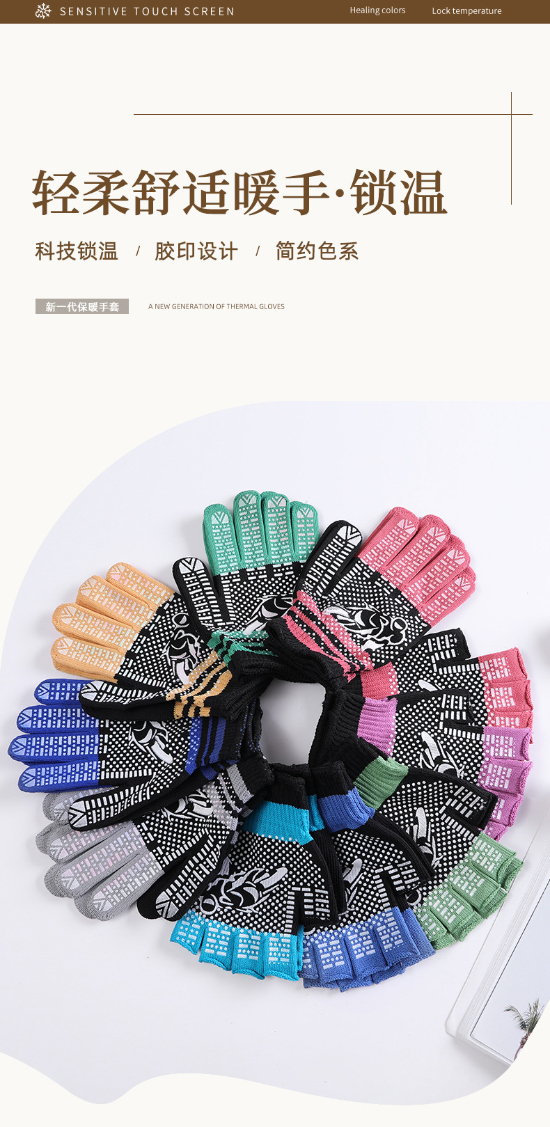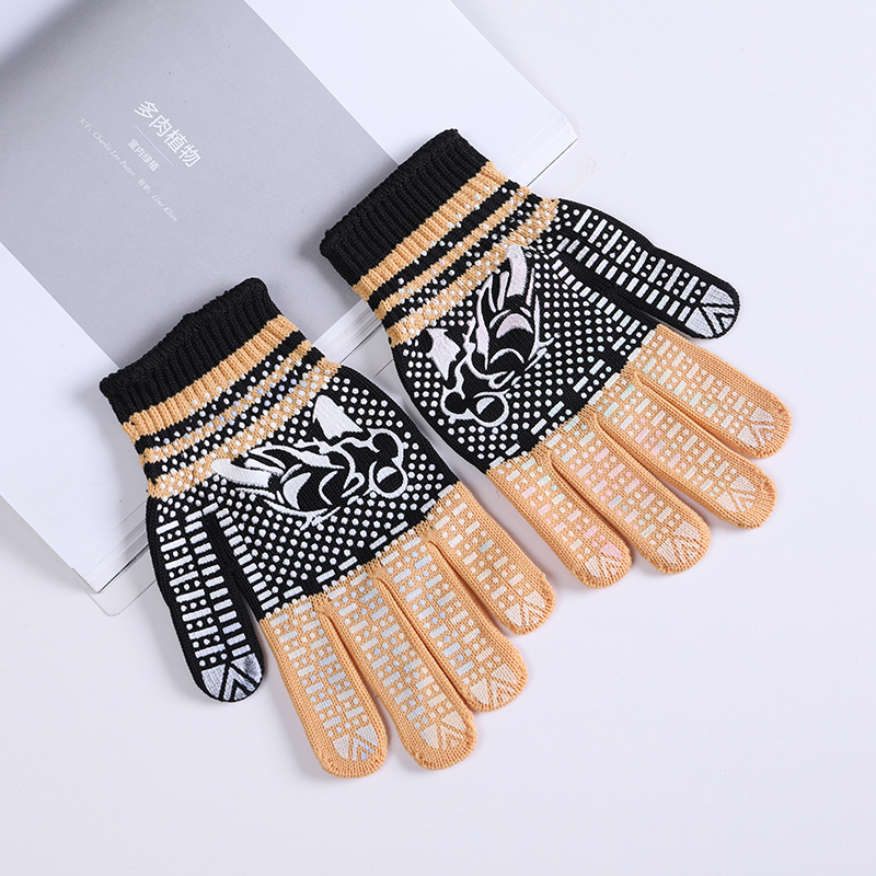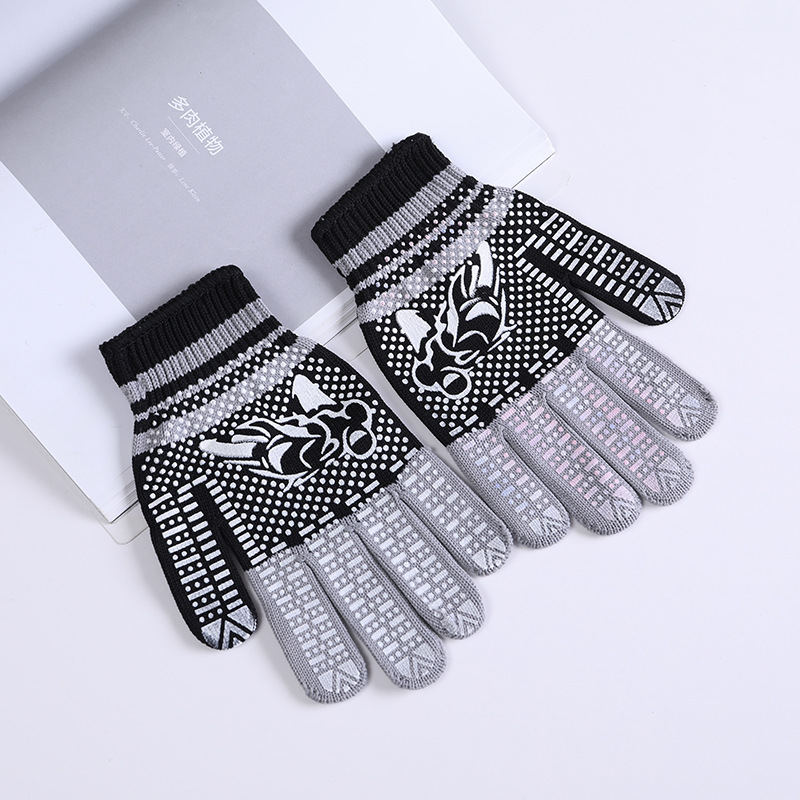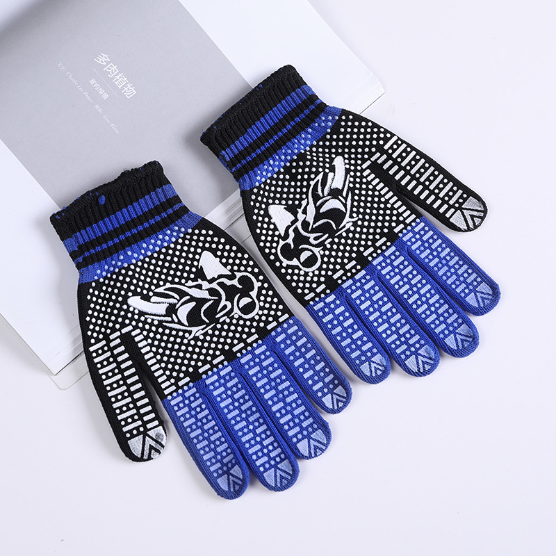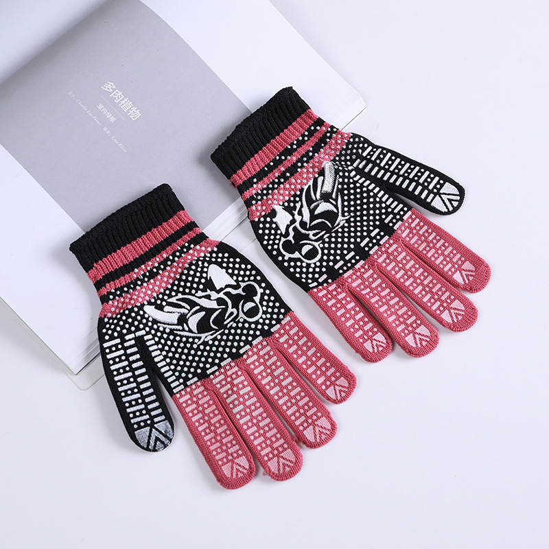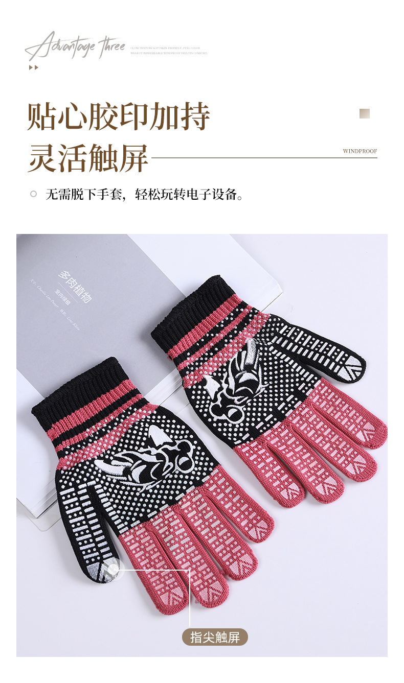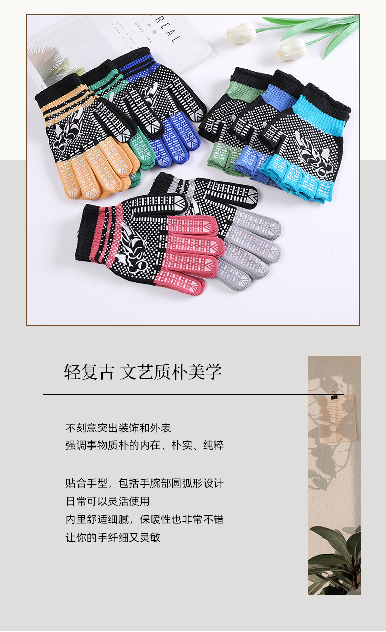 라이트 레트로 터치 스크린 필름 인쇄 포인트 플라스틱 니트 따뜻한 잠금 장갑 간단한 따뜻한 방풍 스트라이프 도트 장갑