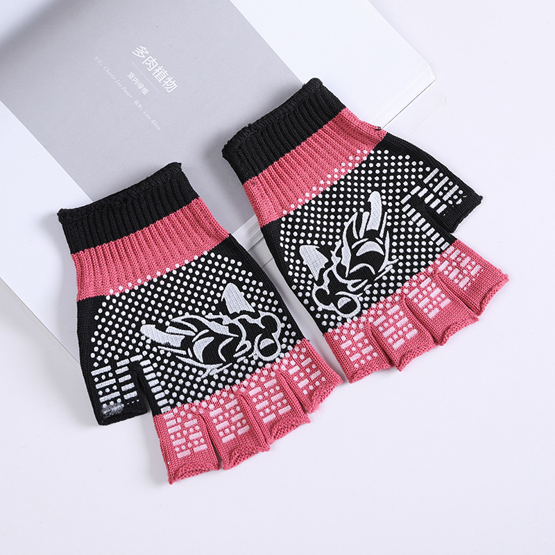 • 하프 핑거 핑크 프린트 장갑